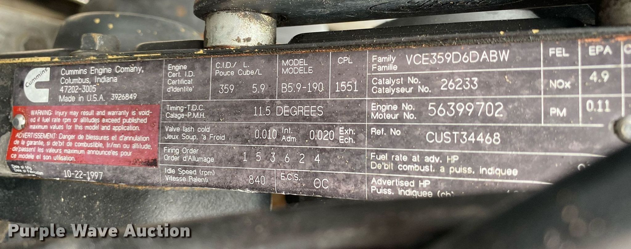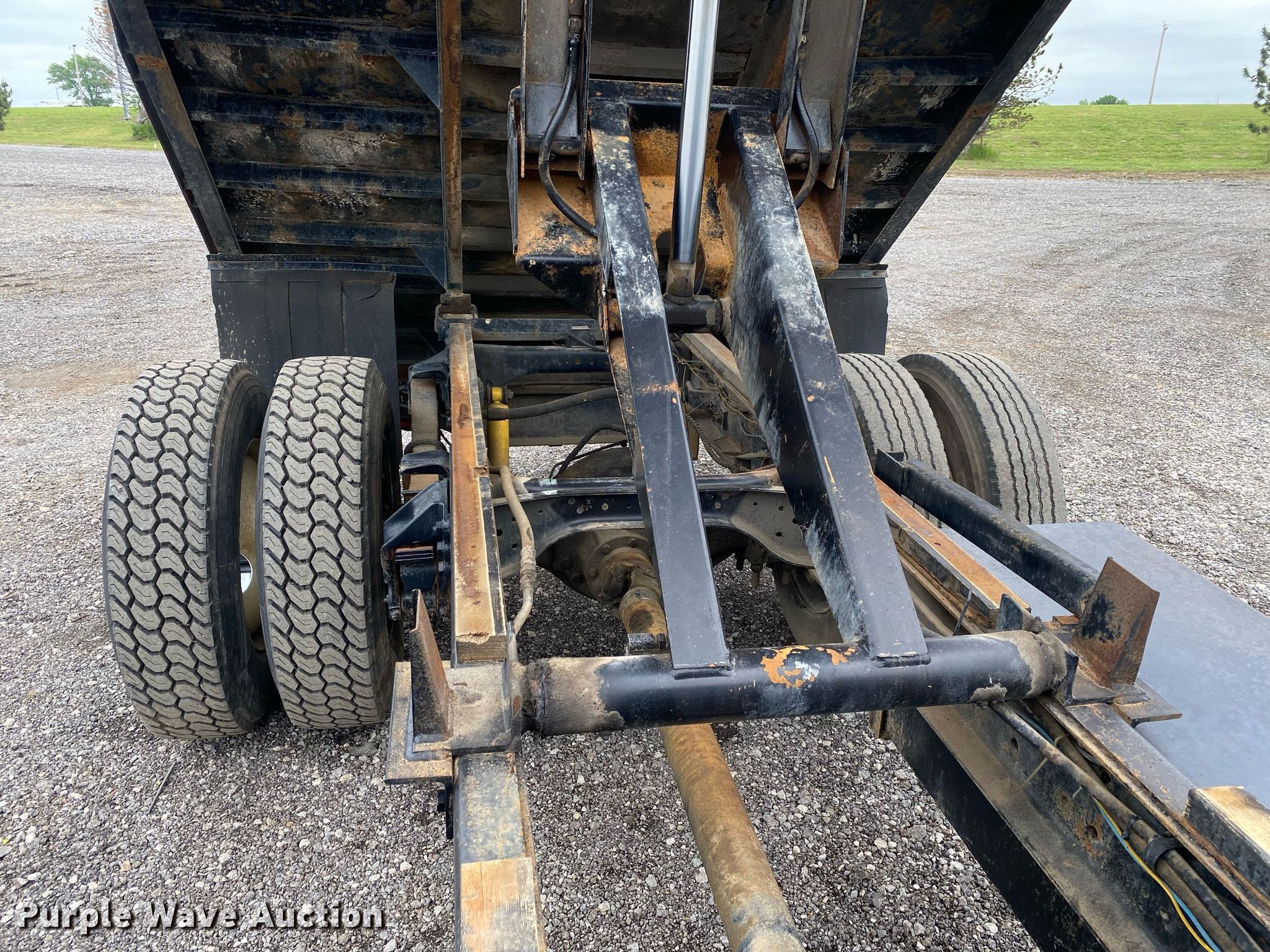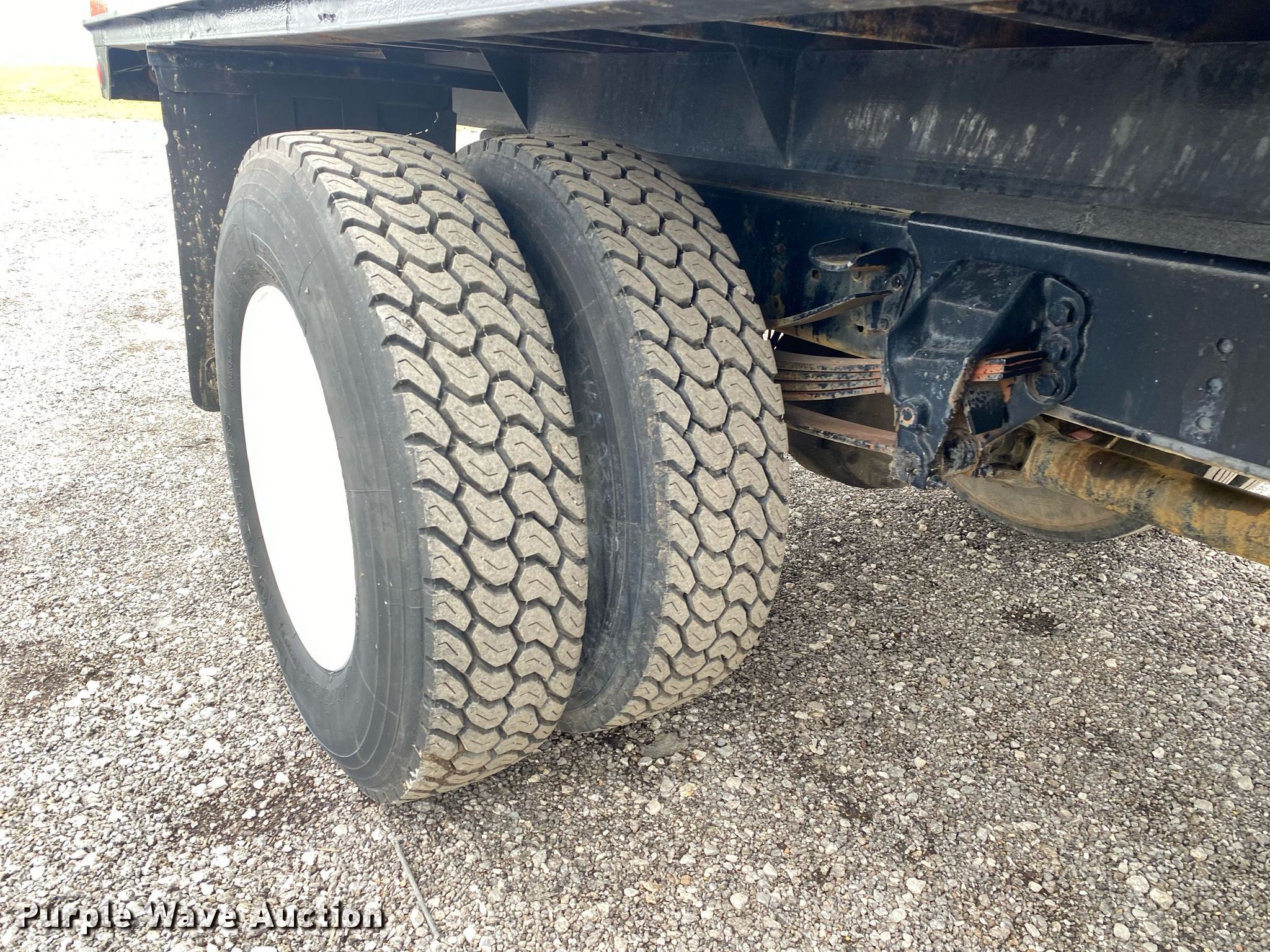 1998 Ford F800 dump flatbed truck. Miles: 76,909 on odometer, VIN: 1FDNF80C3WVA36978. Engine Cummins B5.9-190, Displacement: 5.9L, Cylinders: 6, Fuel type: Diesel. Transmission Manual, Speed: 6. Chassis Axles: Single, Suspension: Spring, Brakes: Hydraulic, PTO, GVWR: 26,000 lbs, Wheelbase: 153". Interior AC, Heat, Brake controller. Features Dump flatbed Crysteel Mfg. Inc. 645, 16' 1" L x 92" W, Ram: Single. Tires Size: 295/75R22.5. Oklahoma title. 15107 North 137th East Avenue. Collinsville, OK 74021