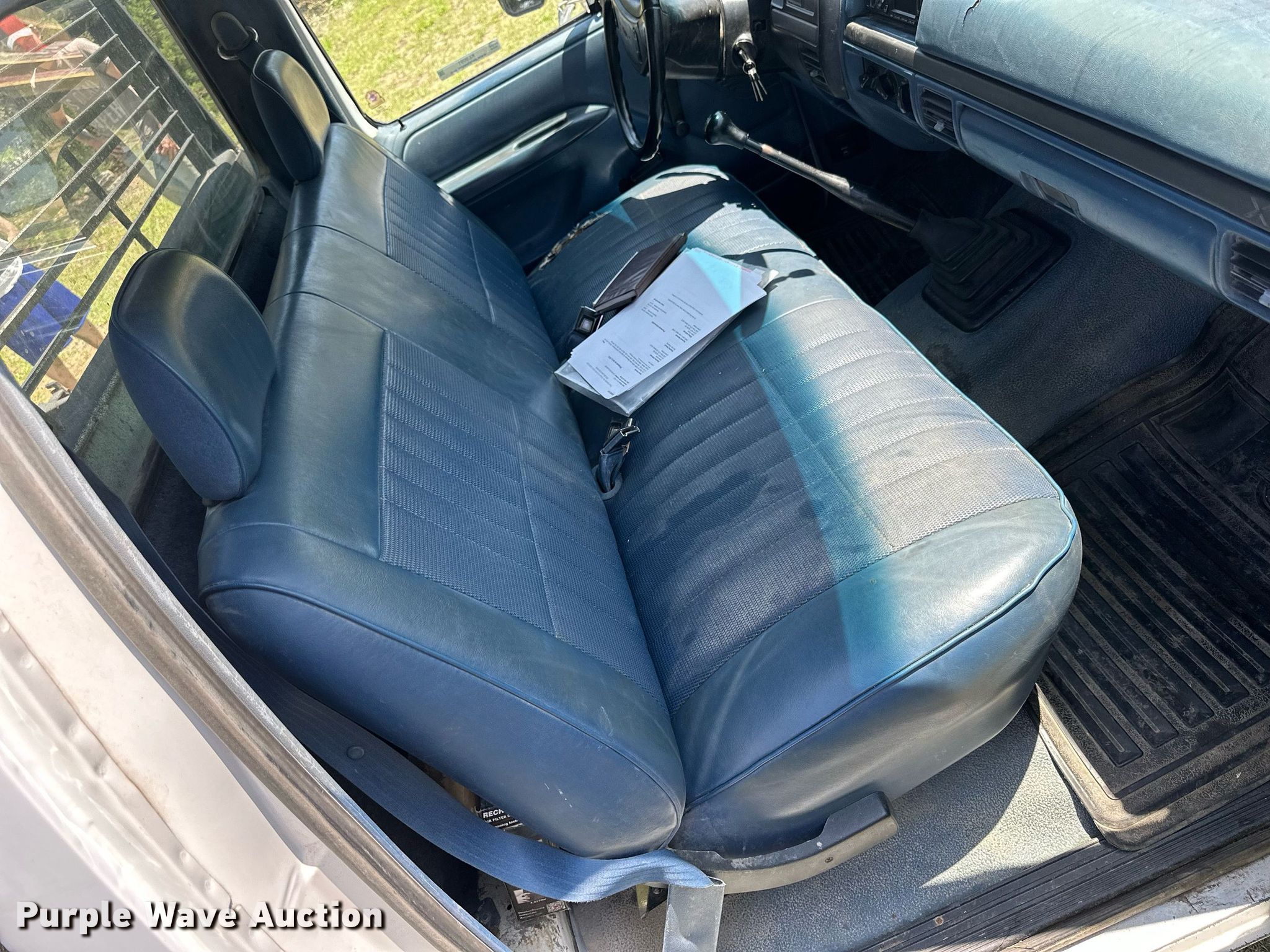 This 1995 Ford F350 flatbed pickup truck will sell to the highest bidder regardless of price.