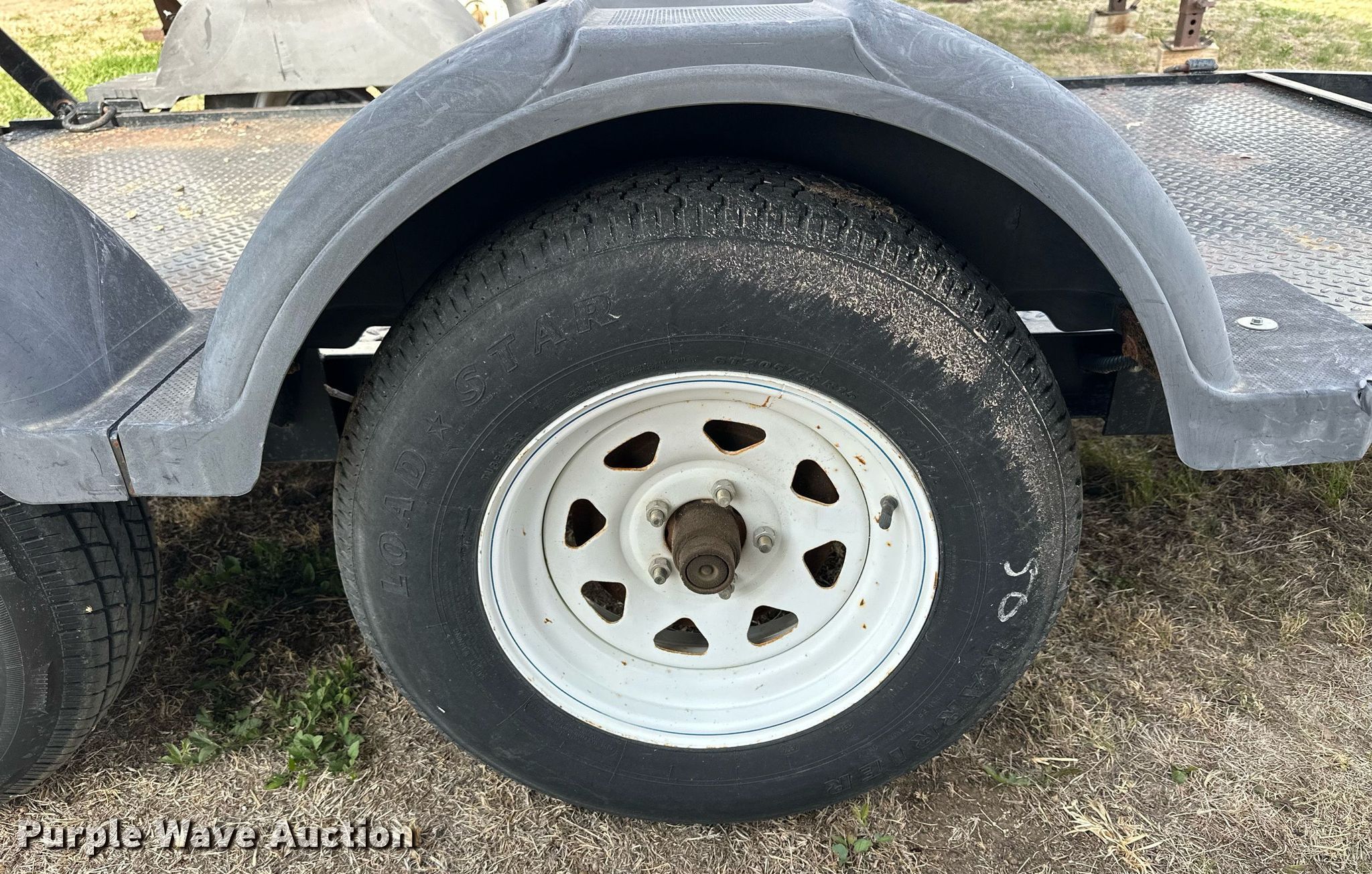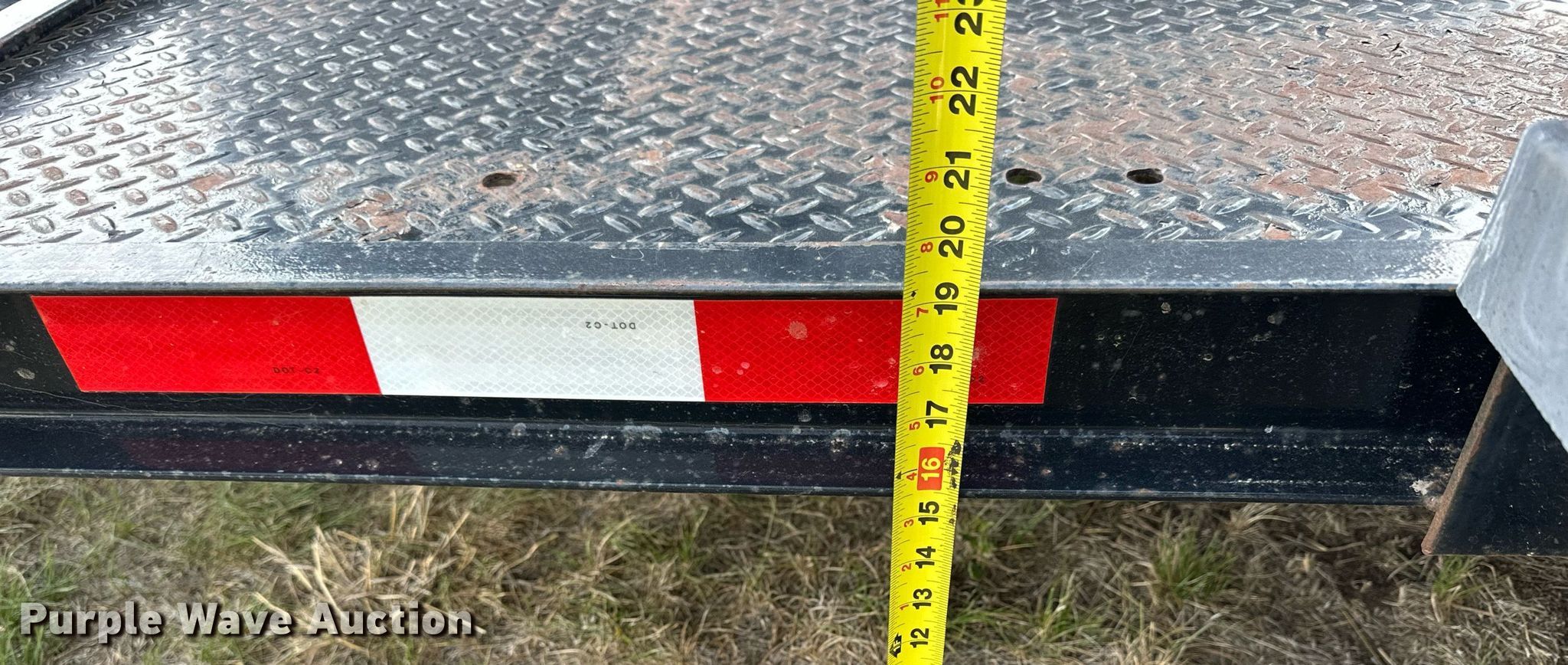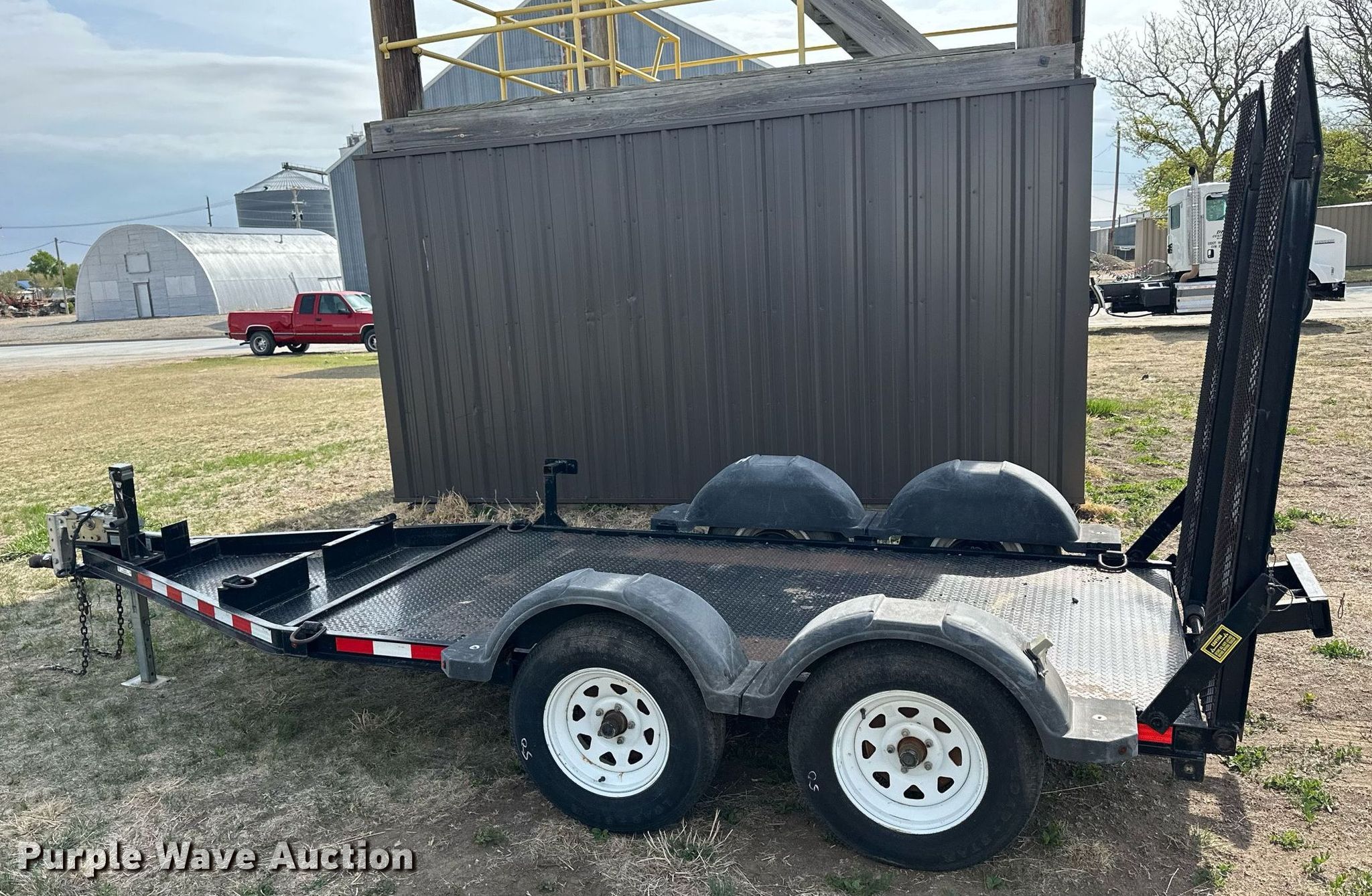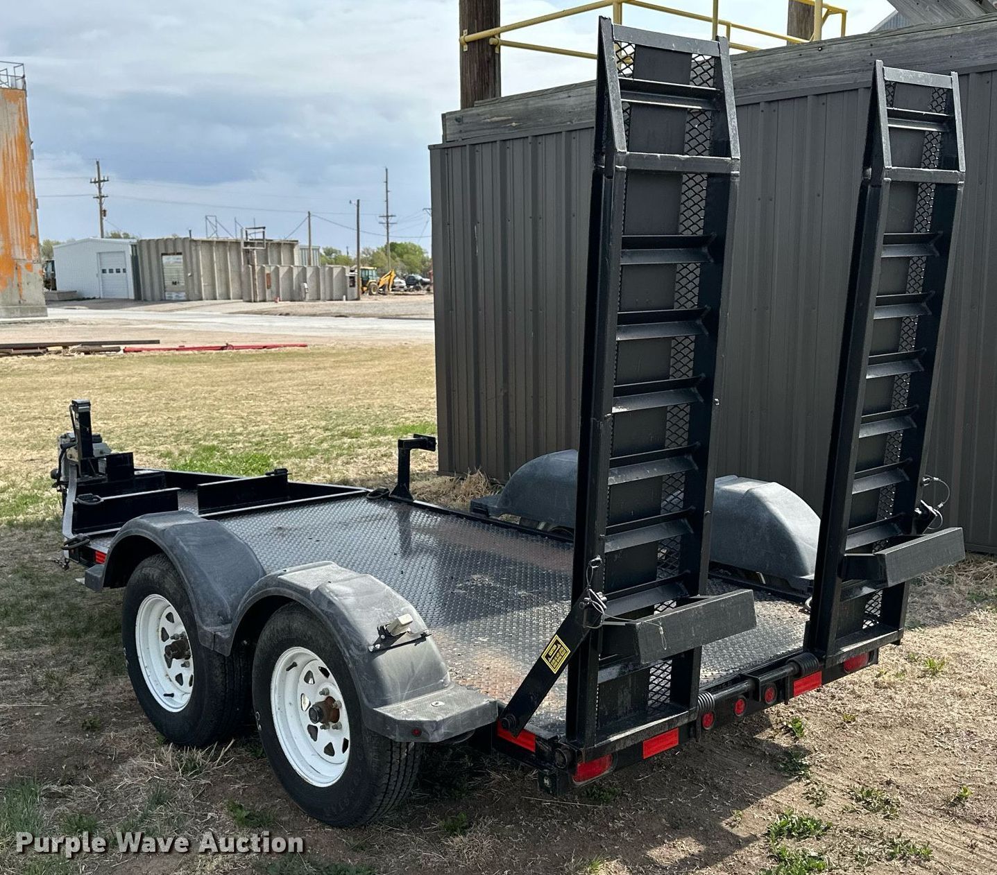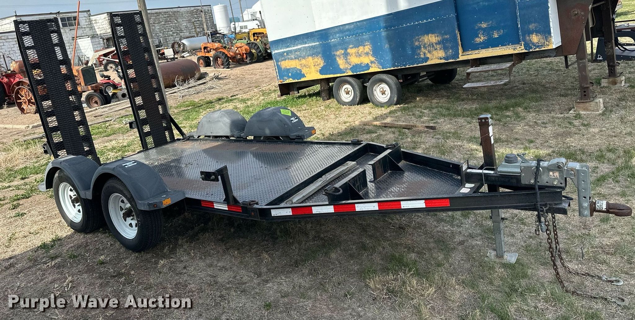2014 MMDI utility trailer. VIN: 5631B1724EM011178. Dimensions Overall: 18' L x 87" W, Deck: 10' L x 64" W, Deck height: 19", Ramps: Manual Length: 6'. Features Deck type: Steel. Chassis Ball hitch: 2", Landing gear: Single, Suspension: Spring, Brakes: Electric, Axles: Tandem, GVWR: 6,990 lbs, GAWR: 3,500 lbs. Tires Steel wheels, Size: 205/75R15. Kansas title. Deines Construction. 131 S 1st St. WaKeeney, KS 67672