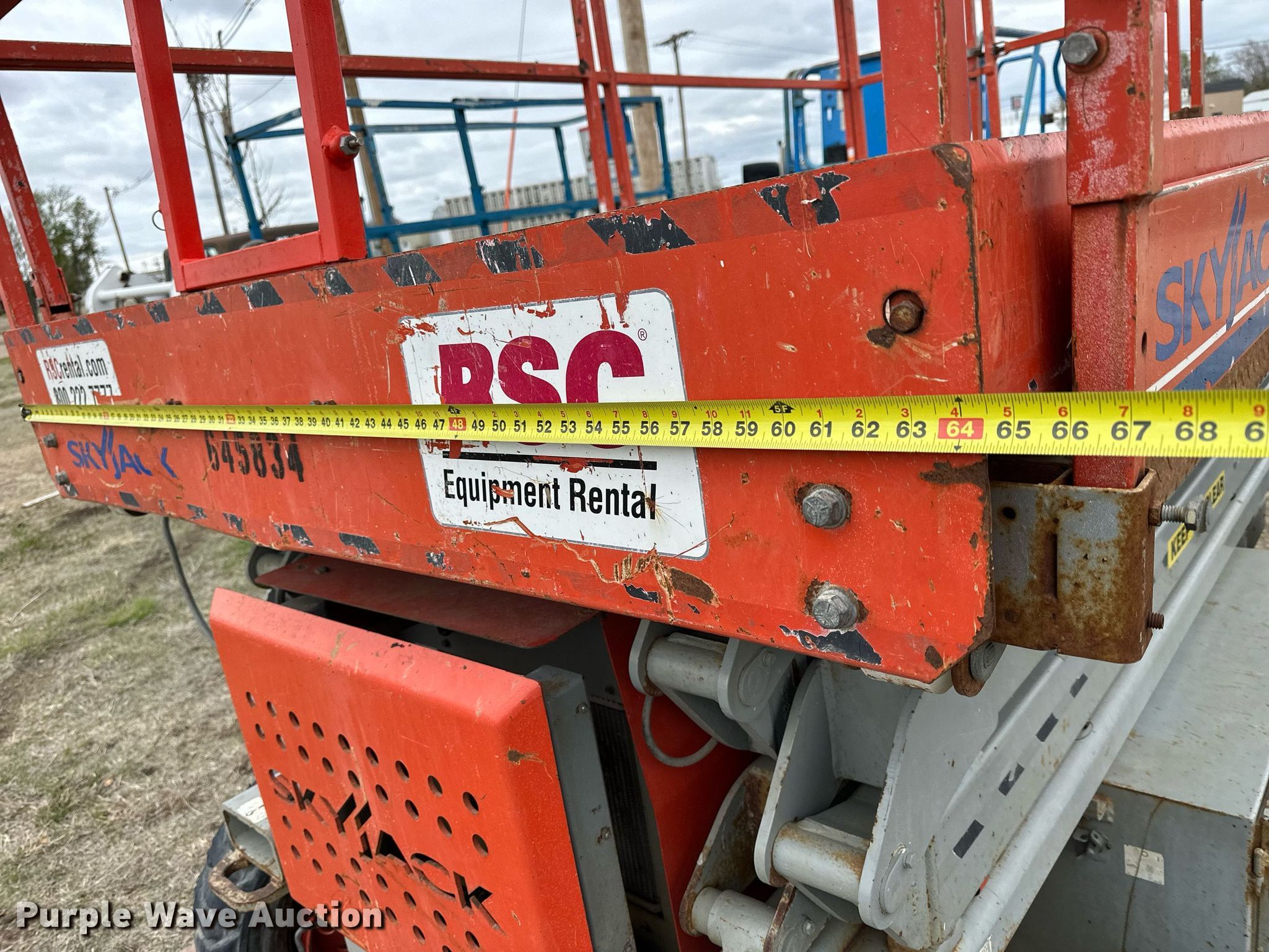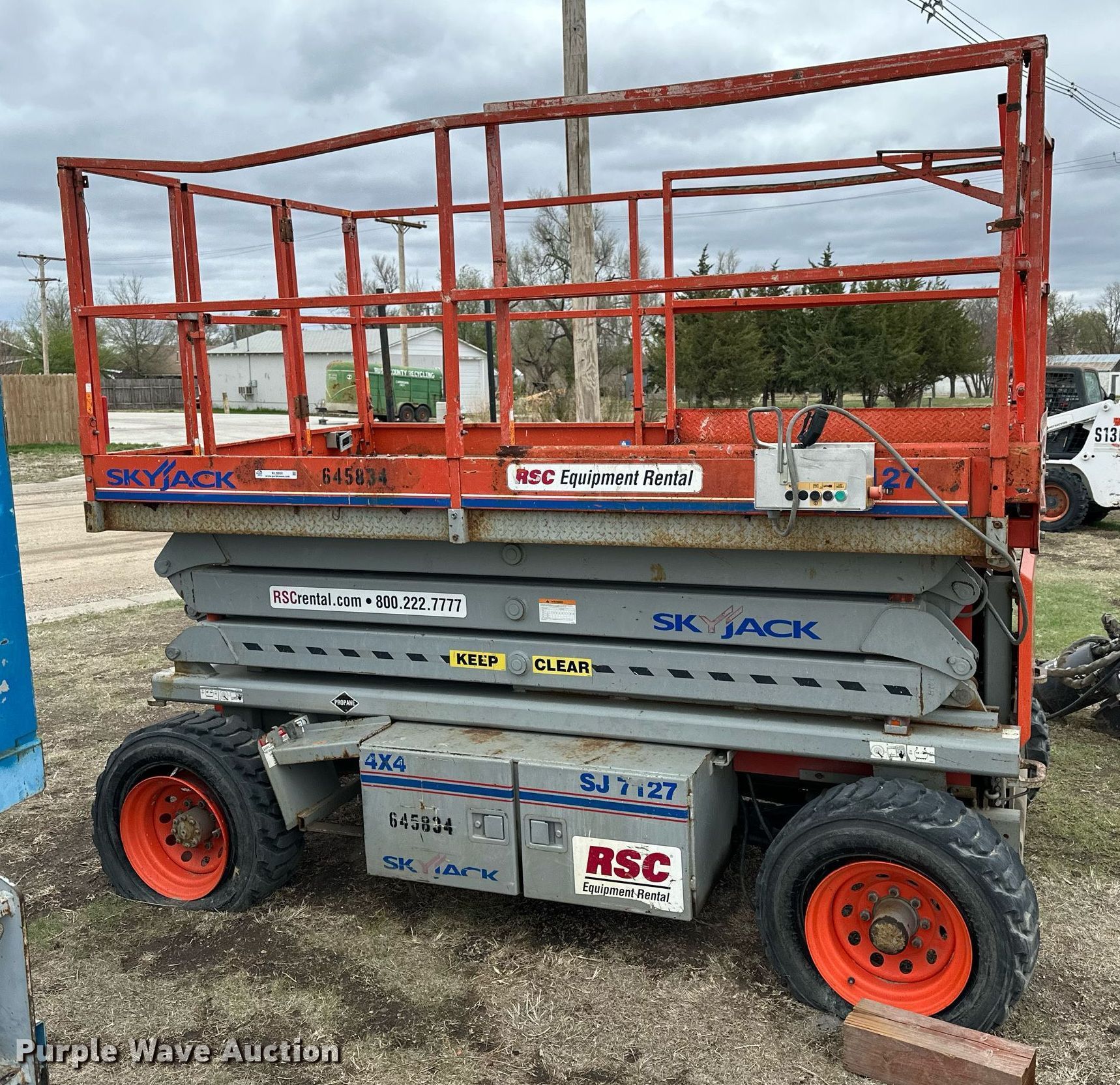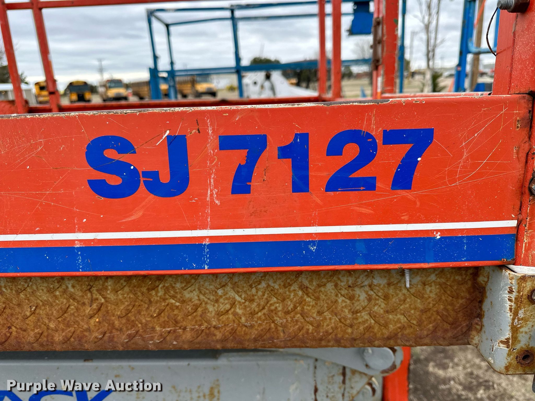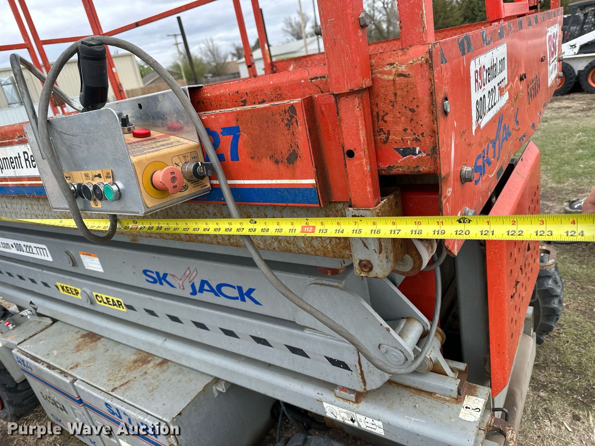 Purple Wave is selling a used Scissor or Vertical Lift in Kansas. This item is a Skyjack SJ7127 scissor lift with the following: Hours: 2,567 on meter, Serial: 342676