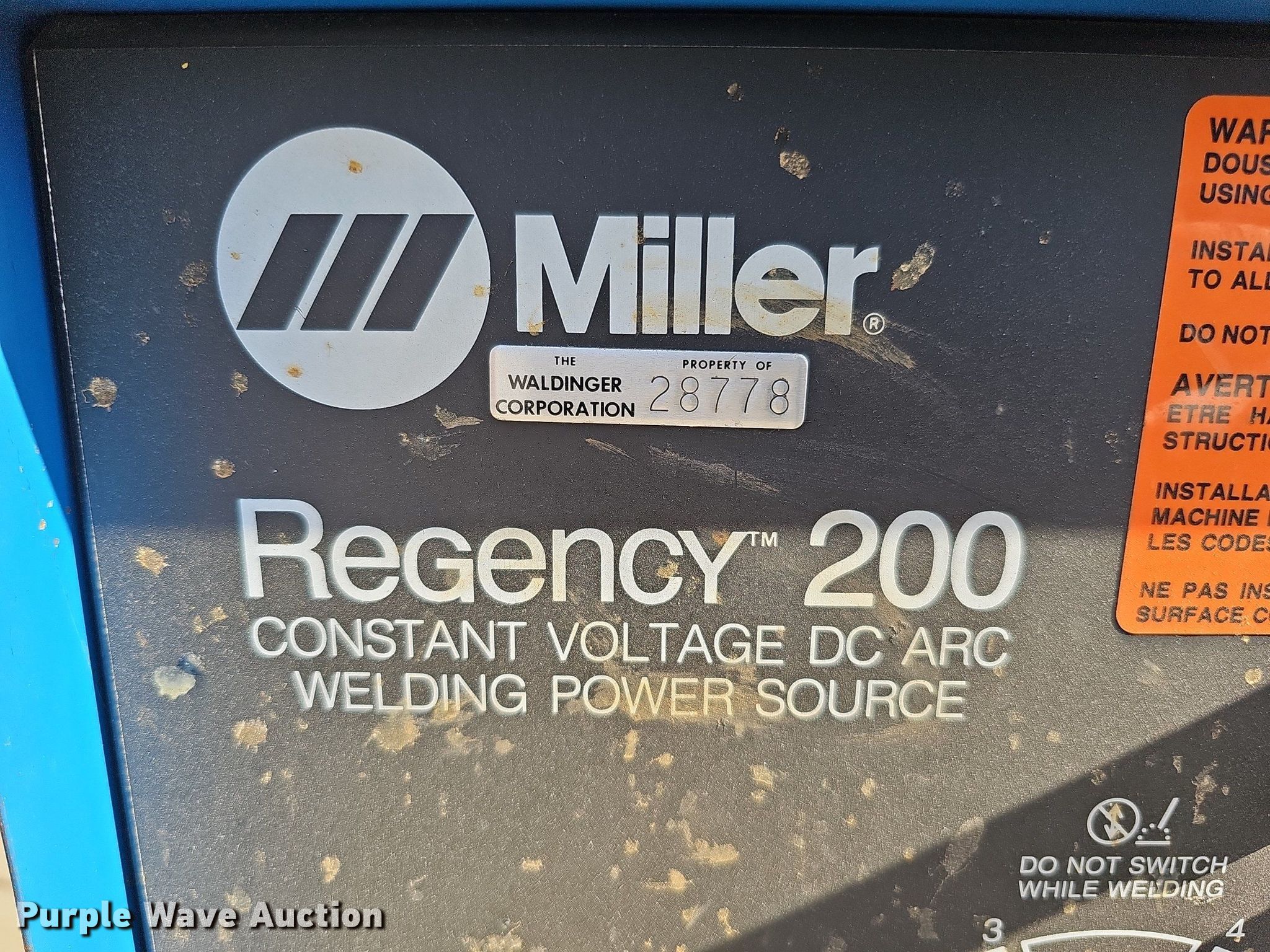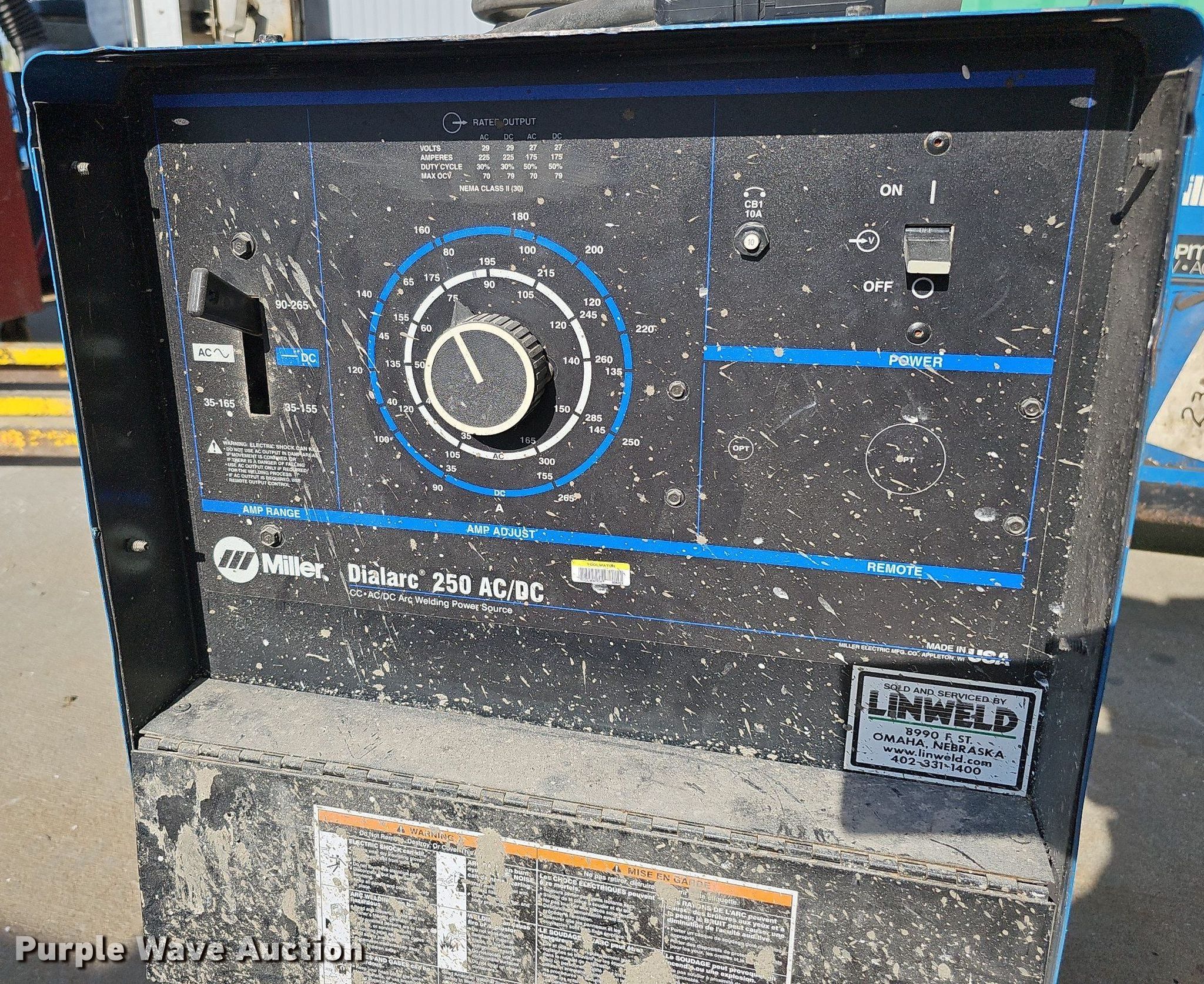 (3) Miller welders. Miller Regency 200 welder. Serial: JJ478649. Electric Motor kW: 8.3, Volts: 230/460, Phase: Single. Features Welder Capabilities: DC, Bottles not included. Notes Unknown operating condition. Miller Dialarc 250 AC/DC welder Serial: LG050131C. Electric Motor kW: 11.8, Volts: 200/230/460, Phase: Single. Features Welder Capabilities: CC, DC, AC, Leads. Notes Unknown operating condition. Miller Shopmaster 300 AC/DC welder Serial: KA753144. Electric Motor kW: 13.9, Volts: 200/230/460, Phase: Single. Features Welder Capabilities: CC, CV, DC, AC, Bottles not included. Notes Non-operational unit. The Waldinger Corporation. 8802 South 121st St. La Vista, NE 68128