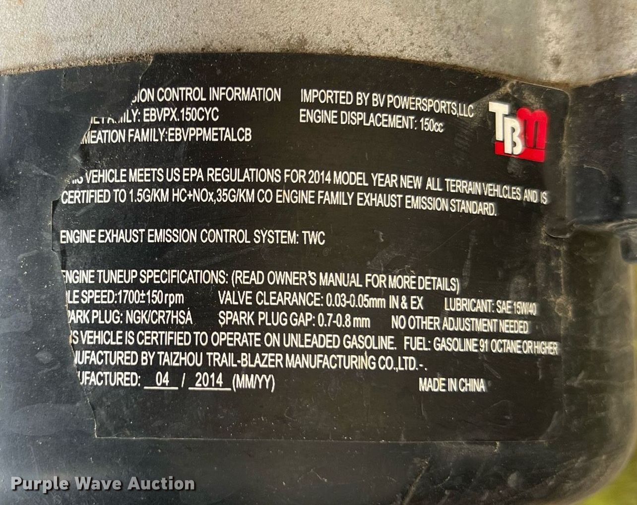 Purple Wave is selling a used ATV in Oklahoma. This item is a Trailmaster 150 XRX ATV with the following: Miles: 416 on odometer, Miles or hours may vary, unit still in use, Serial: L0BBTRFY8E0000695