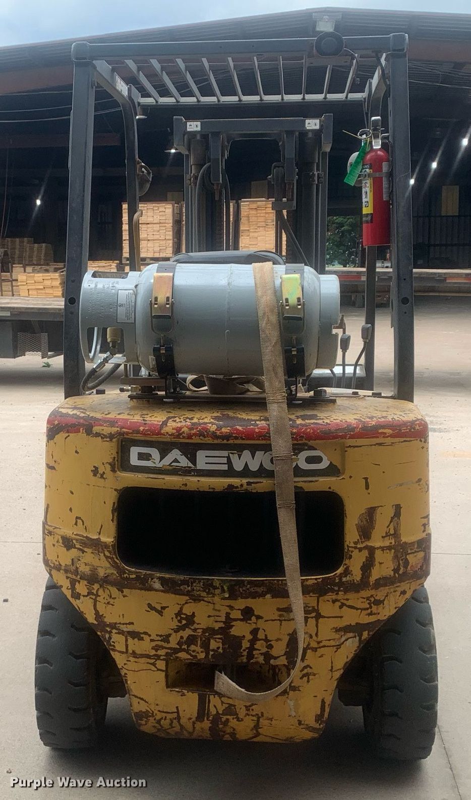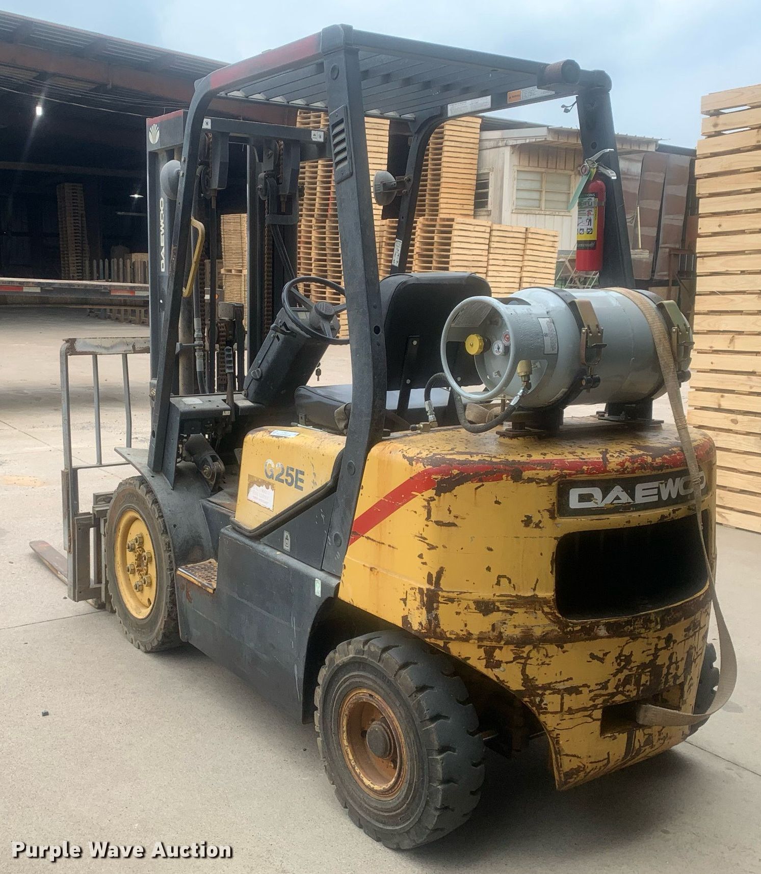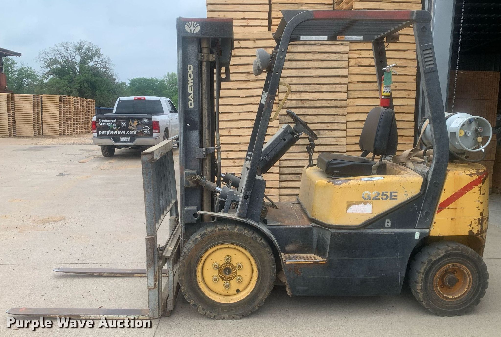 Purple Wave is selling a used Warehouse Forklift in Texas. This item is a Daewoo G25R-3 forklift with the following: Hours: 4,459 on meter, Miles or hours may vary, unit still in use, Serial: CW-02129