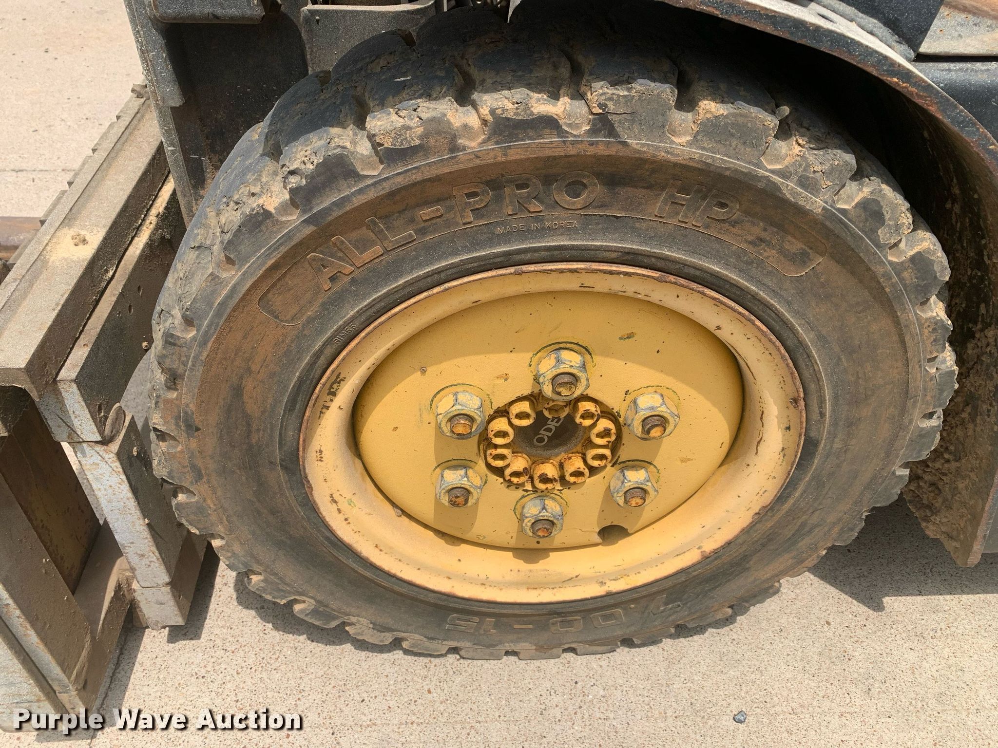Daewoo G25R-3 forklift. Hours: 4,459 on meter, Miles or hours may vary, unit still in use, Serial: CW-02129. Engine Daewoo G424, Cylinders: 4, Fuel type: LPG LP bottle: Not included. Transmission Powershift. Operators station Canopy. Features Maximum lift capacity: 5,000 lbs, Maximum lift height: 173", Mast stages: 3, Side shift, Mast tilt, Fork length: 42". Tires Front: 7.00-15, Rear: 6.50x10 5.00, Solid. Notes Emergency brake issues, will not engage. Consolidated Wood Products. 1940 Co Rd 3703. Bullard, TX 75757