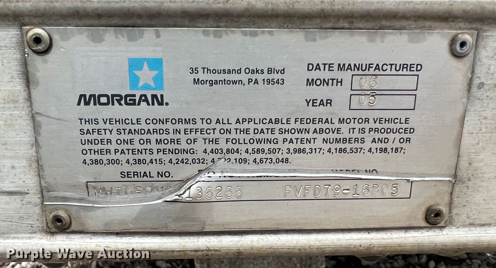 2005 Morgan PVFD79-16B05 box bed. Serial: MWT059MG2136266, 16.5' L x 96" W x 81" H, Floor: Wood, Slider ramp Width: 29". 199 E Douglas St. Syracuse, MO 65354