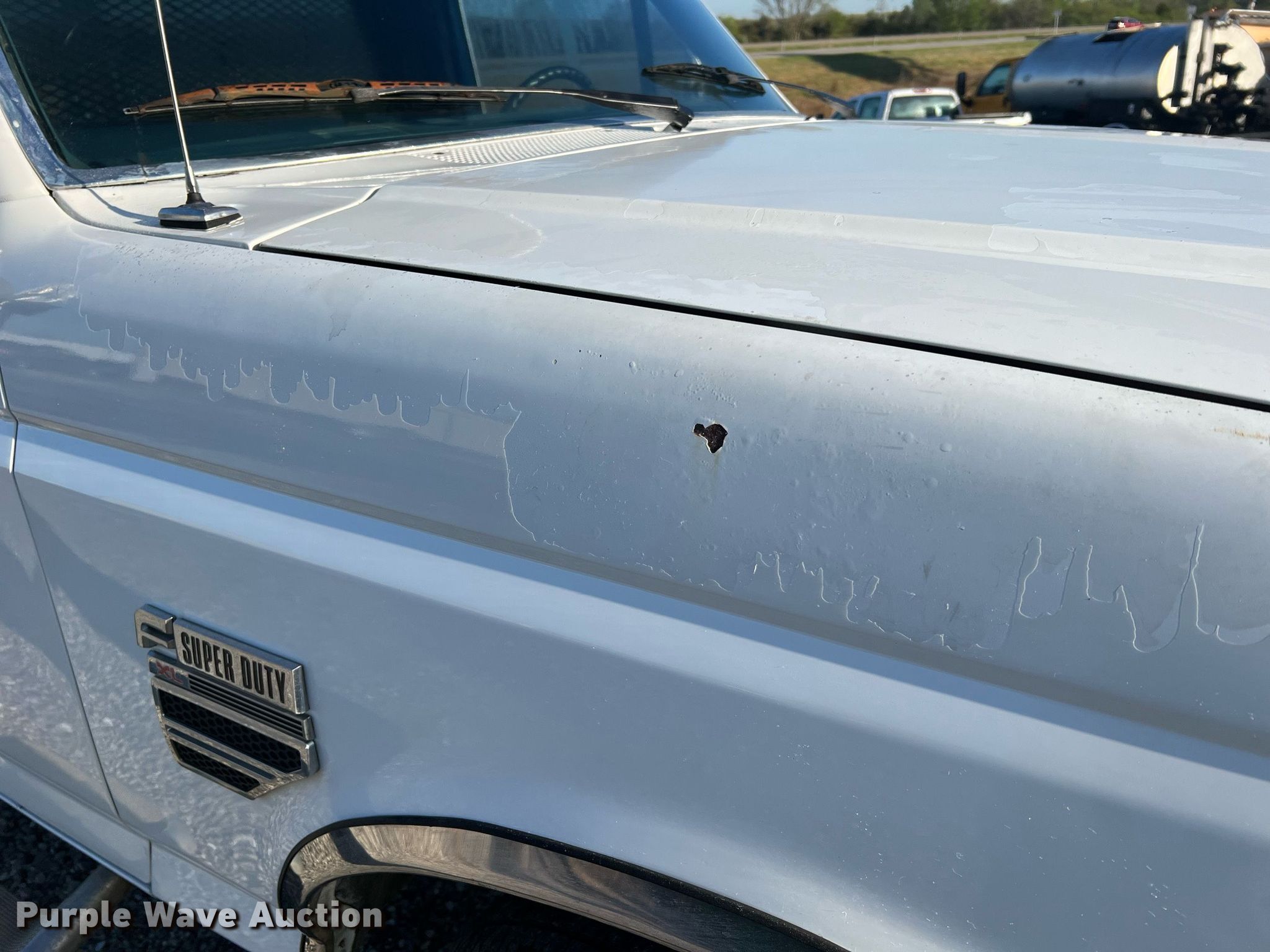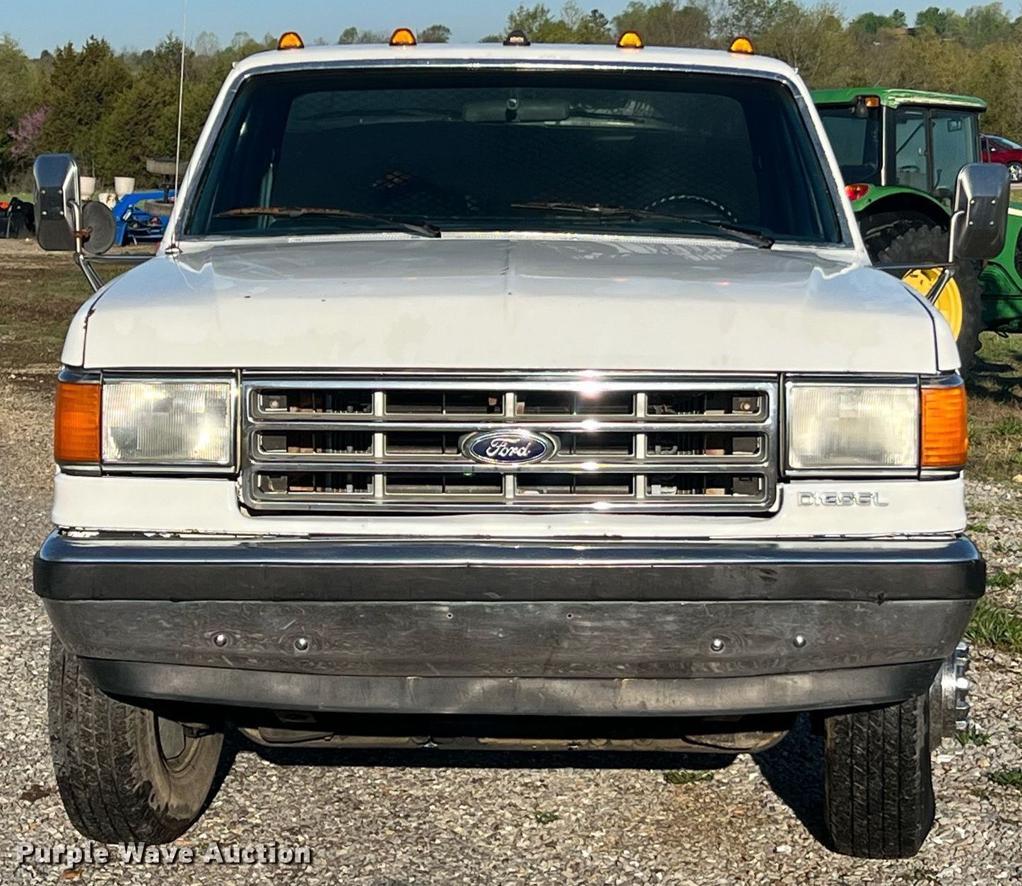 1988 Ford F450 XL flatbed truck. Miles: 74,735 on odometer, VIN: 2FDLF47M3JCA35262. Engine Displacement: 7.3L, Cylinders: 8, Fuel type: Diesel. Transmission Manual, Speed: 5. Interior AC, Heat, Power windows, Power locks, Cruise control. Features Flatbed 12' L x 87" W. Tires Size: LT235/85R16. Notes Gooseneck latch welded shut, Possible ignition issues, Possible glow plug issues. Missouri title. Mileage has not been verified. Exempt will be written in the odometer disclosure on the title. Title distribution may be delayed up to 14 days from verification of funds. T&R Equipment. 8267 Old Highway 54. New Bloomfield, MO 65063