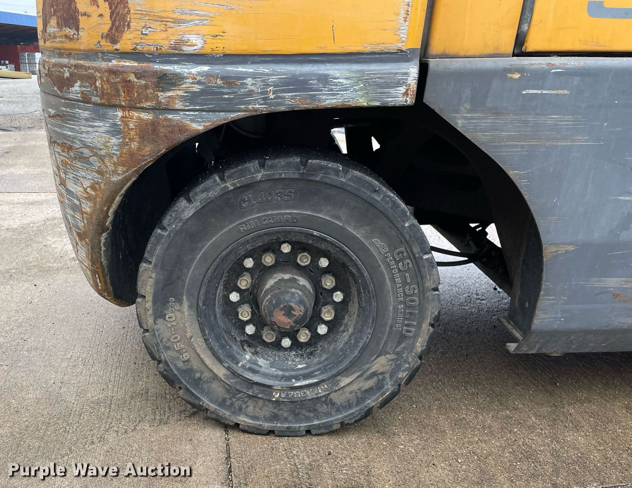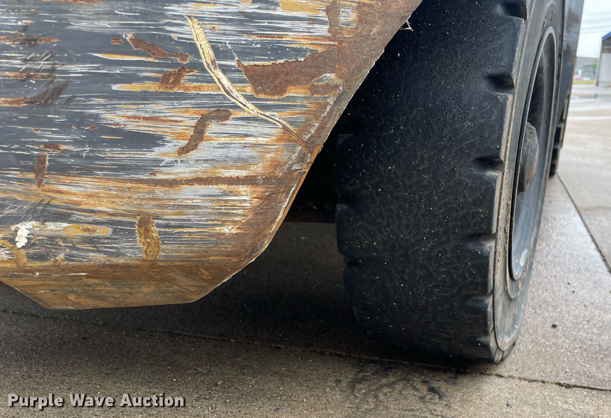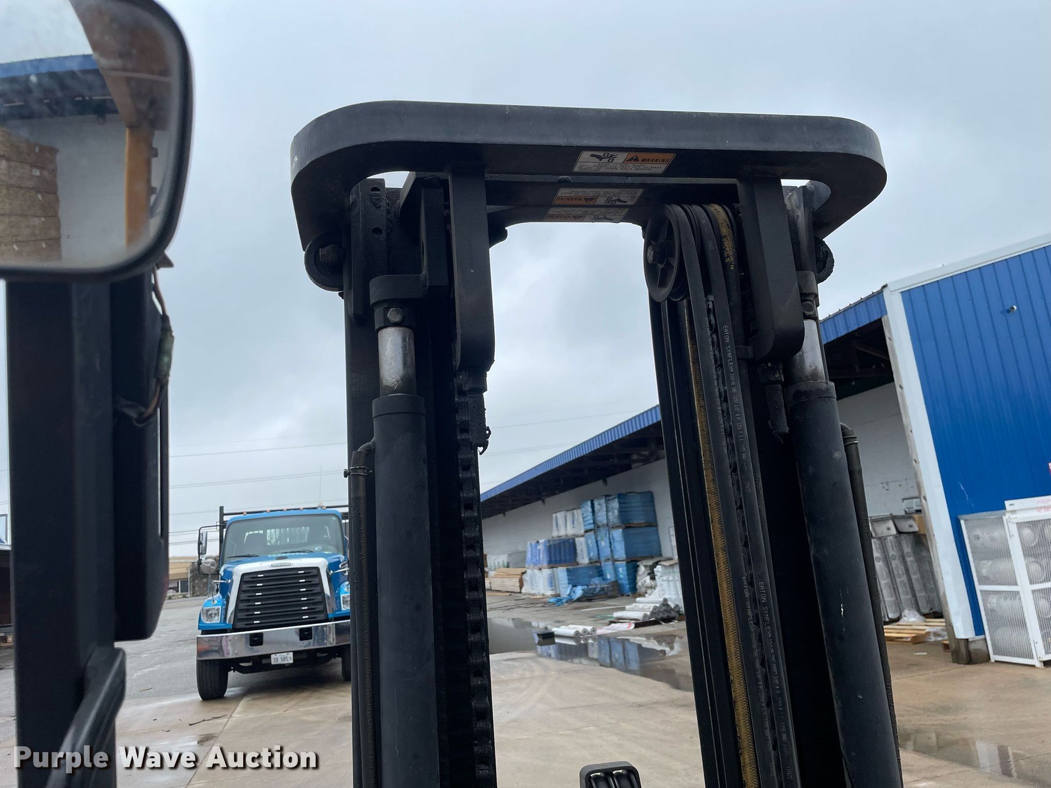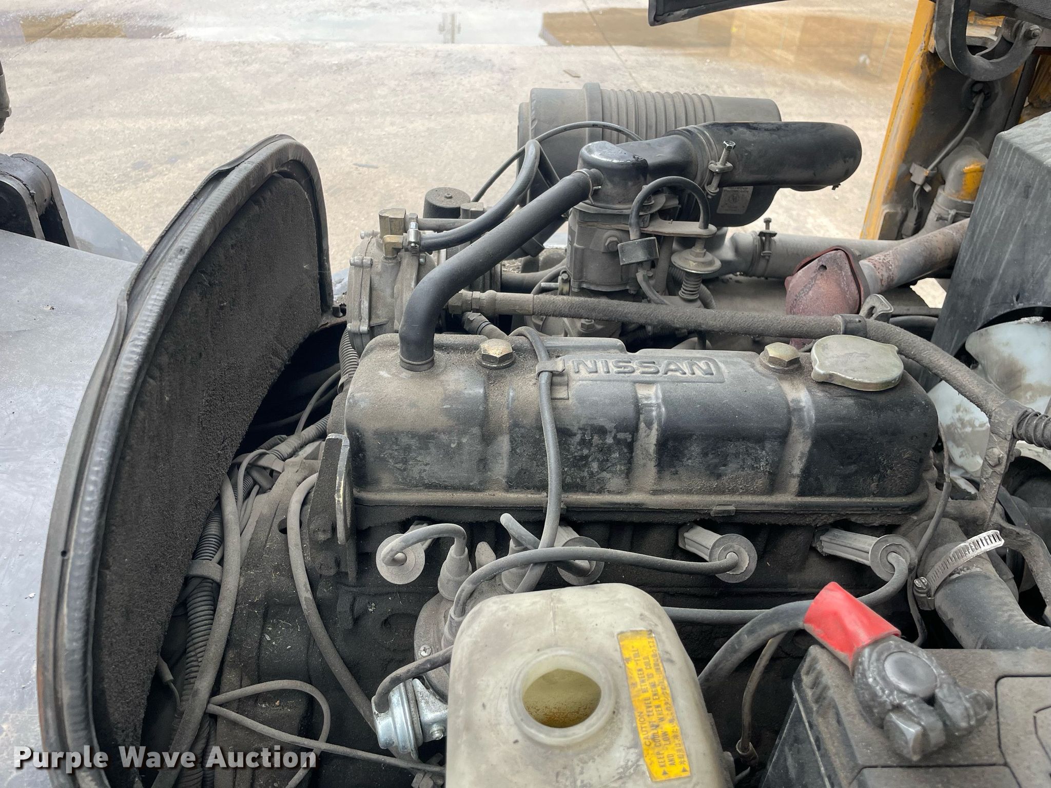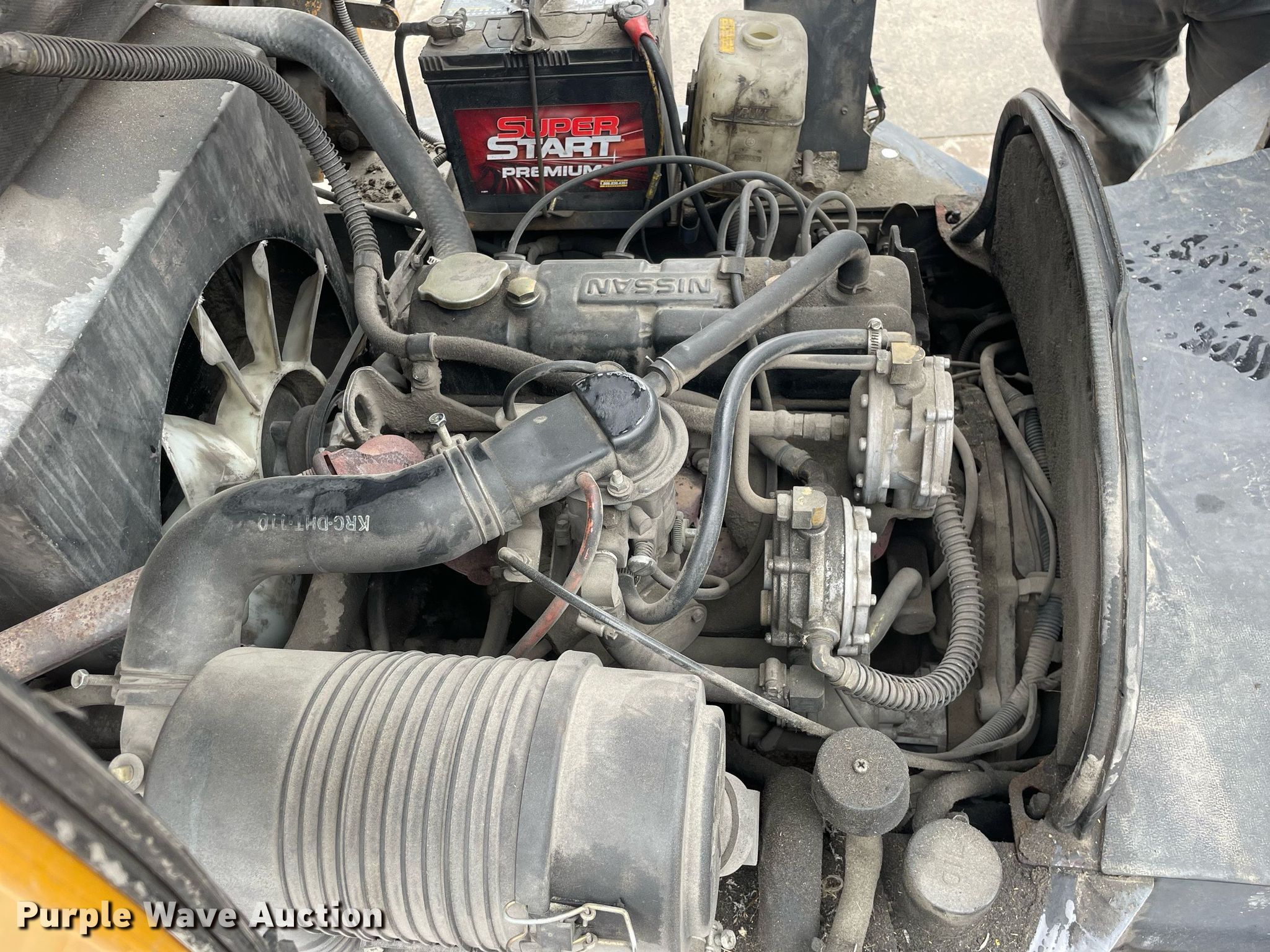 TCM FG30N5T forklift. Hours: 8,419 on meter, Serial: A31M72384. Engine Nissan, Cylinders: 4, Fuel type: LPG, Dual fuel LP bottle: Not included. Transmission Powershift. Operators station OROPS. Features Maximum lift capacity: 4,700 lbs, Maximum lift height: 189", Mast stages: 3, Side shift, Mast tilt, Fork length: 46". Tires Front: 28x9-15, Rear: 6.50-10, Solid. R.P. Lumber Co., Inc.. Morton, IL 61550