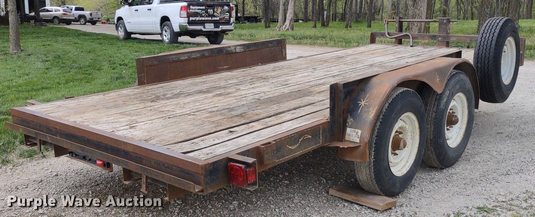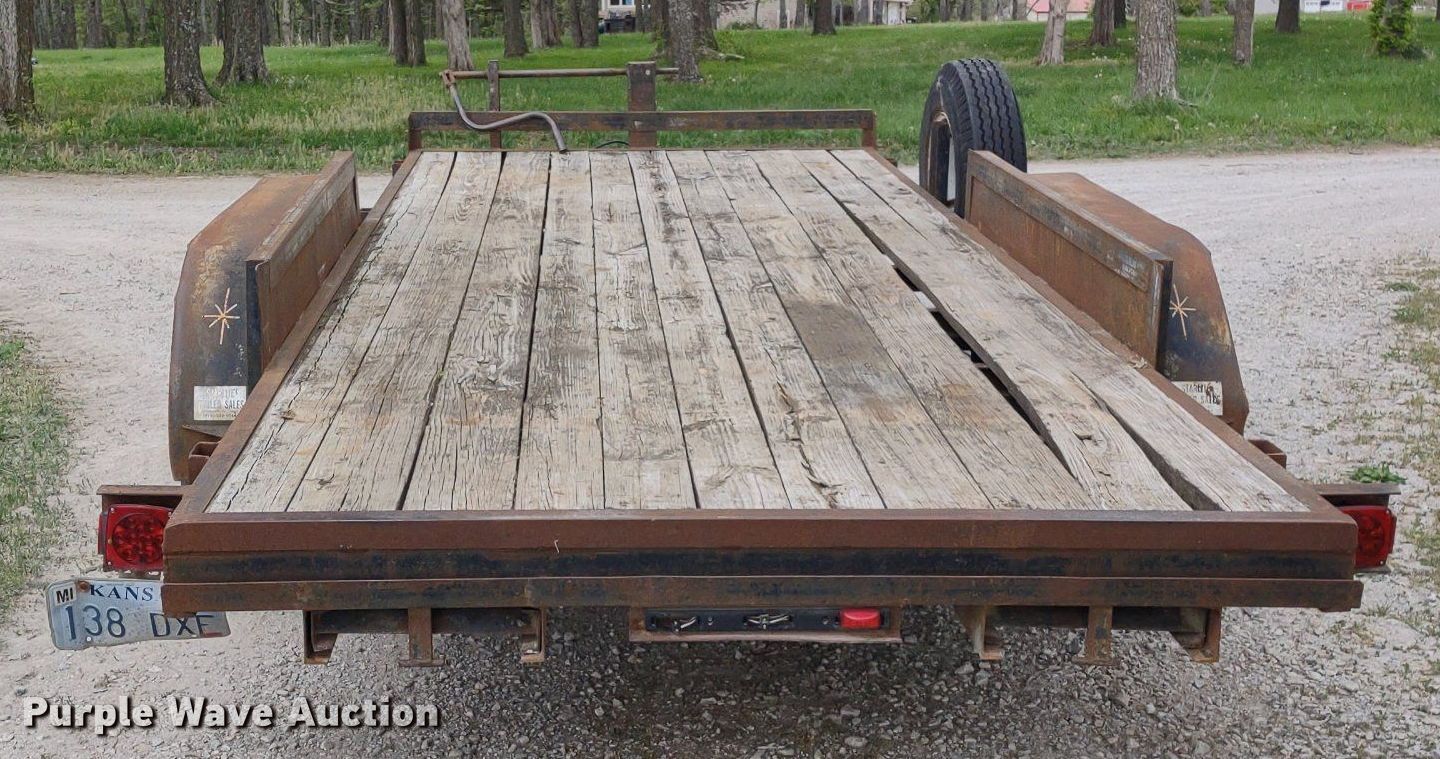 1994 Starlite Trailers equipment trailer. VIN: 13YFS1627RC051038. Dimensions Overall: 20' L x 8' W, Deck: 16' L x 6' 5" W, Deck height: 23", Ramps: Manual Length: 5'. Features Deck type: Wood. Chassis Ball hitch: 2 5/16", Landing gear: Single, Suspension: Walking beam, Brakes: Electric, Axles: Tandem. Kansas title. Title distribution may be delayed up to 14 days from verification of funds. Spring Hill, KS 66083