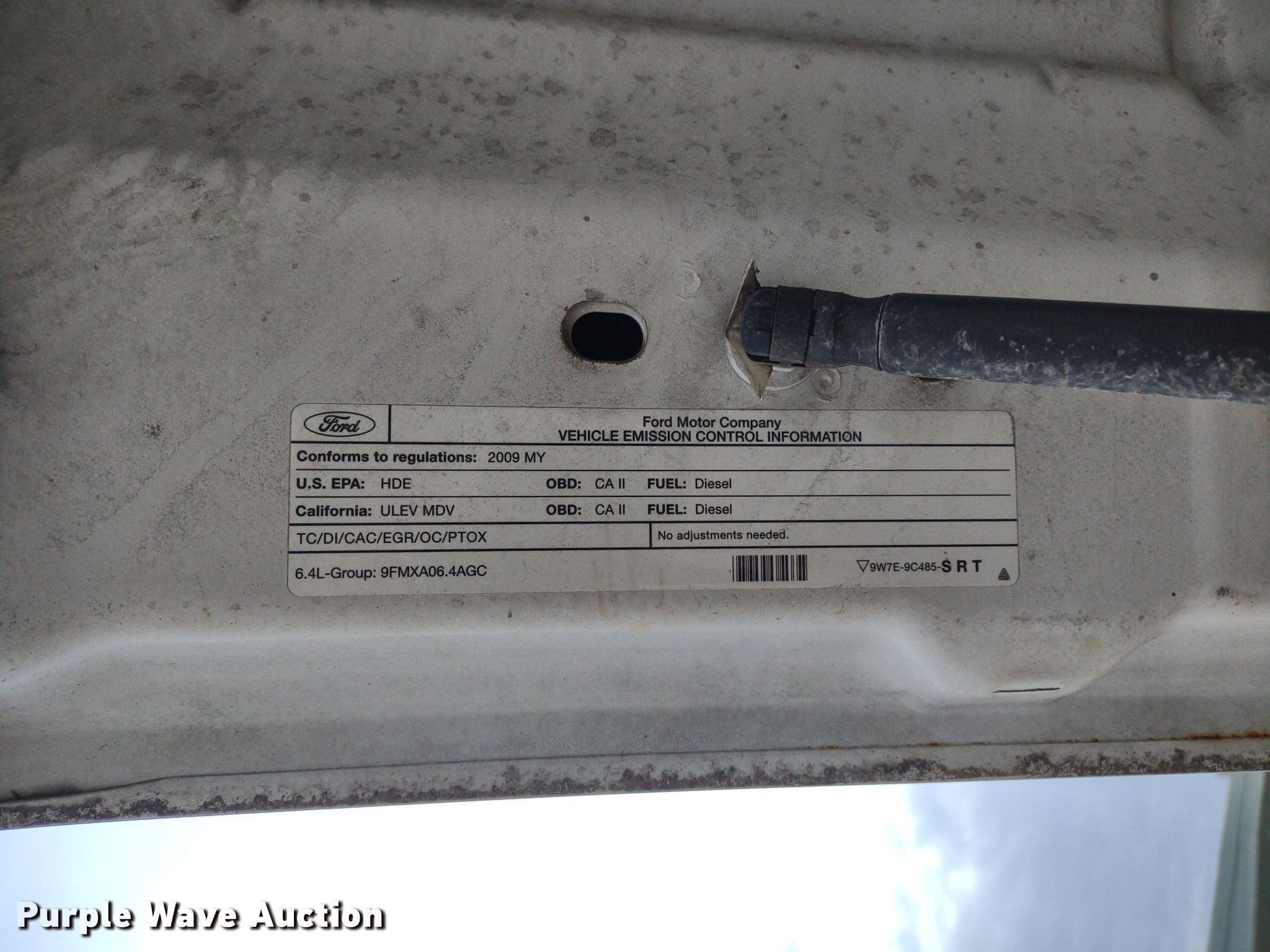 2009 Ford F350 Super Duty XL utility bed pickup truck. Miles: 60,854 on odometer, Hours: 6,499 on meter, VIN: 1FDWF37R89EA00743. Engine Displacement: 6.4L V8 OHV, Cylinders: 8, Fuel type: Diesel. Transmission Automatic, Four wheel drive. Interior AC, Heat. Features Utility bed Knapheide , 9' L x 8' W. Tires Size: 245/75R17. Notes Windshield chipped or cracked. Missouri title. Seller is a Missouri licensed motor vehicle dealer. Title will be assigned and distributed by the dealer. Please contact the seller for distribution questions. Title distribution may be delayed up to 14 days from verification of funds. V&L Conco. 1302 S Commercial St. Harrisonville, MO 64701