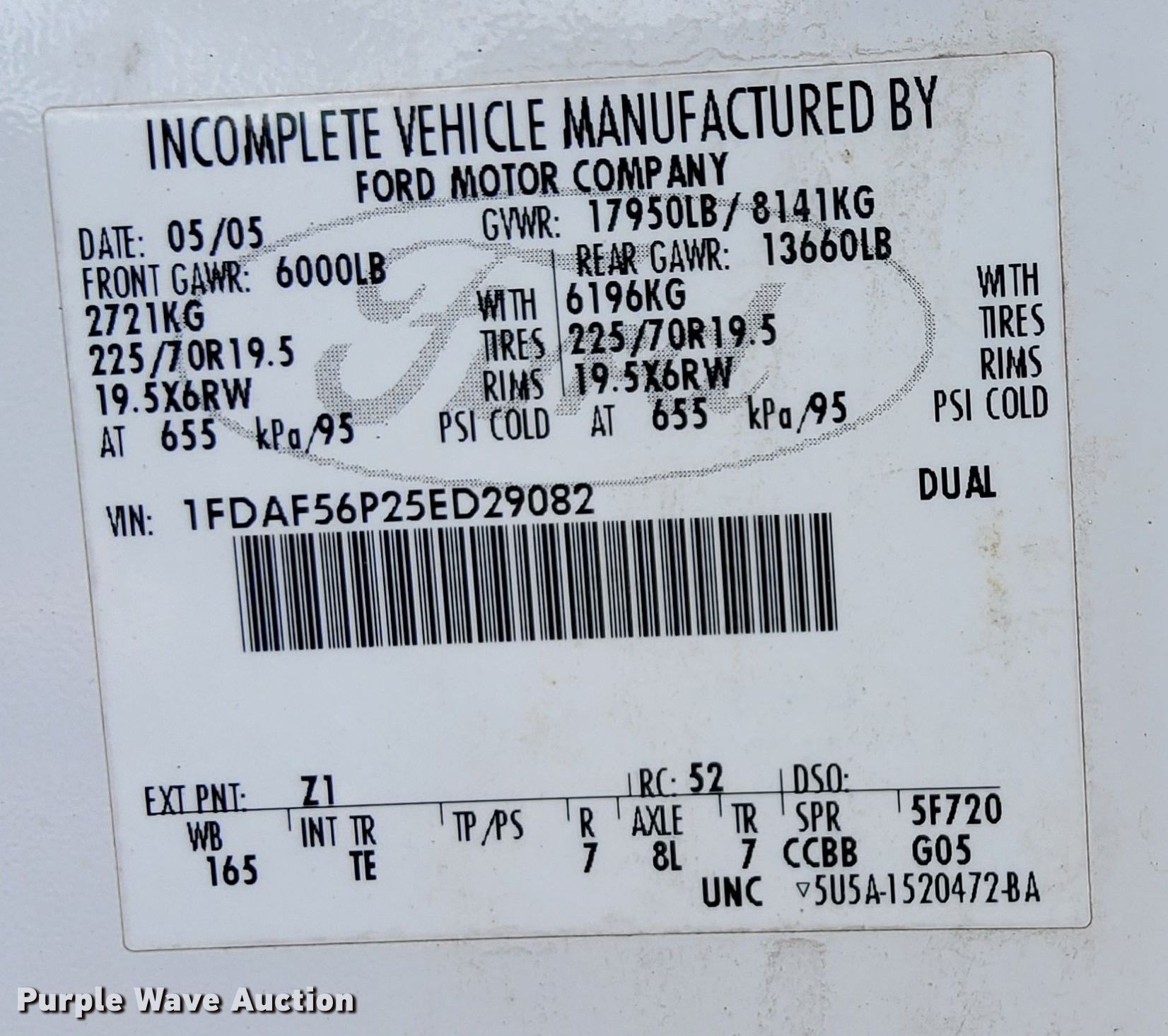 Purple Wave is selling a used Truck Chassis in Illinois. This item is a 2005 Ford F550 Super Duty XL truck cab and chassis with the following: Miles: 174,403 on odometer, VIN: 1FDAF56P25ED29082