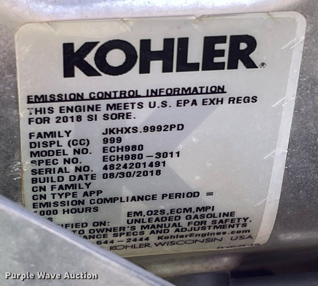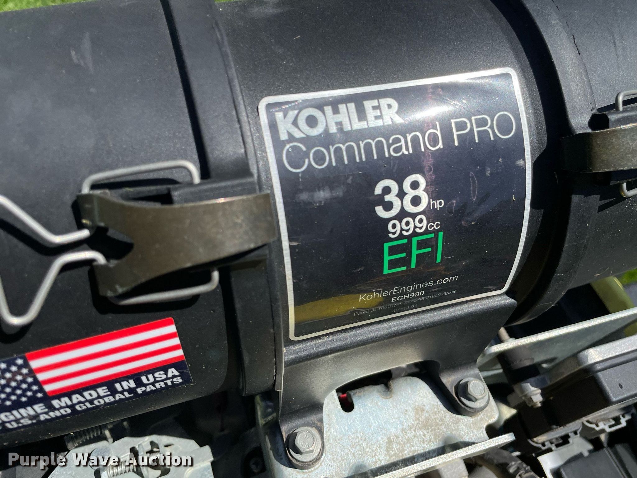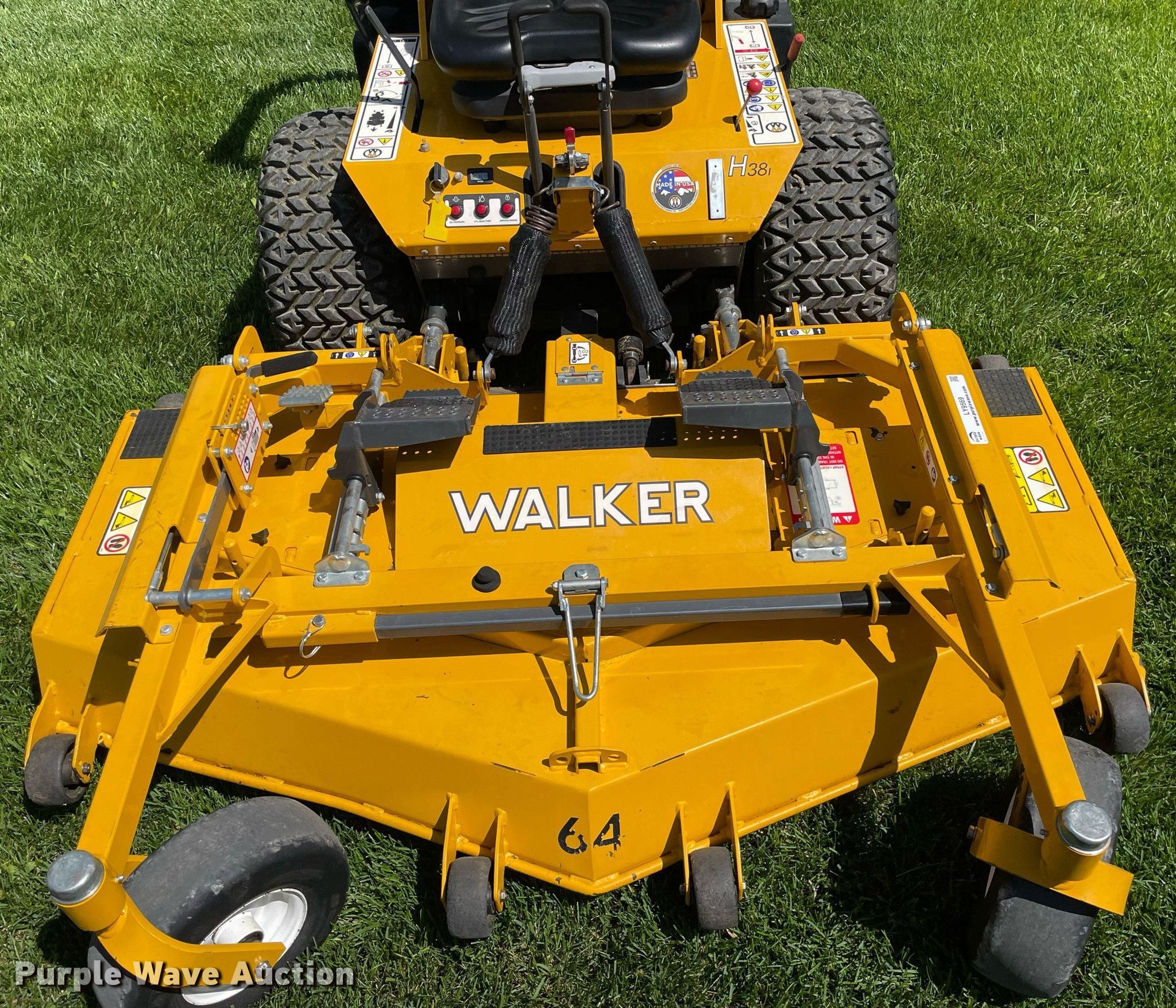 Walker MH38I-16 ZTR lawn mower. Hours: 368 on meter, Cutting width: 64", Serial: 145390. Engine Kohler ECH980, Displacement: 999 cc, Cylinders: 2, Fuel type: Gas. Transmission Hydrostatic. Operators station OROPS. Features Hydraulic front deck lift. Tires Front: 23x10.50-12, Rear: 13x5.00-6. Sedgwick, KS 67135