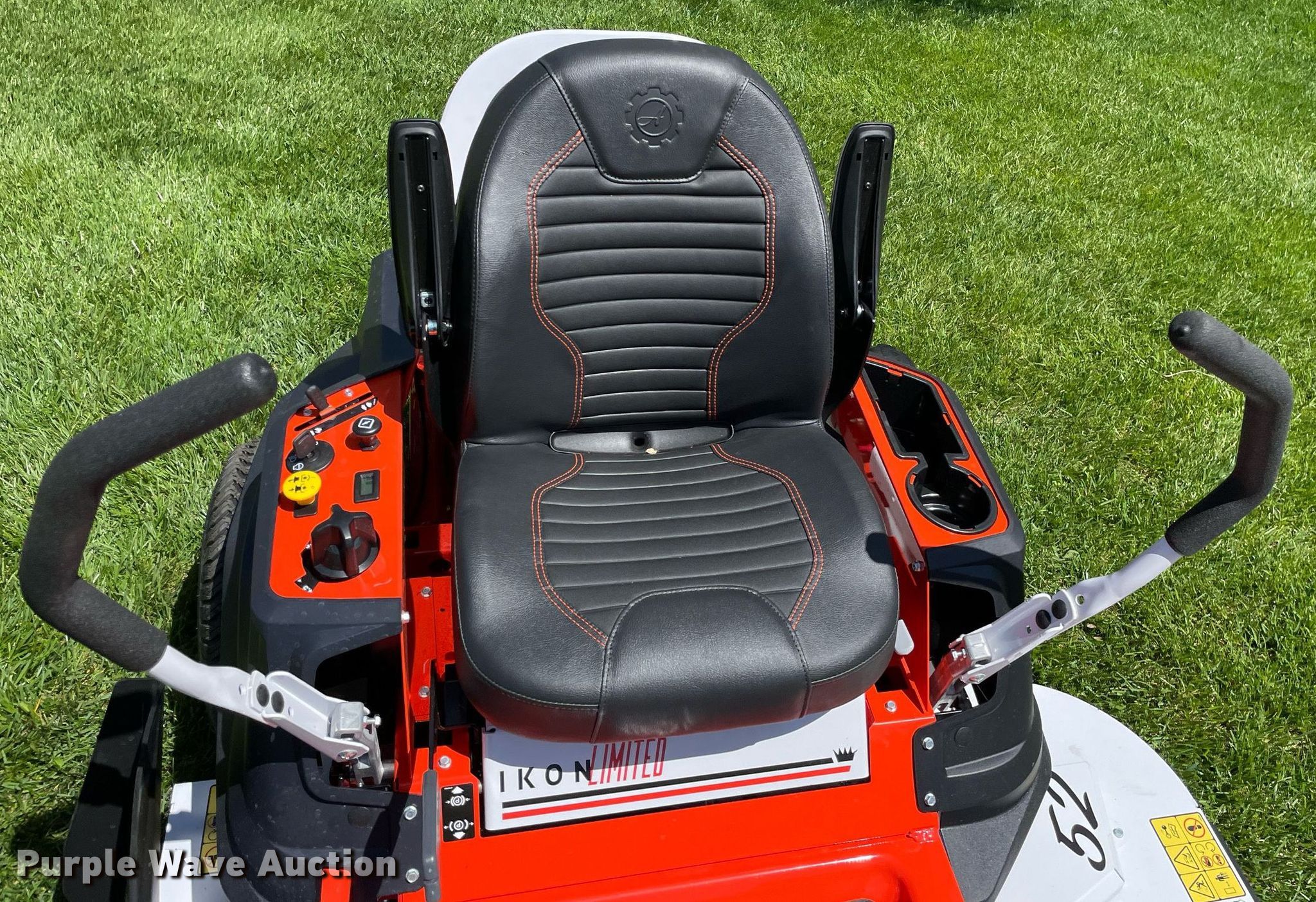 Purple Wave is selling a used Lawn Mower in Kansas. This item is a Ariens Ikon XD52 ZTR lawn mower with the following: Hours: 0.1 on meter, Cutting width: 52", Serial: 091615