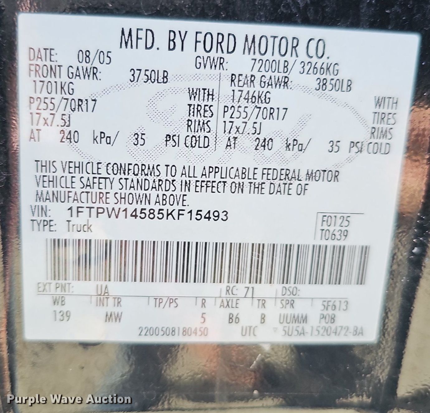 - VIN: 1FTPW14585KF15493
