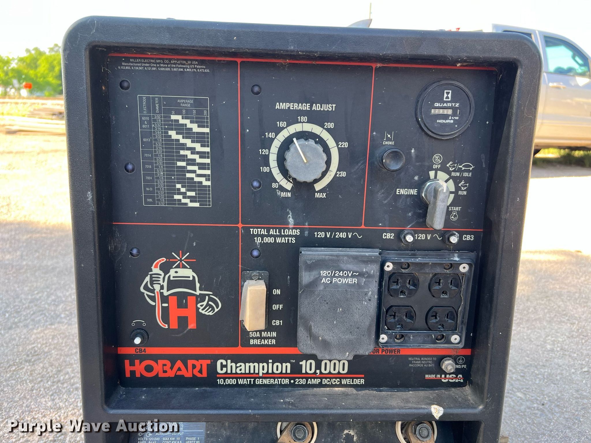 Purple Wave is selling a used Welder (Manual) in Texas. This item is a Hobart Champion 10,000 welder/generator with the following: Hours: 295 on meter, Serial: LH240830H