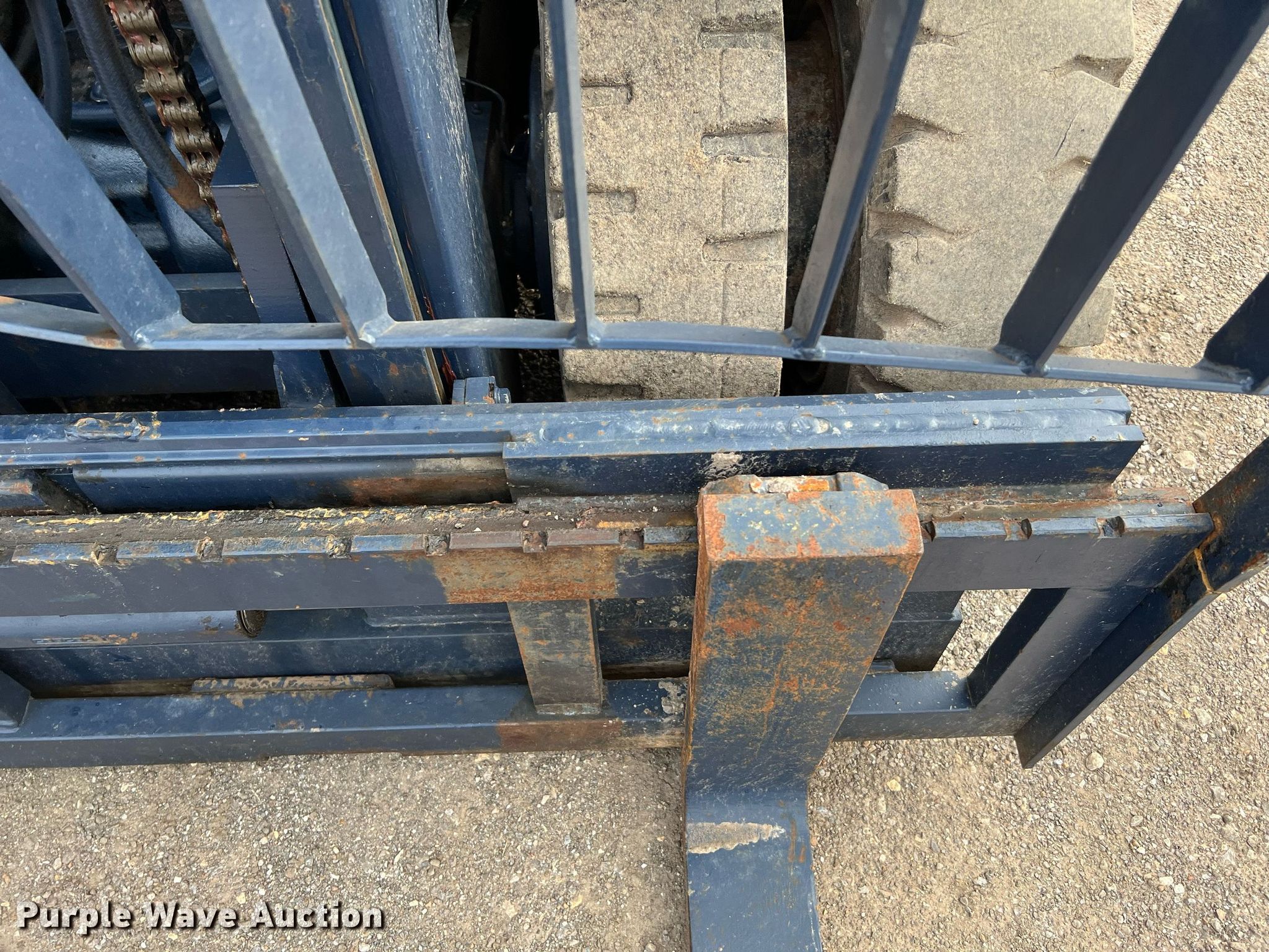 2012 Komatsu FD45T2 forklift. Hours: 6,832 on meter. Engine Komatsu, Cylinders: 6, Fuel type: Diesel. Transmission Powershift, 1F - 1R. Operators station Canopy. Features Mast stages: 2, Side shift, Mast tilt, Fork length: 60". Tires Front: 8.25-15, Rear: 7.00-12, Solid. LMH International LLC. 830 Turney Drive. Houston, TX 77038