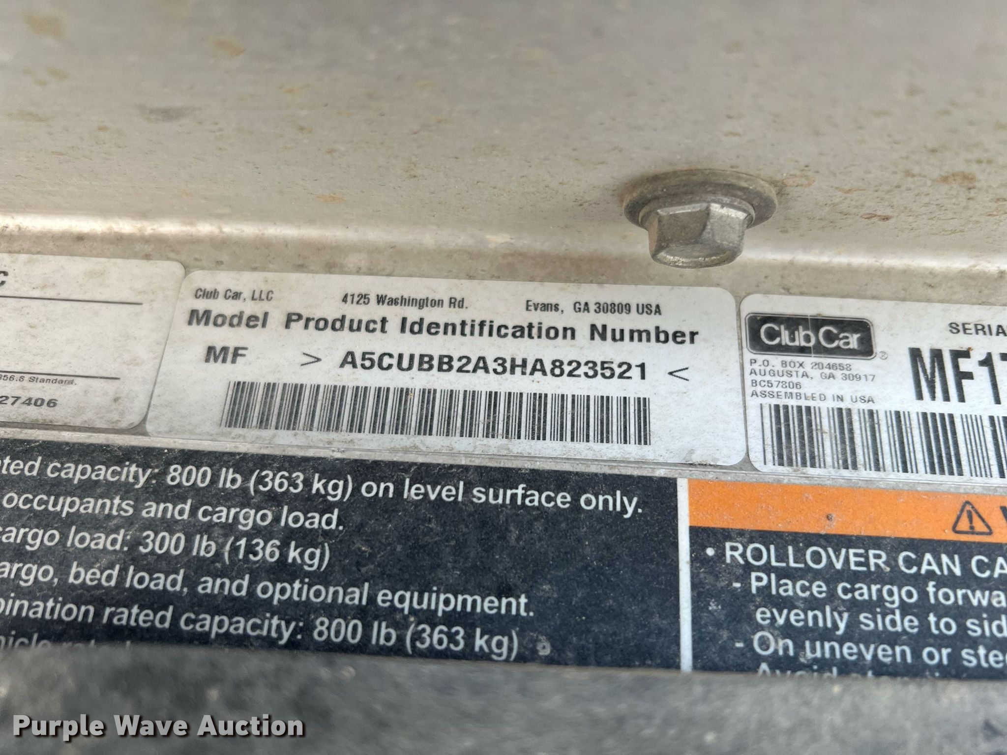 Purple Wave is selling a used Golf Cart in Texas. This item is a Club Car Carryall 300 golf cart with the following: Hours: 678 on meter, Serial: MF1734-823521