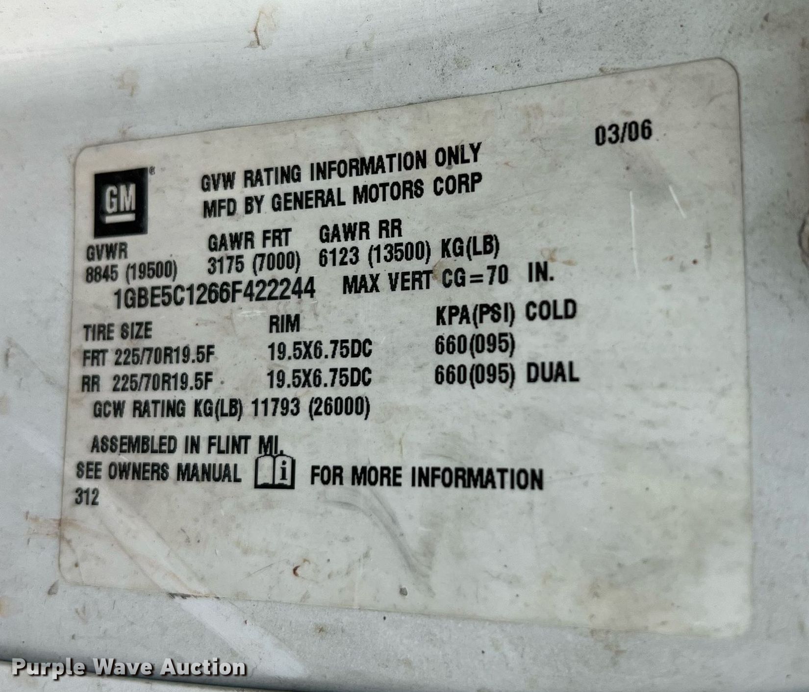 - VIN: 1GBE5C1266F422244