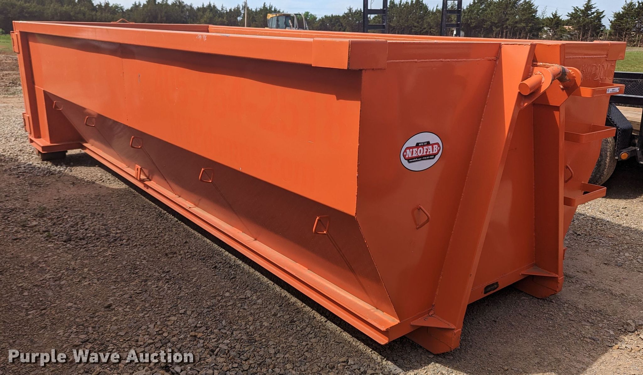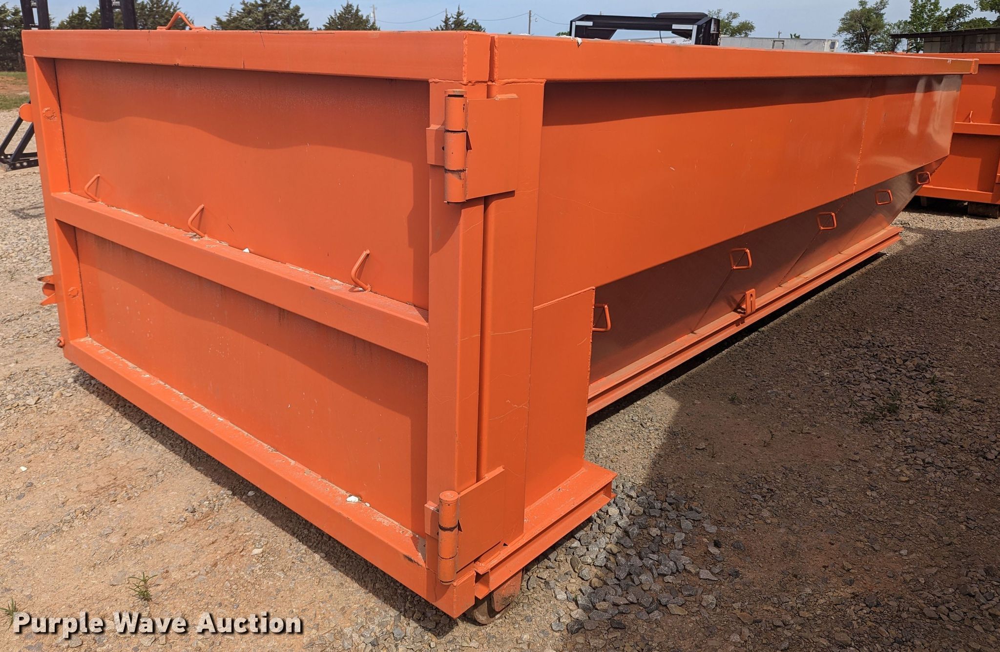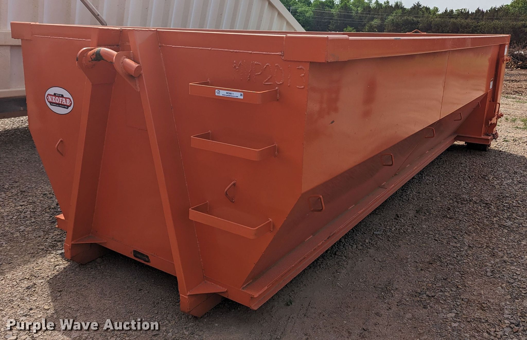 Purple Wave is selling a used Refuse or Compaction Equip. in Oklahoma. This item is a Neofab roll-off dumpster with the following: Dimensions: 18' x 91" x 48", Capacity: 20 cu.yd.