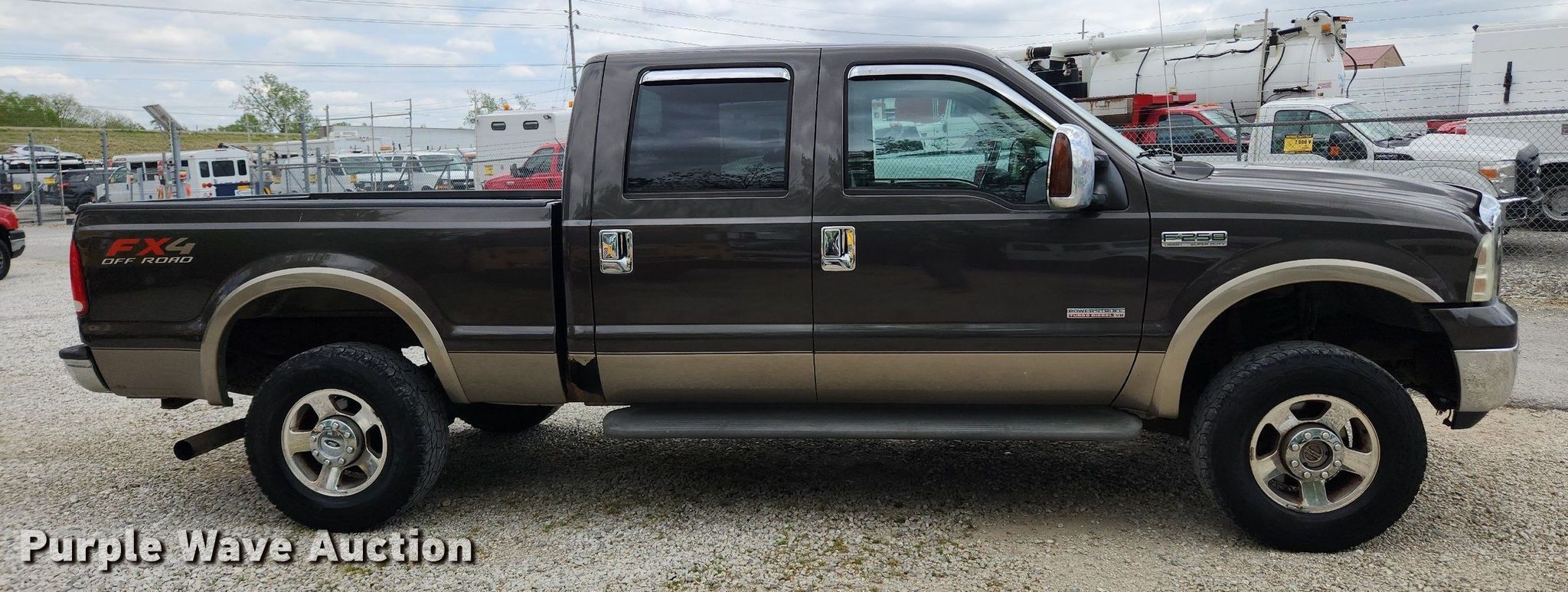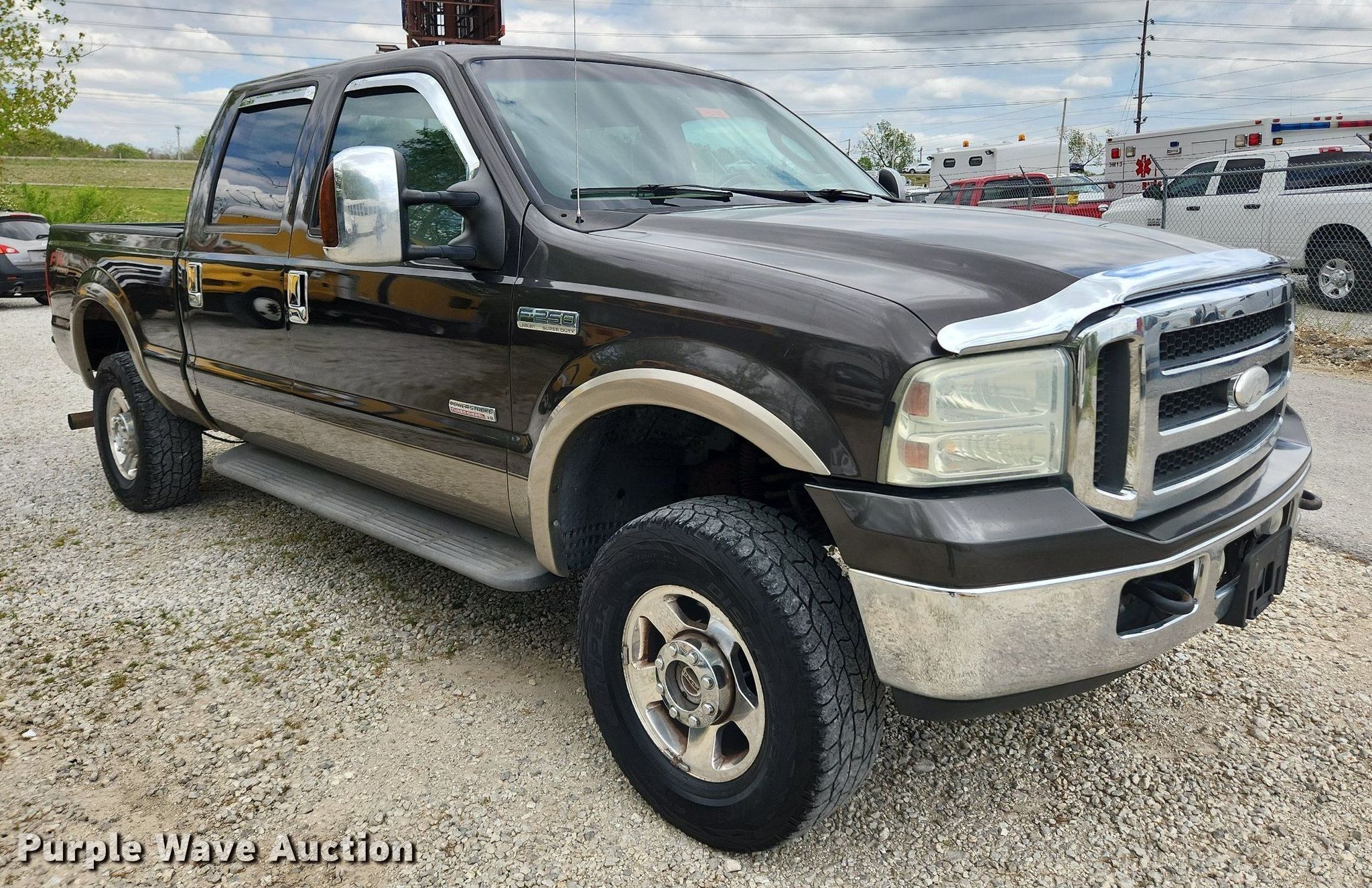 Take a look at this used 2005 Ford F250 Super Duty Lariat Crew Cab pickup truck being sold on June 7th, 2023 in the SOLD! June 07 Vehicles and Equipment Auction made by Ford. Take a look at all of the item information below or take a look at similar auctions for Pickups and Vans.
