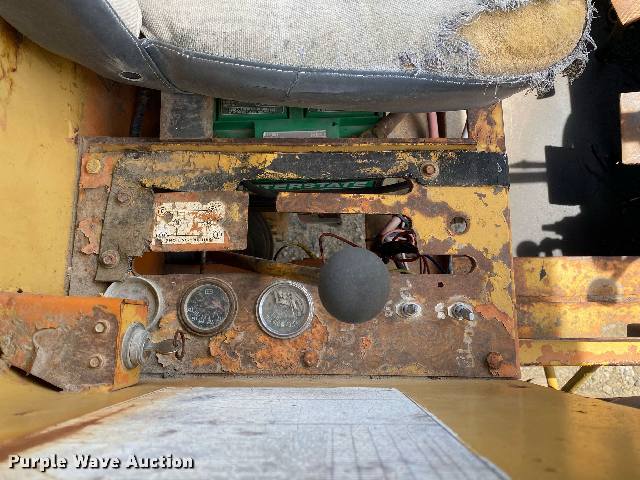 1966 Allis-Chalmers DD rigid frame motor grader. Hours: 104 on meter, Serial: DD3636. Engine Cylinders: 6, Fuel type: Diesel. Transmission Direct-drive, 4F - 1R. Operators station Hydraulic control valves: 6. Features Moldboard: Side shift, Moldboard total length: 10'. Tires Front: 8.25-20, Rear: 8.25-20TG. Notes Possible fuel pump issue, Unknown operating condition. Love Bottling Company. 3200 South 24th Street West. Muskogee, OK 74401