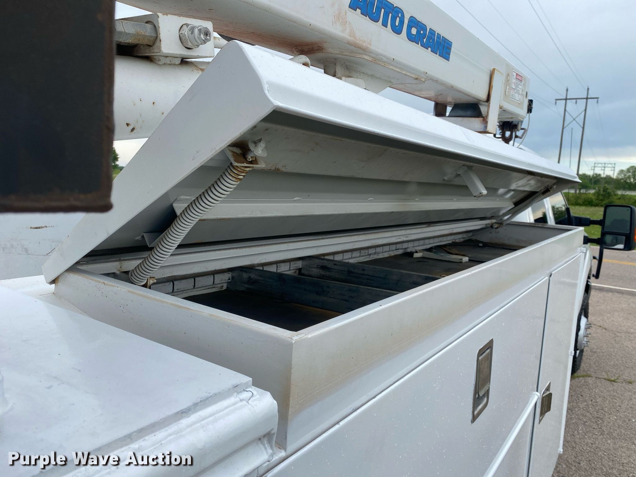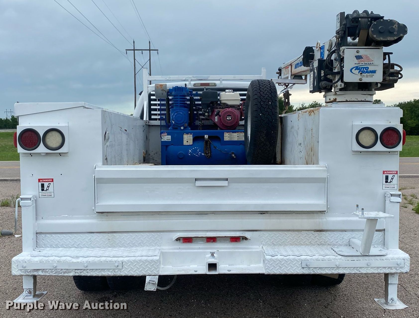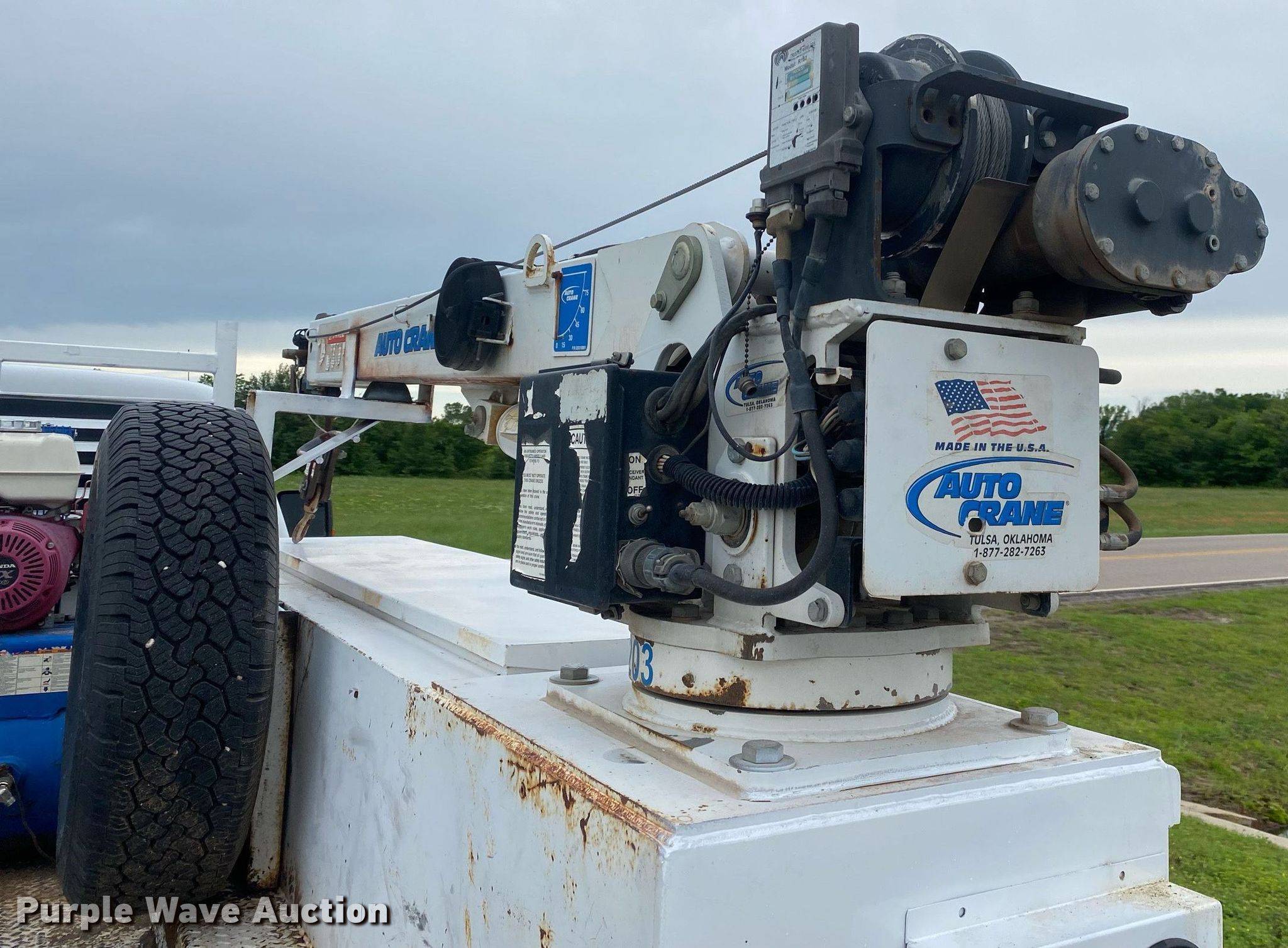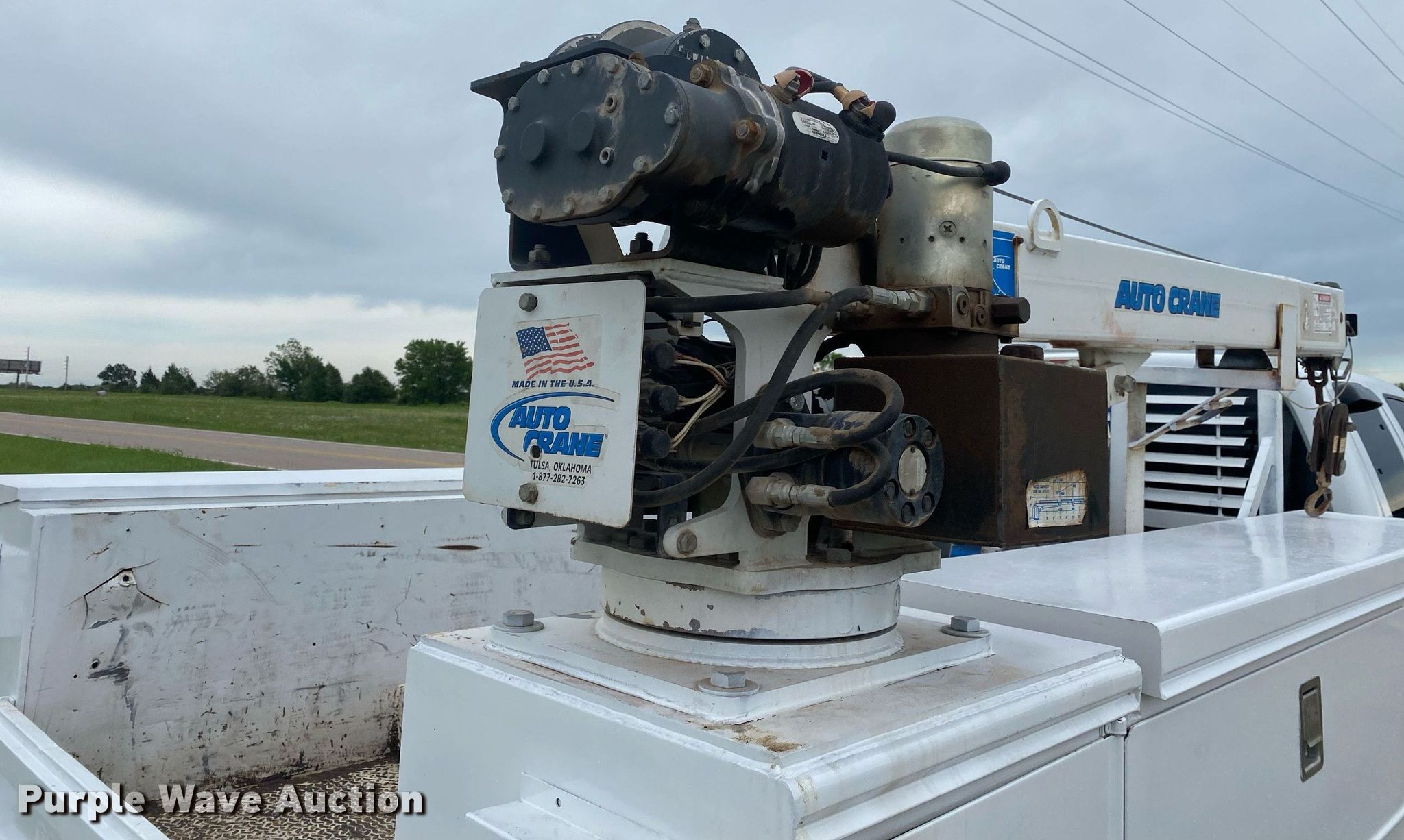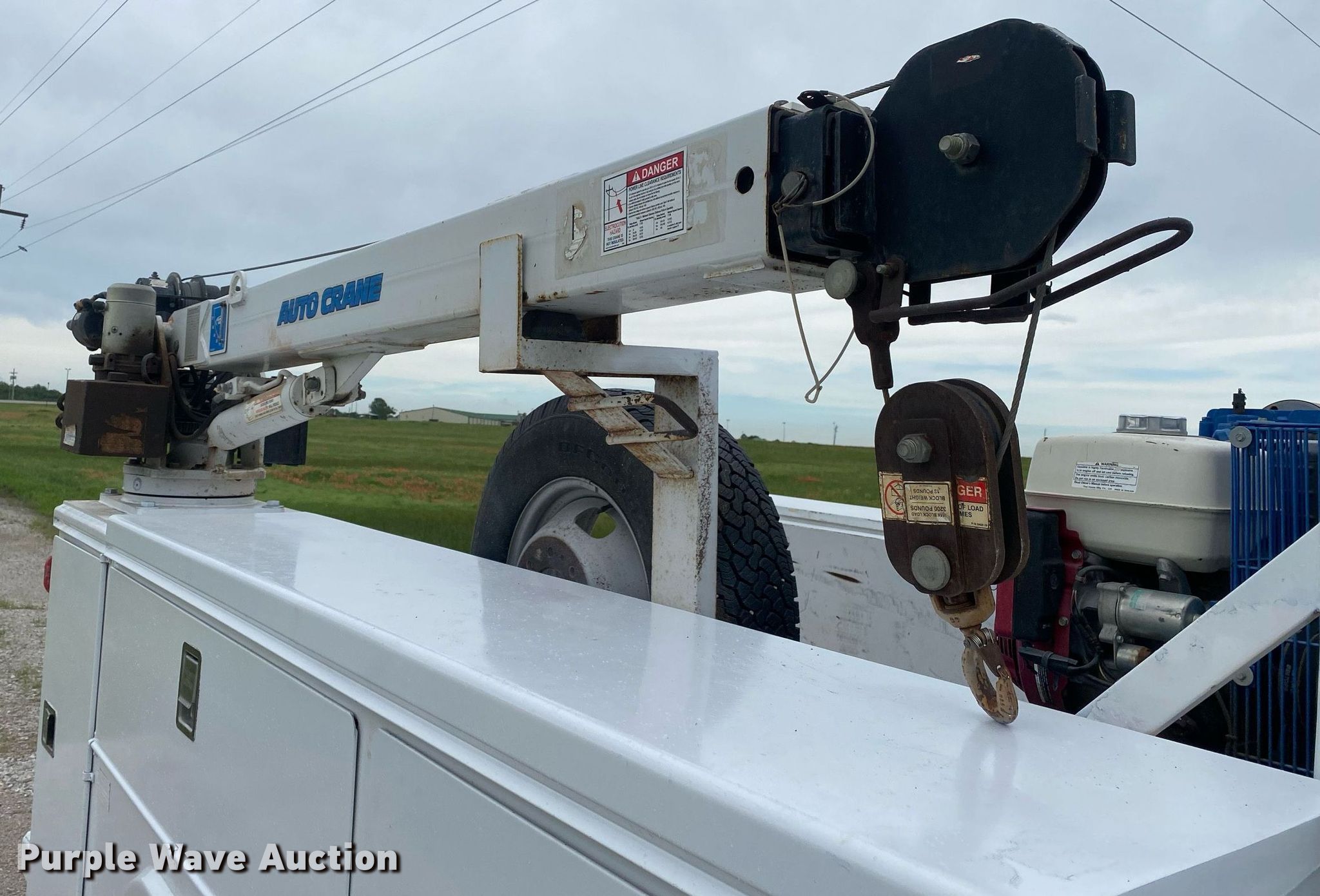 2012 Ford F350 Super Duty SuperCab utility bed pickup truck. Miles: 165,552 on odometer, VIN: 1FD8X3HT1CED15939. Engine Displacement: 6.7L V8 OHV , Cylinders: 8, Fuel type: Diesel. Transmission Automatic, Four wheel drive. Interior AC, Heat, Heated mirrors, Power windows, Power locks, Cruise control. Features Utility bed Rawson-Koenig, 9' L x 96" W, Air compressor Honda GX390, Crane Auto Crane 3203PRX, Maximum boom length: 20', Maximum lift capacity: 3,200 lbs. Tires Size: LT245/75R17. Notes Windshield chipped or cracked. Oklahoma title. 444 Glen D Johnson Road. Okemah, OK 74859