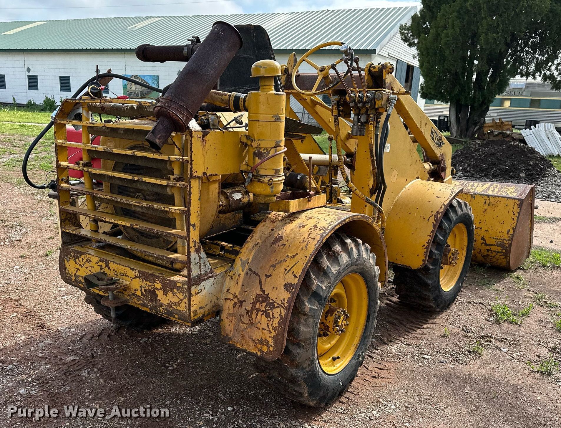 Waldon 500 wheel loader. Serial: 015697. Engine Wisconsin VG4D, Cylinders: 4, Fuel type: Gas. Transmission Hydrostatic. Operators station Bucket controls: Two-lever. Features Auxiliary hydraulic valve, Bucket Width: 60", Cutting edge: Bolt-on. Tires Size: 10-16MS. Notes Dead battery. 3500 Northeast Grand Boulevard. Oklahoma City, OK 73111
