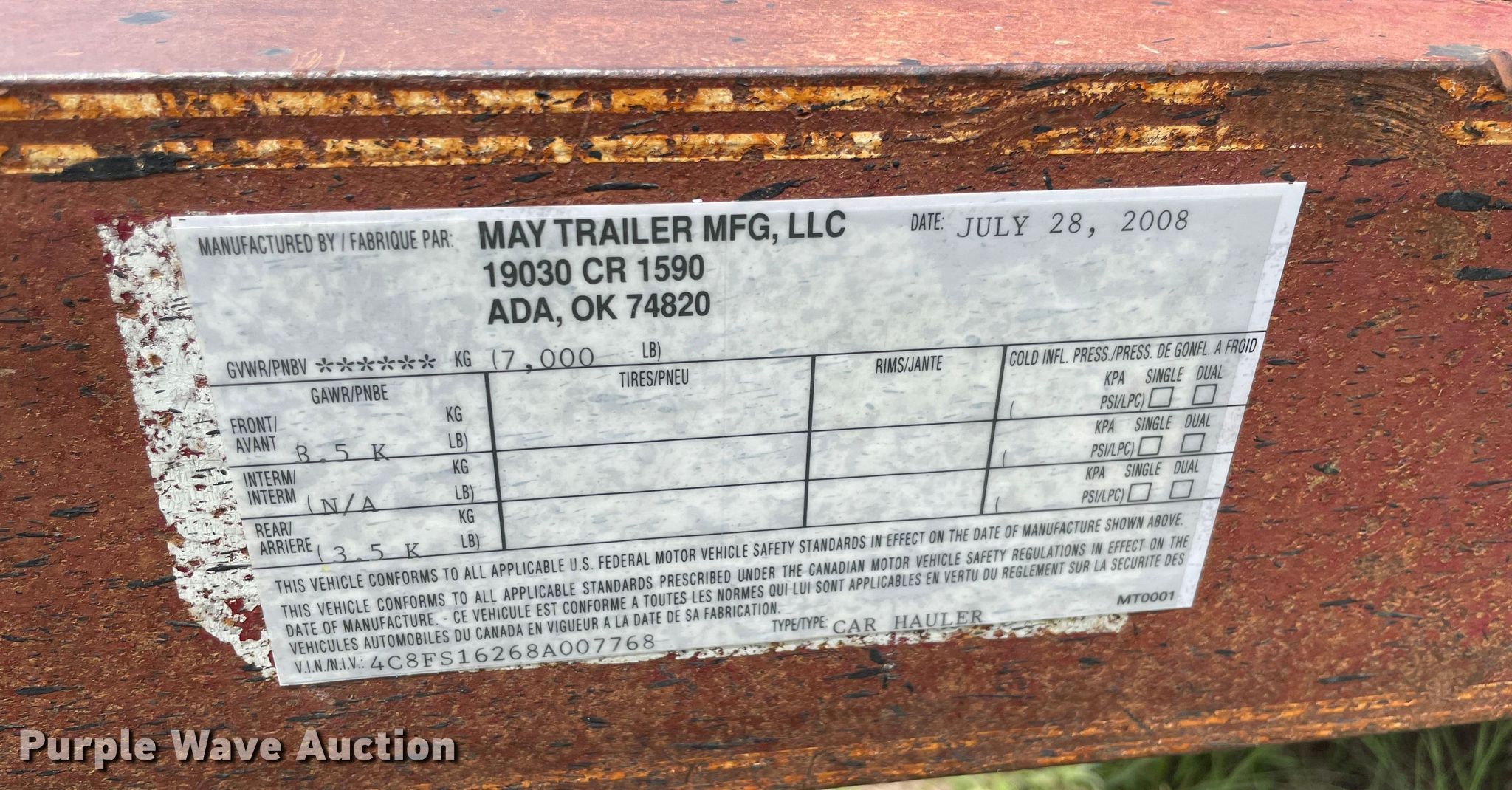 Purple Wave is selling a used Car or Utility Trailer in Oklahoma. This item is a 2008 May Utility trailer with the following: VIN: 4C8FS16268A007768, Unit #: 5034