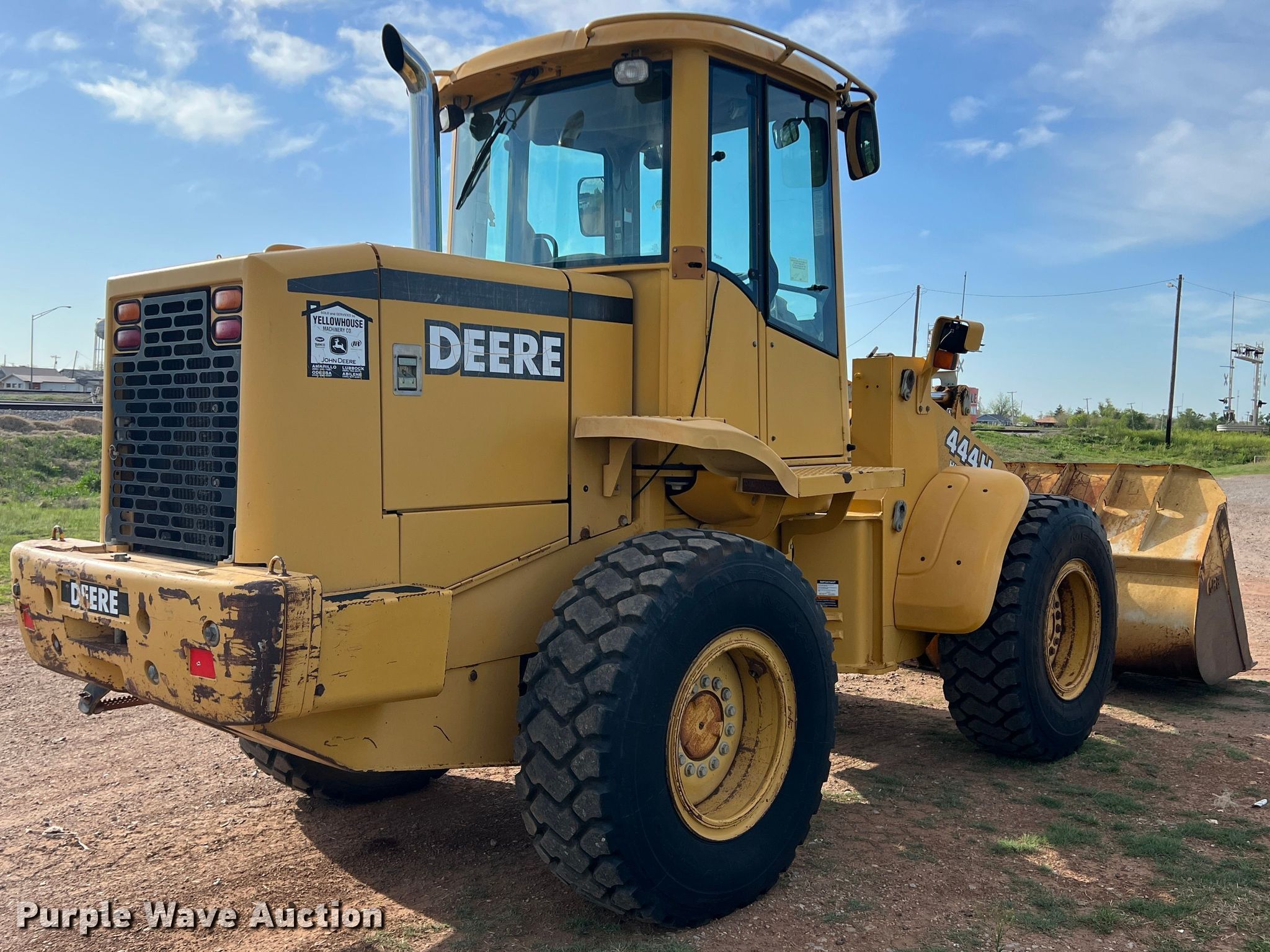 Purple Wave is selling a used Wheel Loader in Oklahoma. This item is a 2001 John Deere 444H high lift wheel loader with the following: Hours: 7,155 on meter, Miles or hours may vary, unit still in use, Serial: DW444HX579348