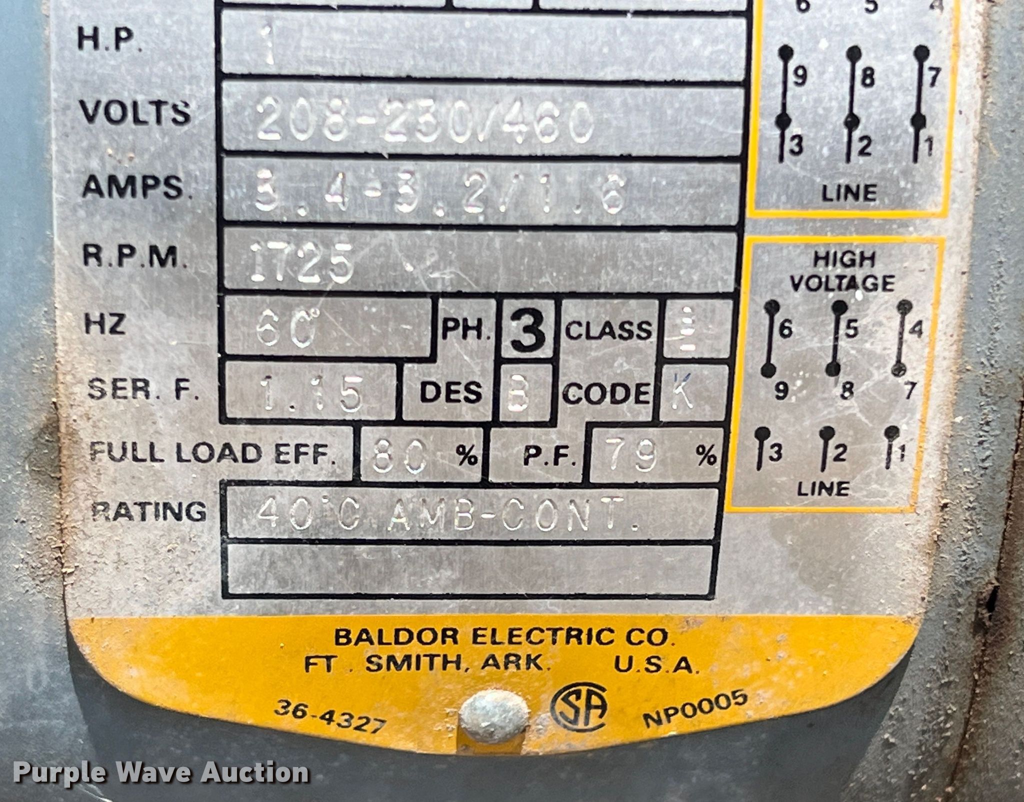 Johnson 210 air compressor. Serial: 245802. Electric Motor Baldor , HP: 1, Volts: 208-230/460, Phase: Three. Robuck Petroleum, LLC. 261 East Industrial Boulevard. Graham, TX 76450