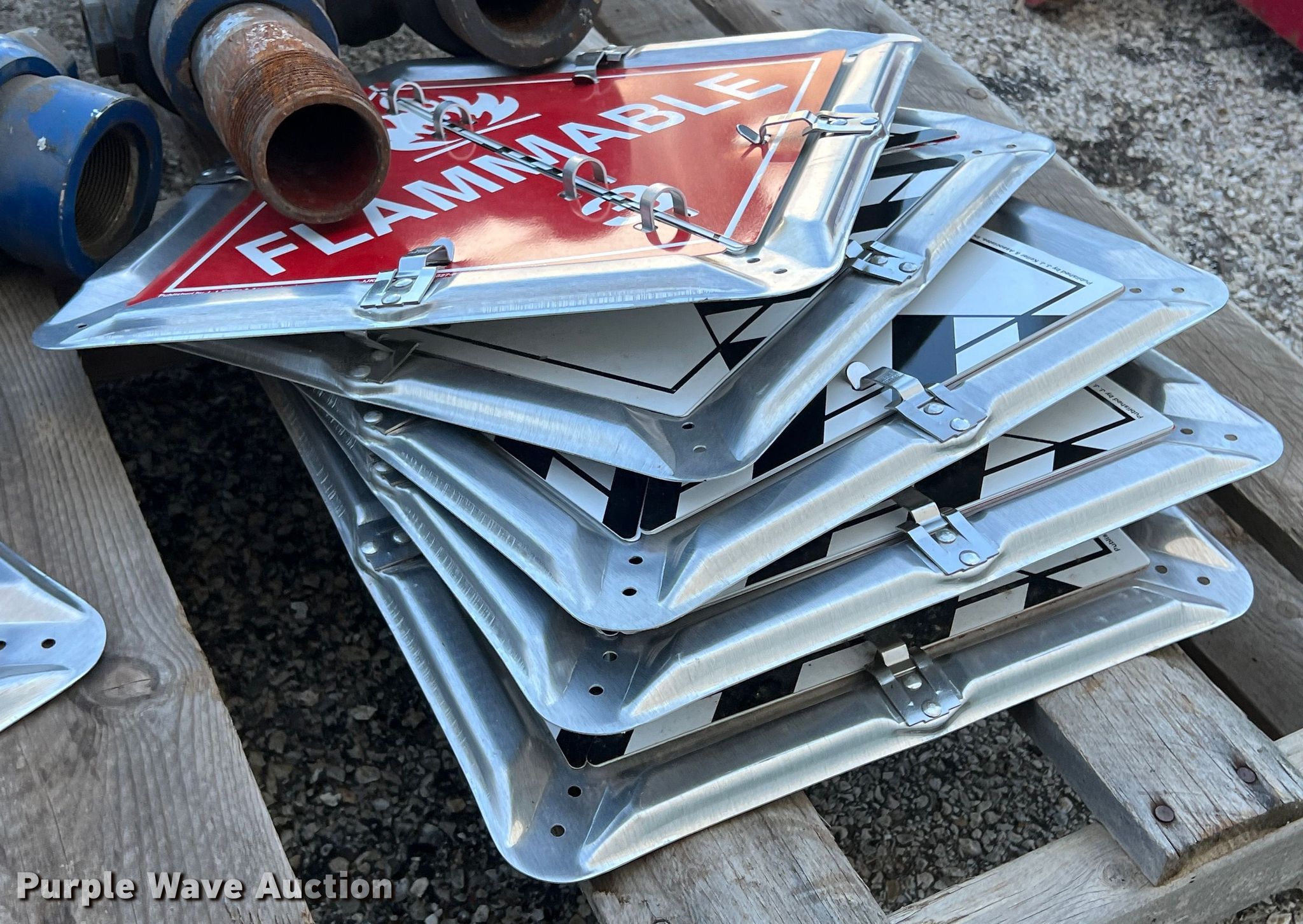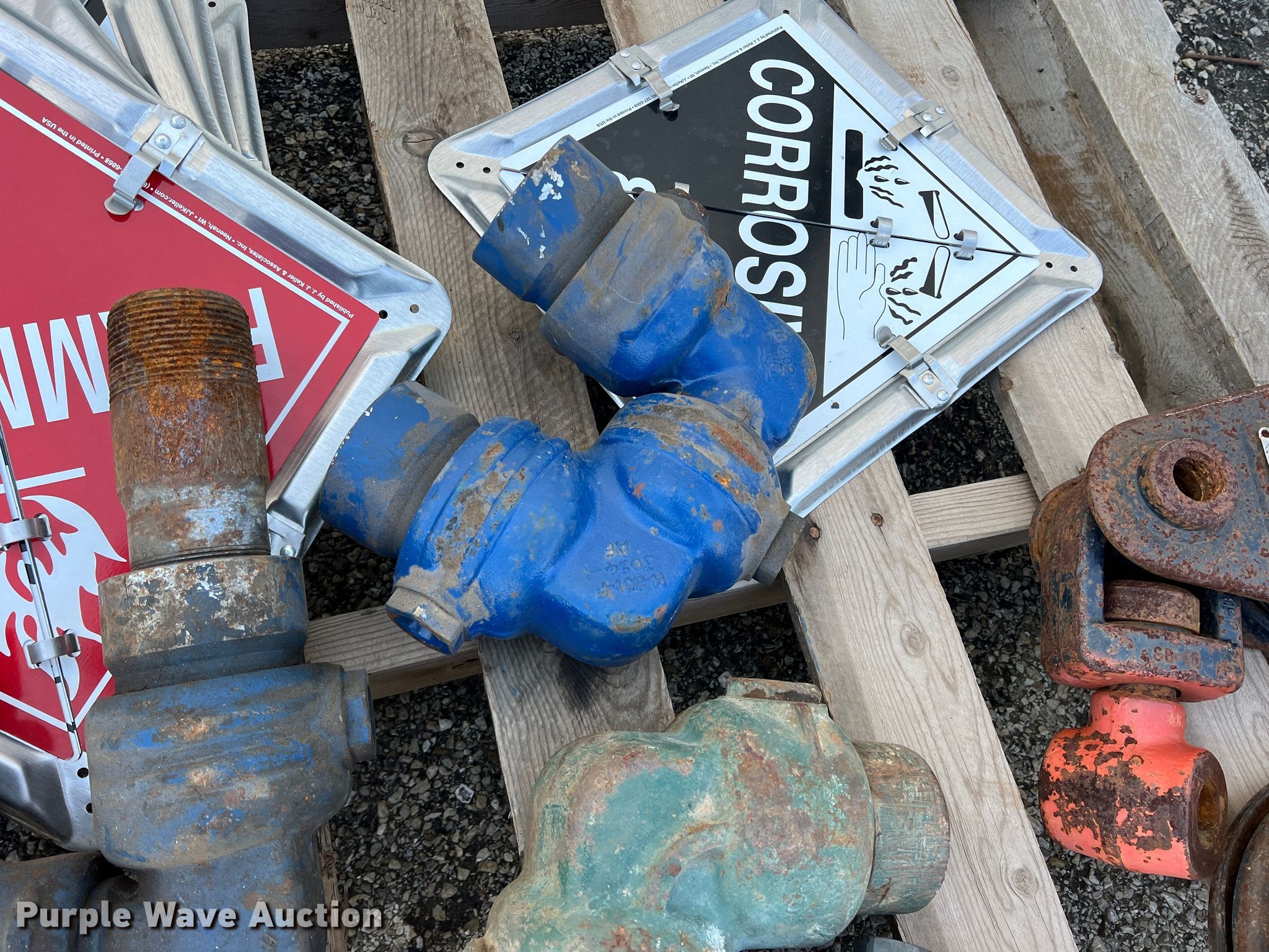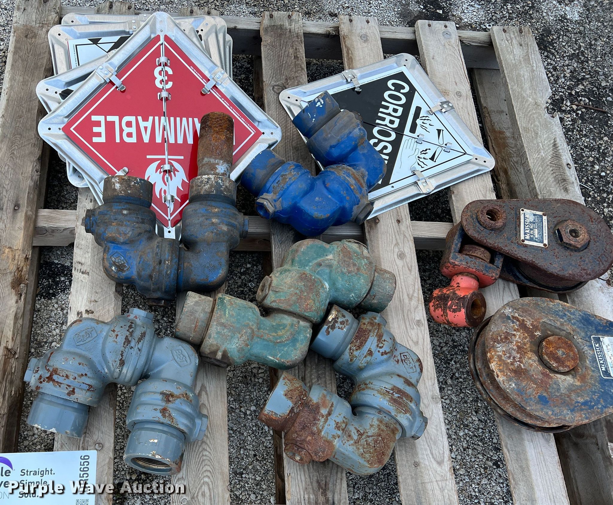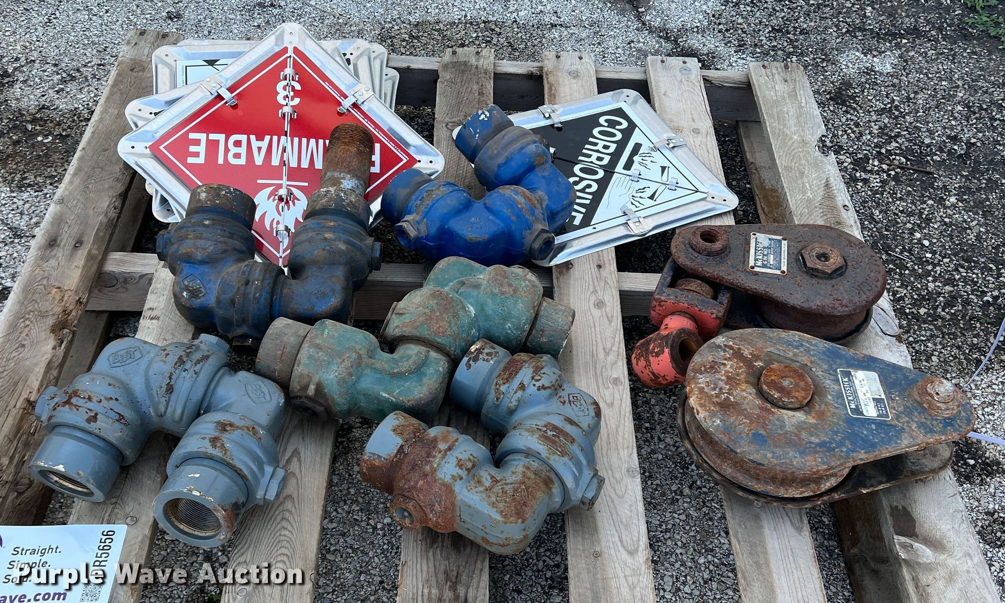 Purple Wave is selling a used Tools in Texas. This item is a Tools with the following: (5) swivel joints, (2) snatch blocks, 6" 12 ton capacity, 8" 15 ton capacity, (6) hazardous material placards