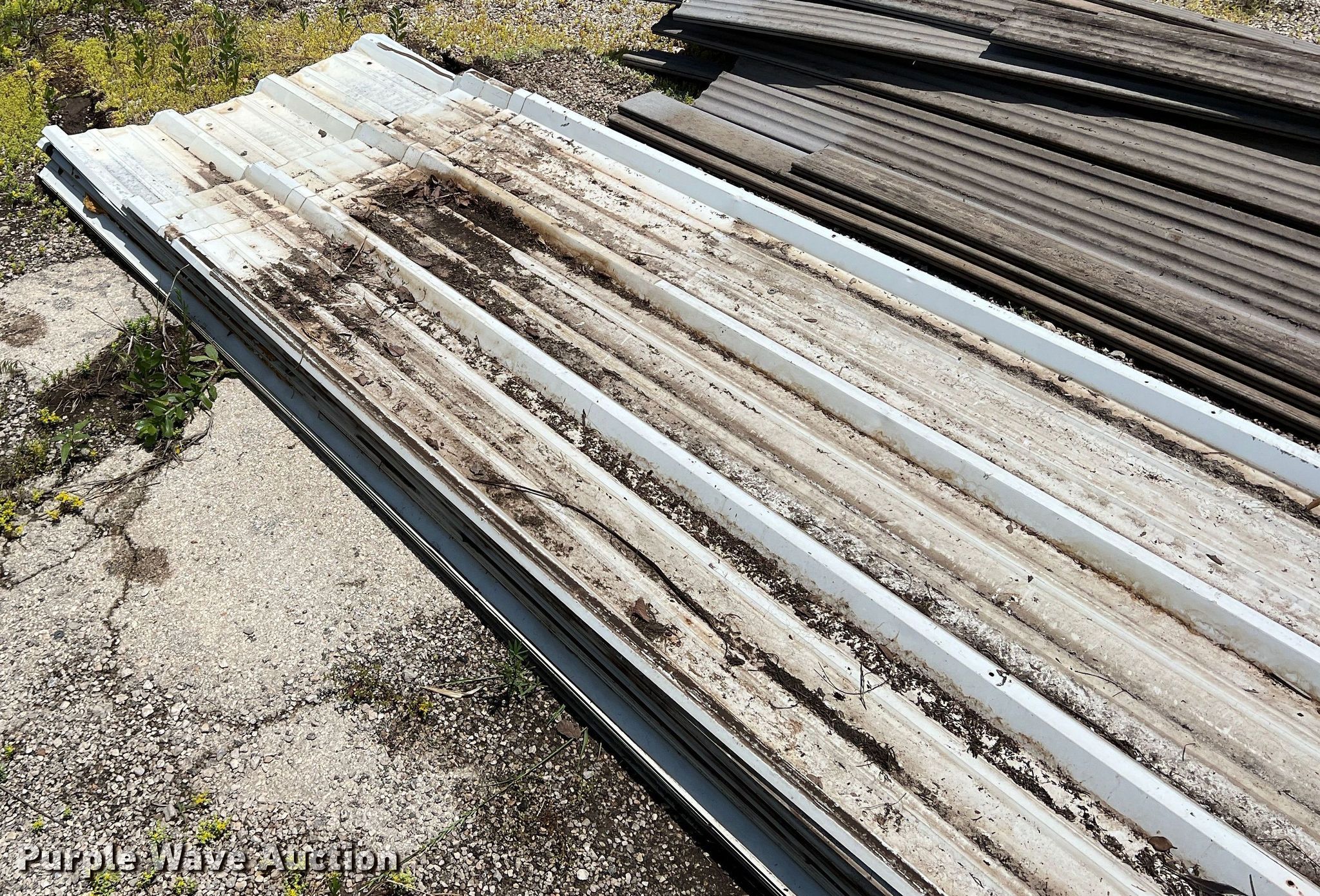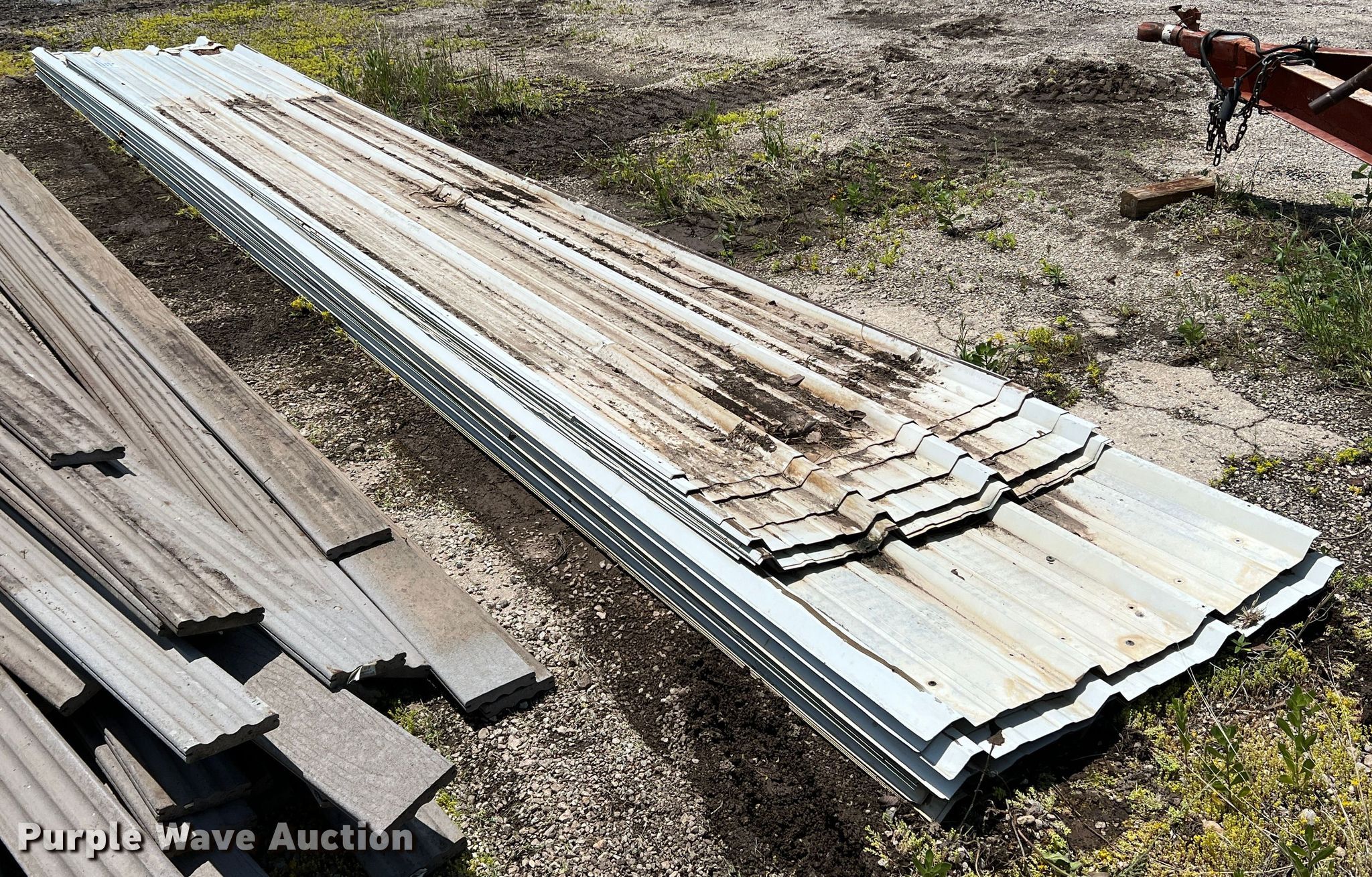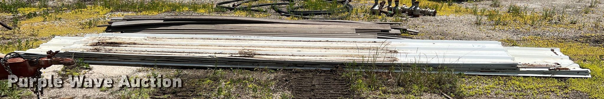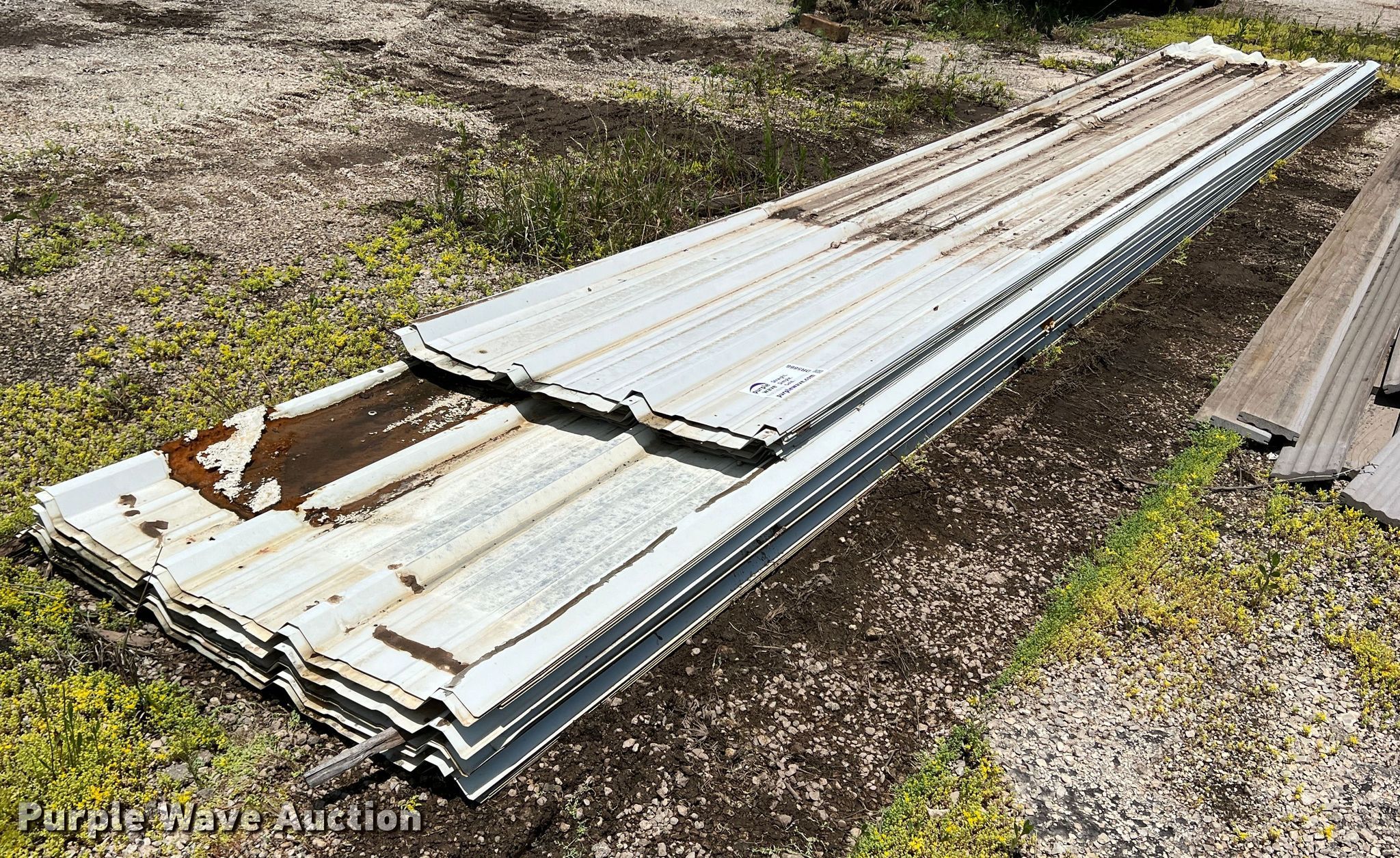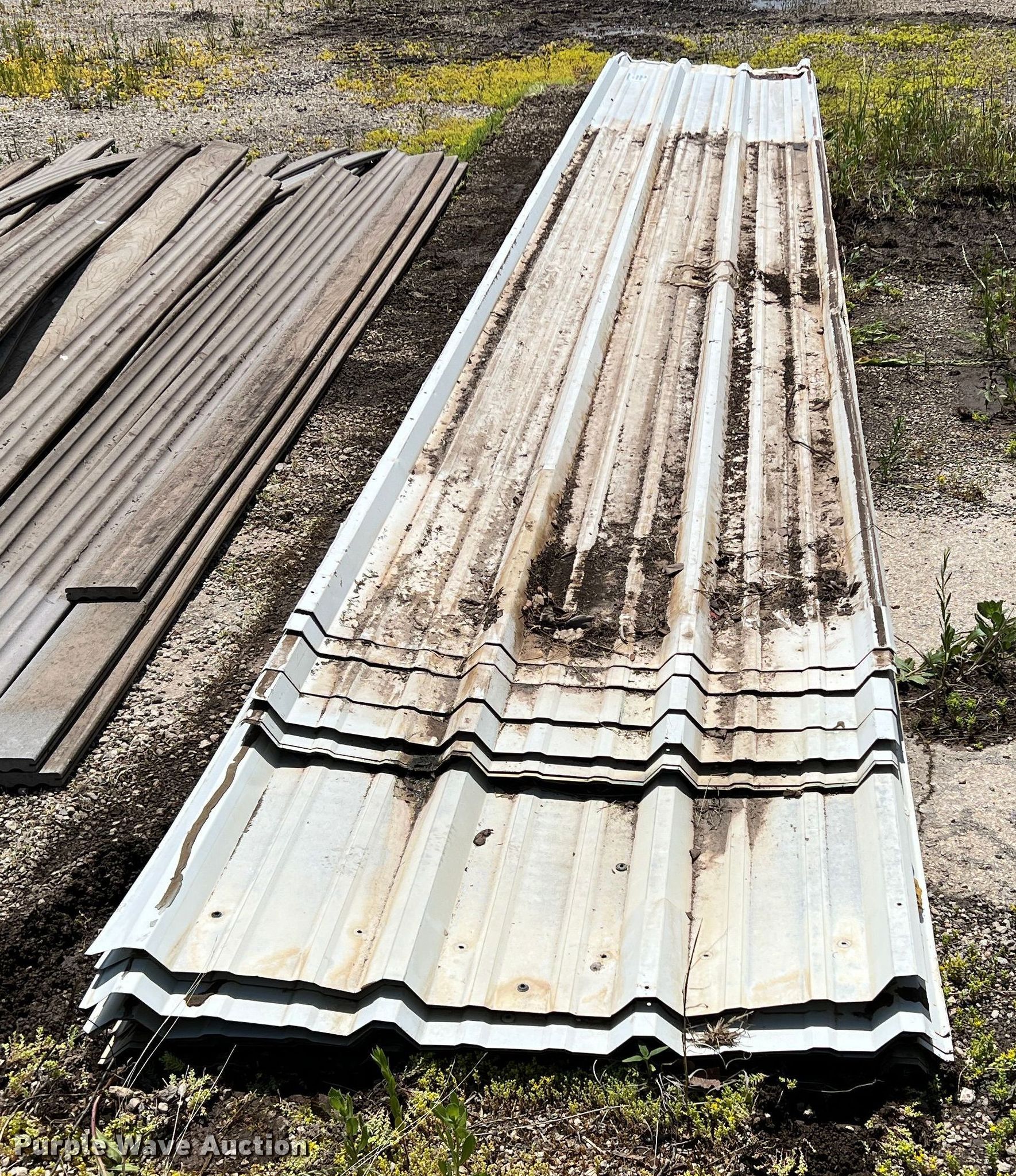 Purple Wave is selling a used Building Materials in Texas. This item is a Approximately 35 sheets of metal siding/roofing with the following: Approx. 15, Length: 19', Approx. 20, Length: 24'