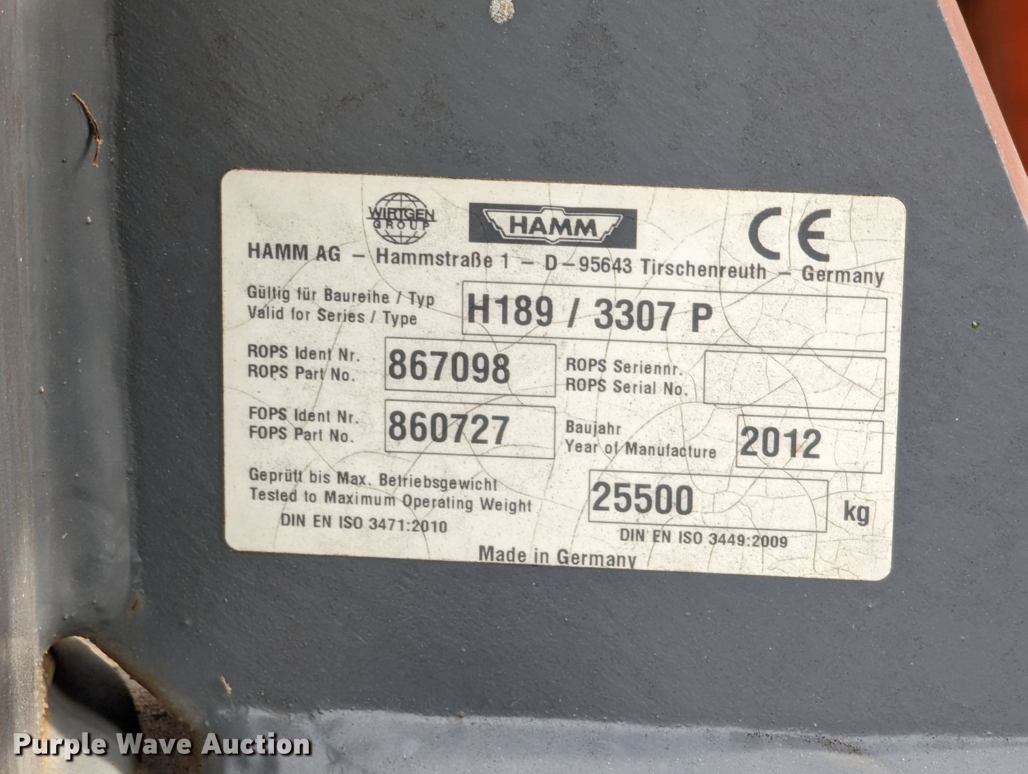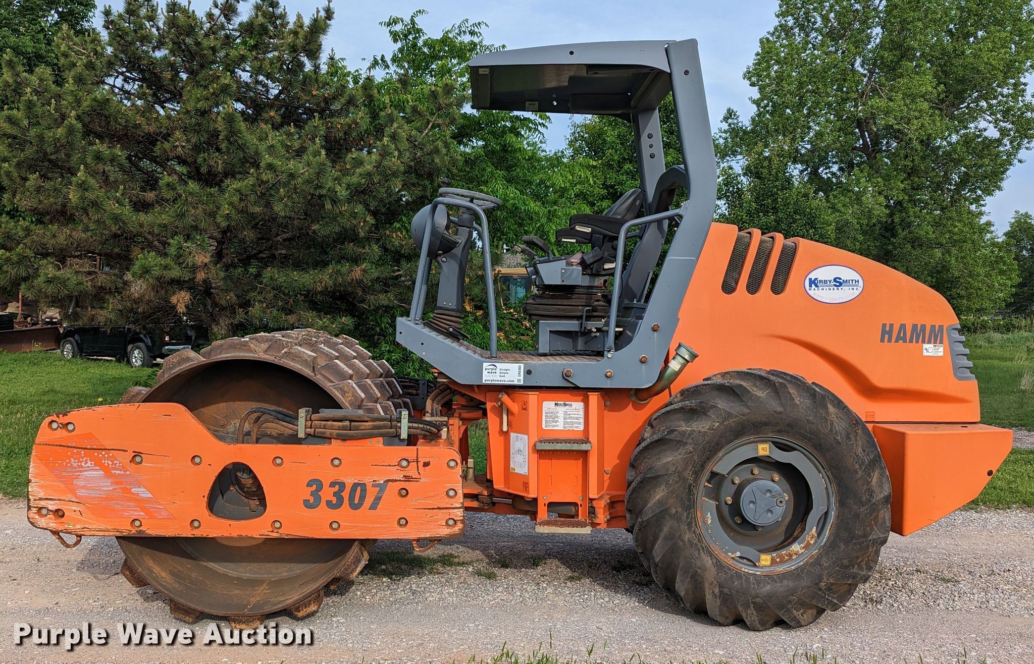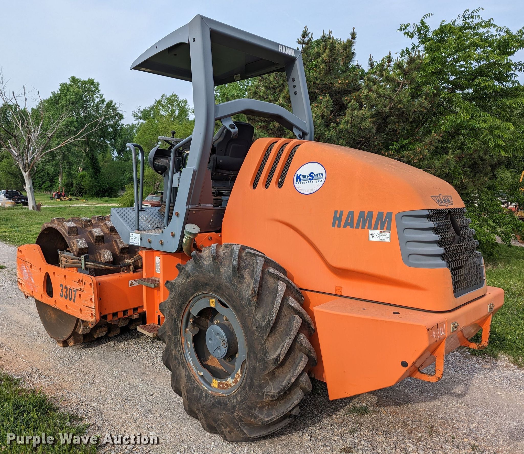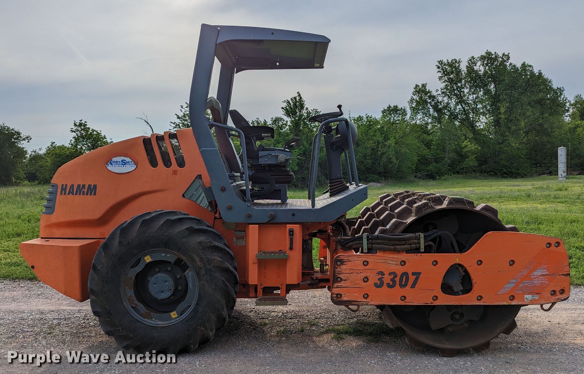 Purple Wave is selling a used Single Drum Roller Compactor in Oklahoma. This item is a 2012 Hamm 3307P single drum vibratory roller with the following: Hours: 805 on meter, Serial: H1890526