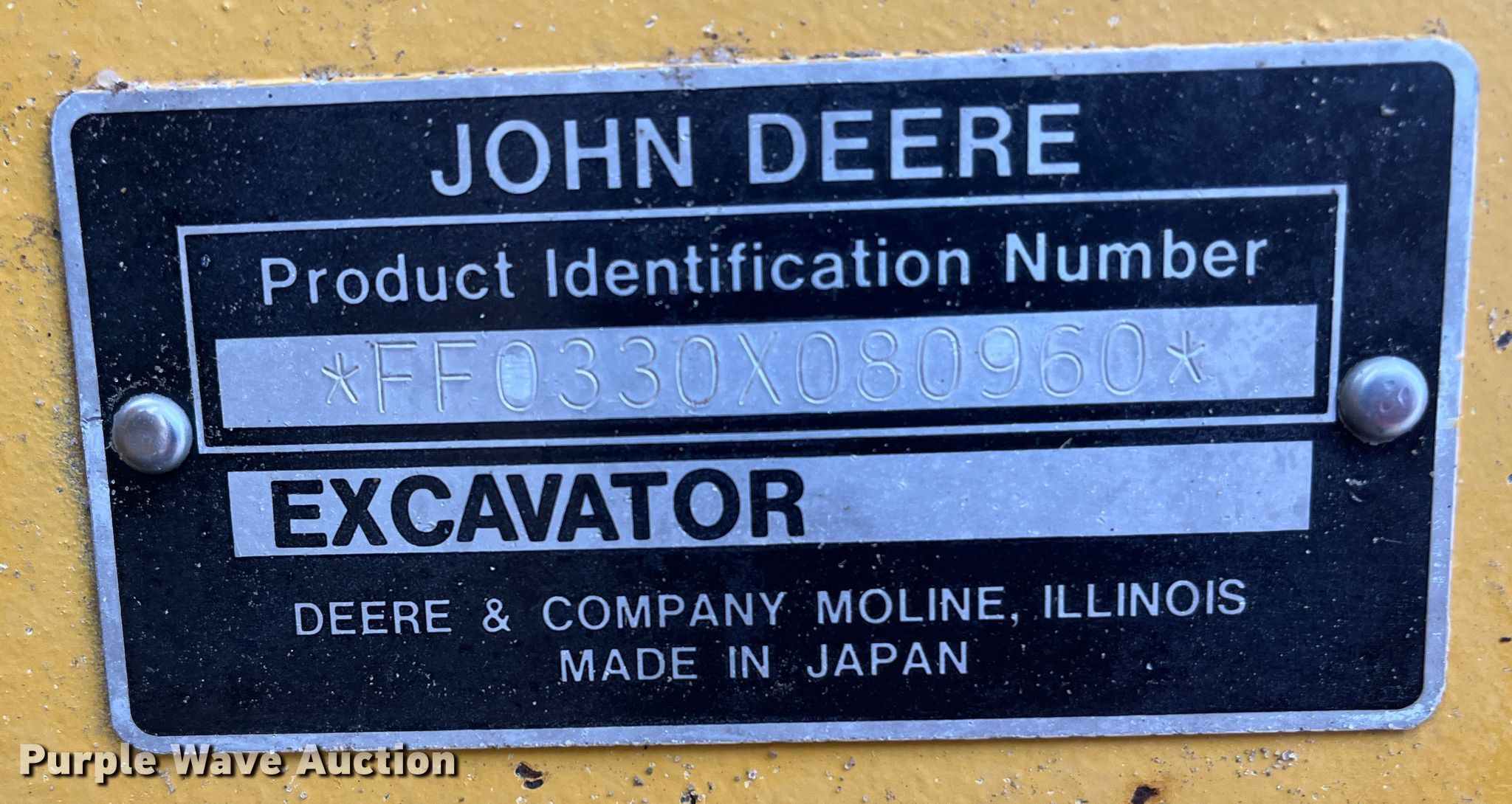 Purple Wave is selling a used Hydraulic Excavator in Kansas. This item is a 2000 John Deere 330LC excavator with the following: Hours: 13,123 on meter, Actual hours unknown, Serial: FF0330X080960