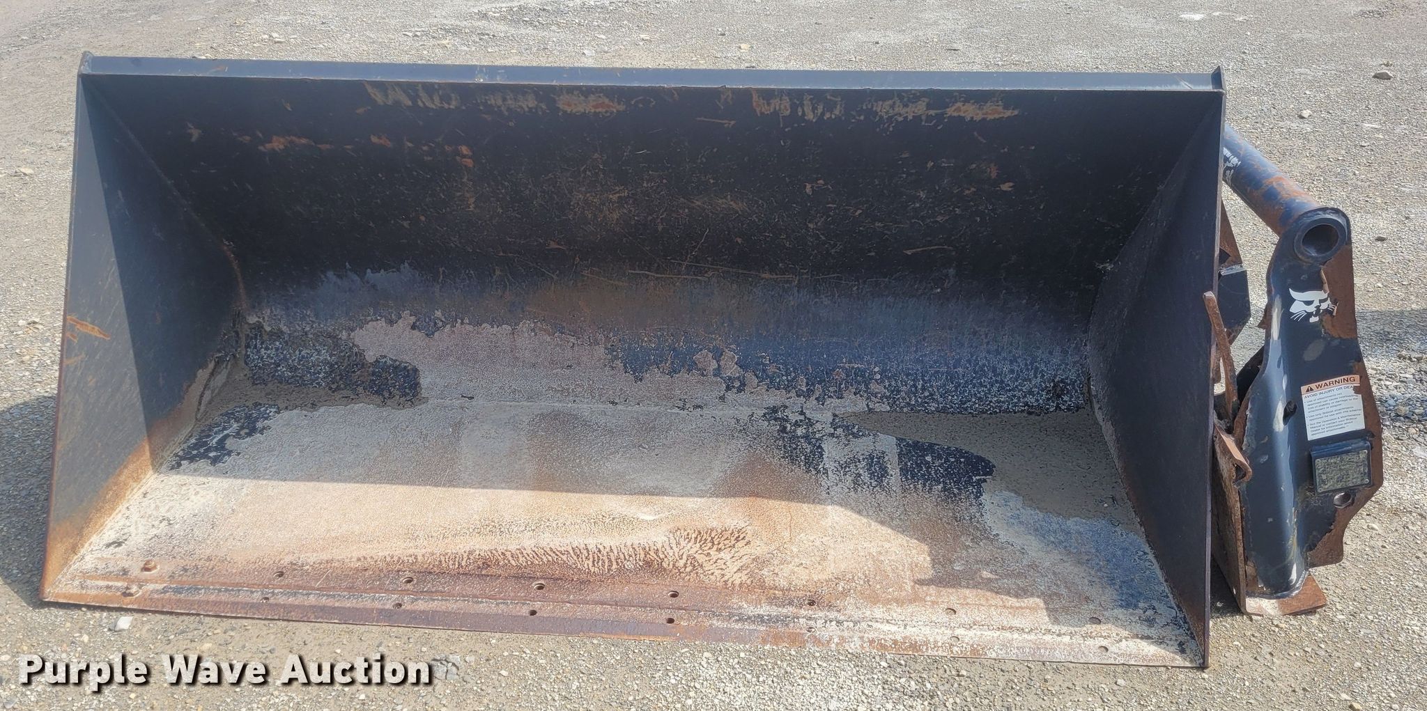 Purple Wave is selling a used Skid Steer Attach. in Kansas. This item is a 90" W skid steer bucket with the following: Telehandler to skid steer adapter, Removed from Bobcat V518