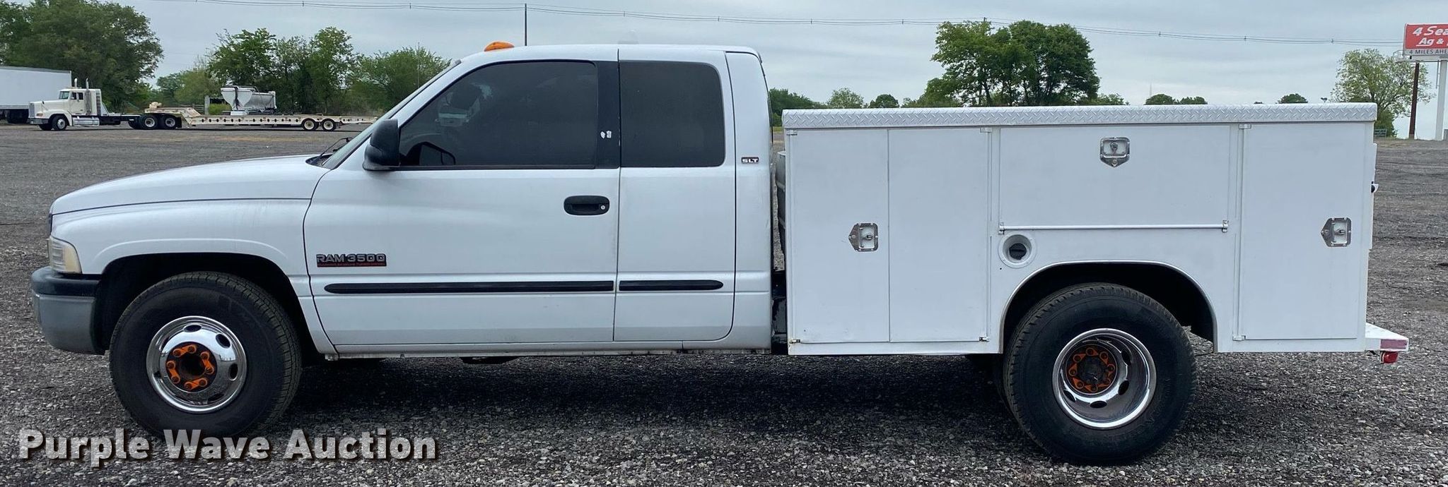 This 2001 Dodge Ram 3500 Quad Cab utility bed pickup truck will sell to the highest bidder regardless of price.