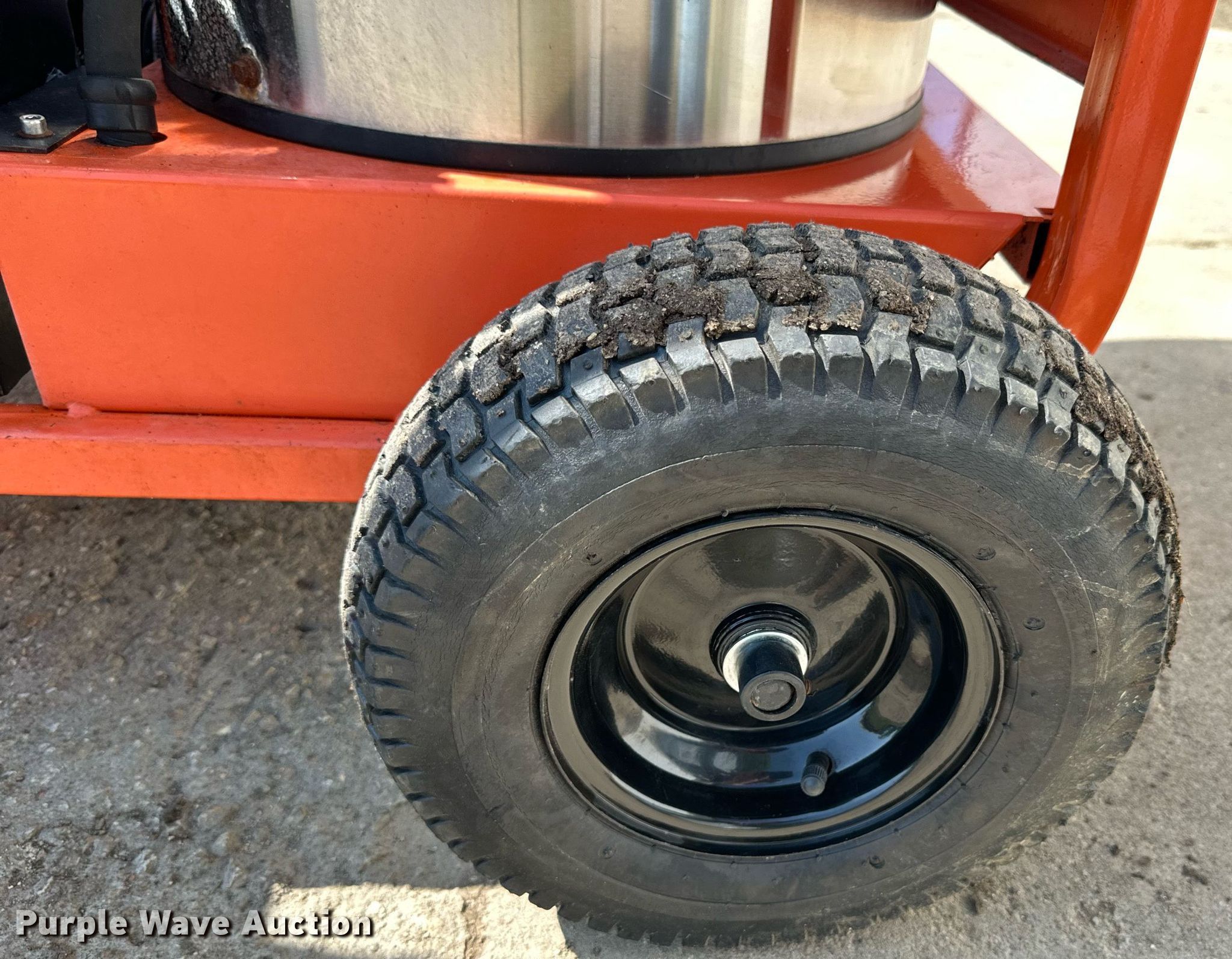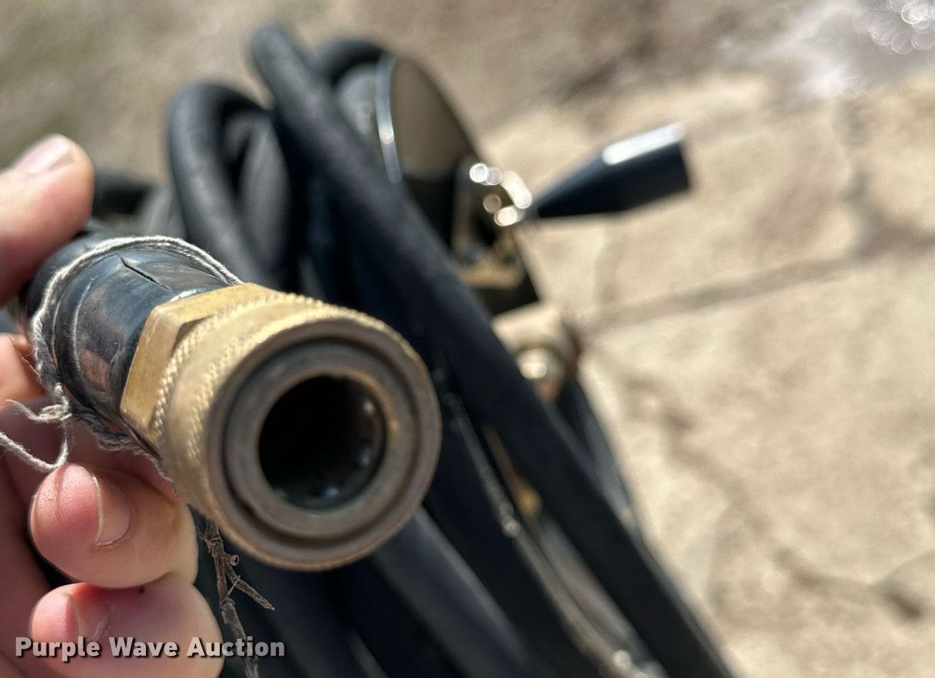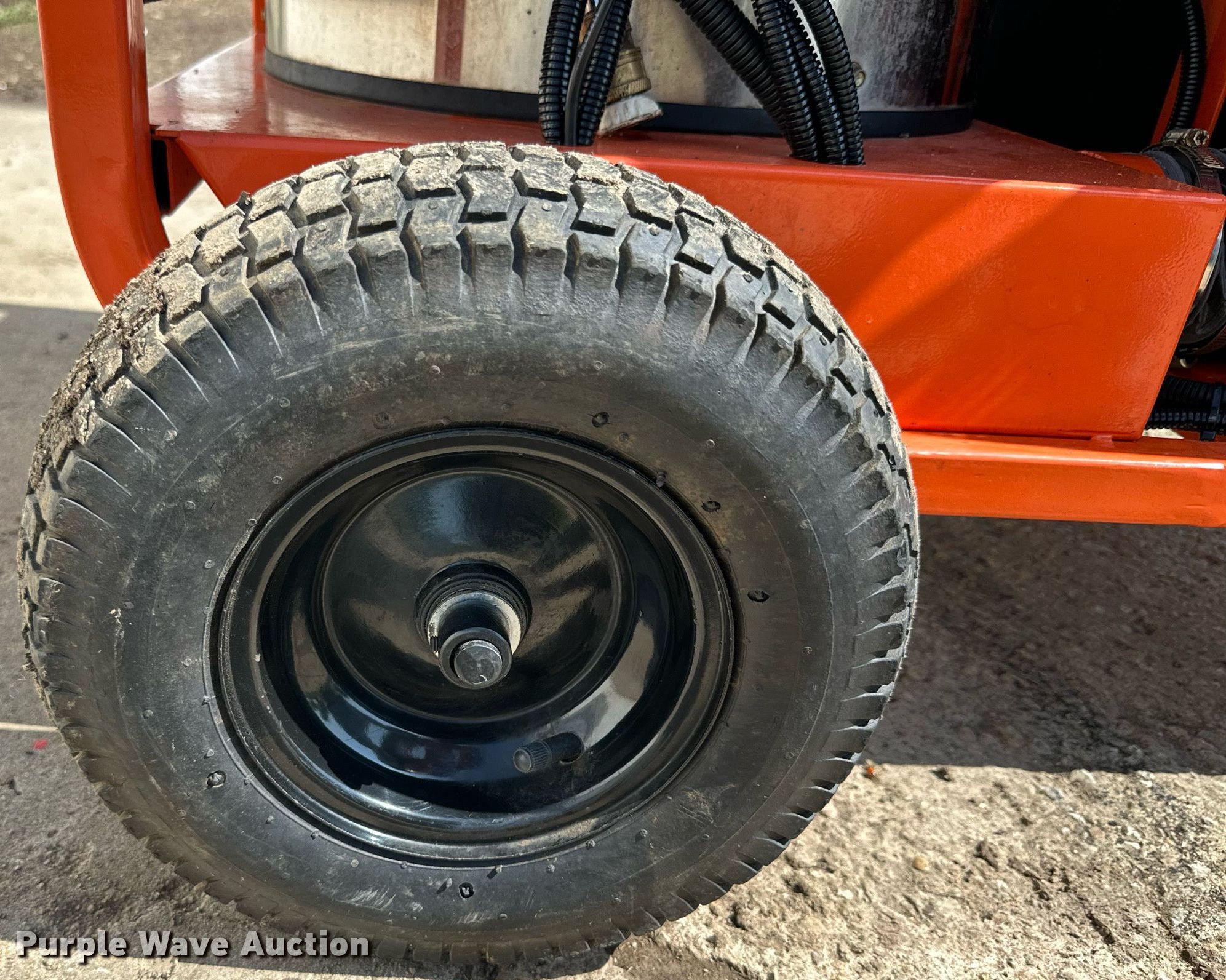 TMG HW41R pressure washer. Hours: Unknown, Serial: 32182108034. Engine Kohler CH440, Serial: 5110913548, Displacement: 429 cc, Cylinders: 1, Fuel type: Gas, HP: 14. Features 100' hose. Tires Size: 13x5.00-6. Notes Unknown operating condition of burner. Fleet Serve, LLC. Manhattan, KS 66502