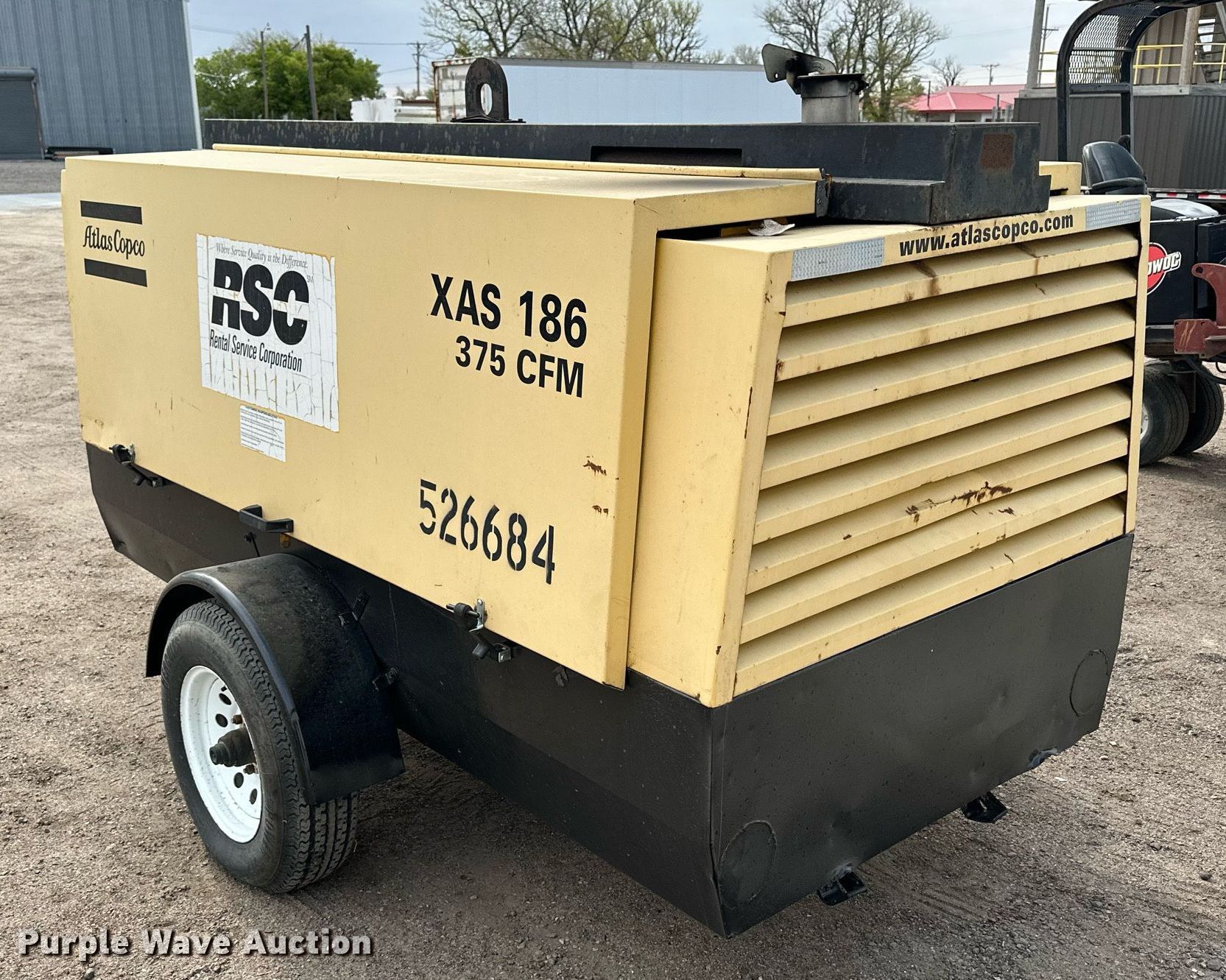 Purple Wave is selling a used Air Compressor in Kansas. This item is a Atlas Copco XAS 186 air compressor with the following: Hours: 2,209 on meter, Serial: 4500B12134H009844