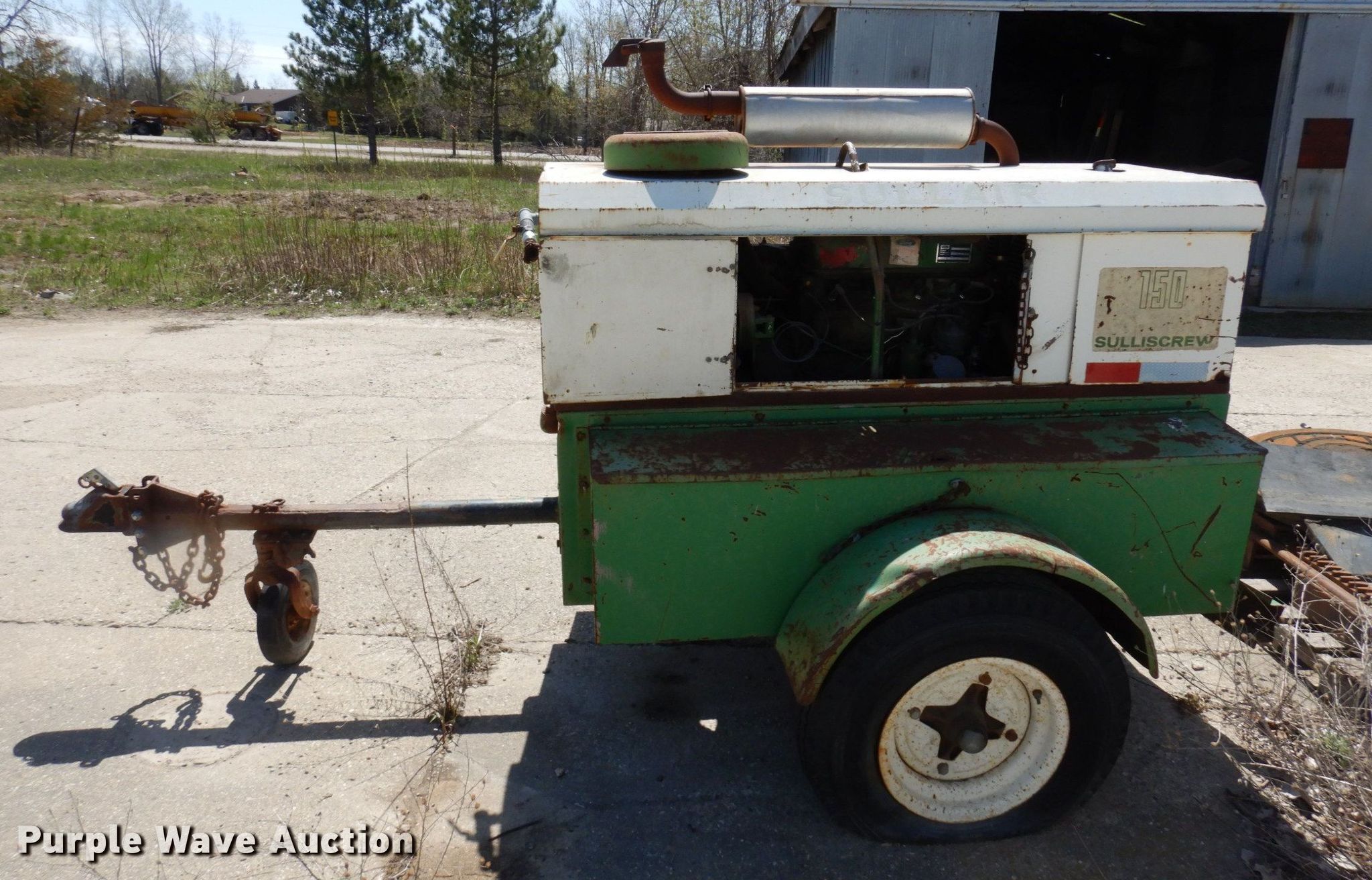 Sullair 150GP air compressor. Hours: 259 on meter, Serial: 25667. Engine Ford 1720F-6005-0, Serial: 02360, Displacement: 172ci, Cylinders: 4, Fuel type: Gas. Trailer Ball hitch size: 2 5/16", Suspension: Spring, Tire size: 17.00-15LT. Duininck Concrete. 21350 Highway 23 NE. New London, MN 56273