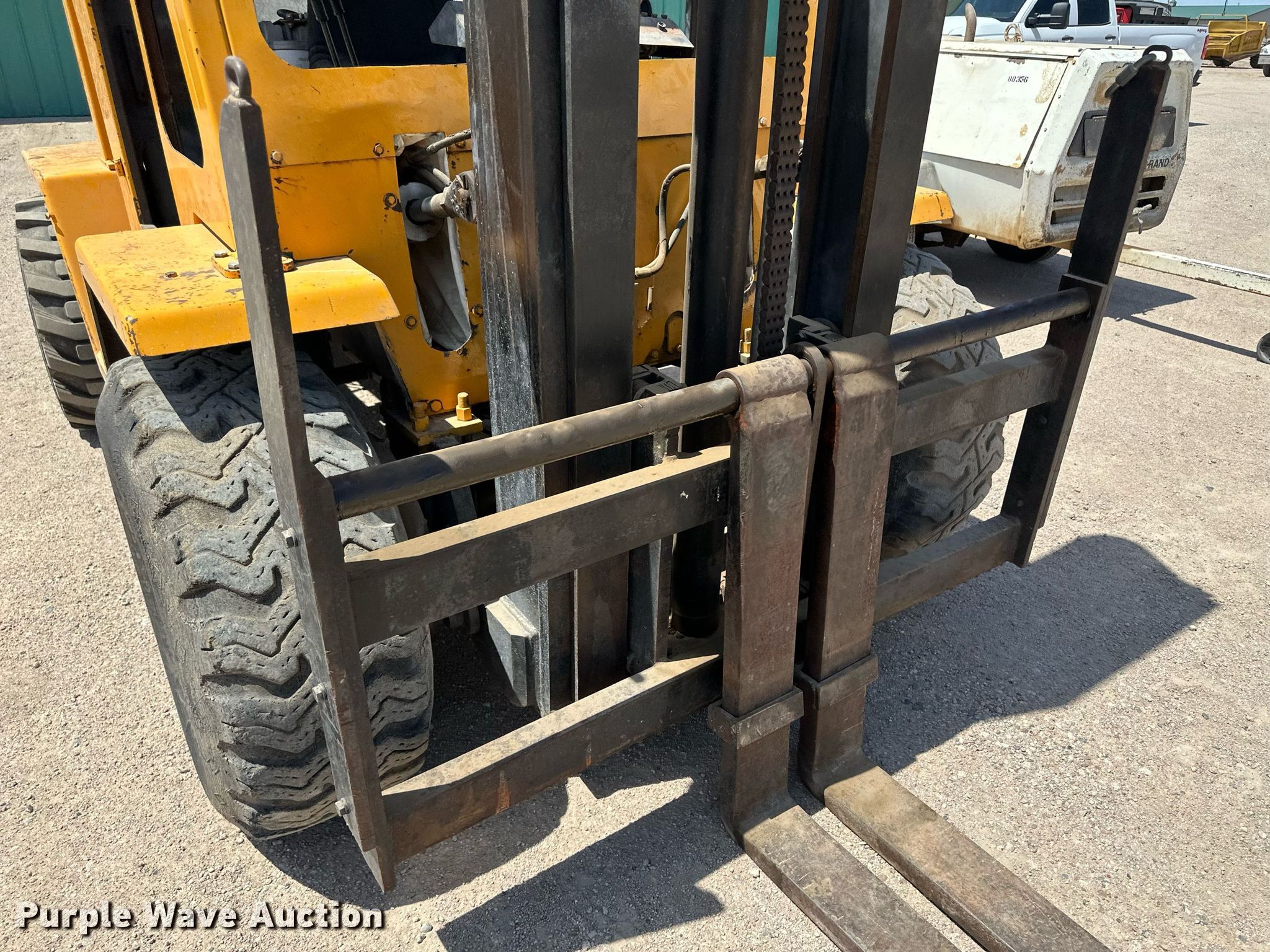 Liftall L60G forklift. Serial: 805549. Engine Cylinders: 6, Fuel type: Gas. Transmission Powershift, 4F - 4R. Operators station Canopy. Features Maximum lift capacity: 6,000 lbs, Maximum lift height: 144", Mast stages: 2, Mast tilt, Fork length: 47". Tires Front: 14-17.5, Rear: 12x16.5. Underground Specialists, Inc.. 520 Airlinks Dr. Garden City, KS 67846