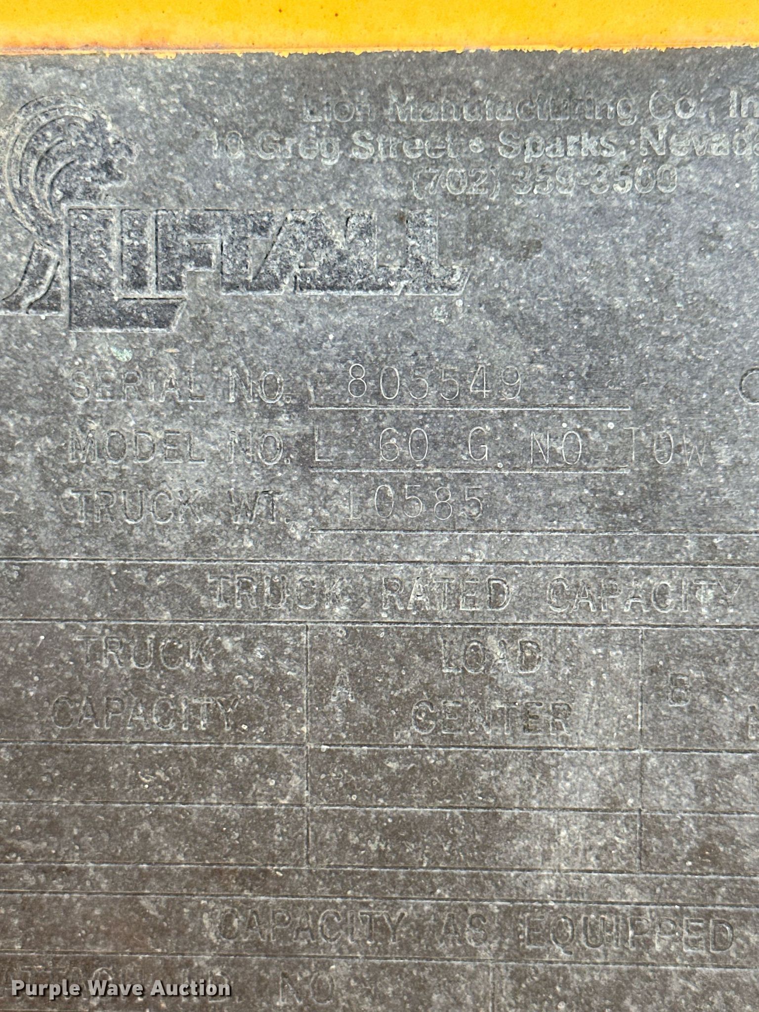 Purple Wave is selling a used Cushion Tire or Pneumatic Forklift in Kansas. This item is a Liftall L60G forklift with the following: Serial: 805549
