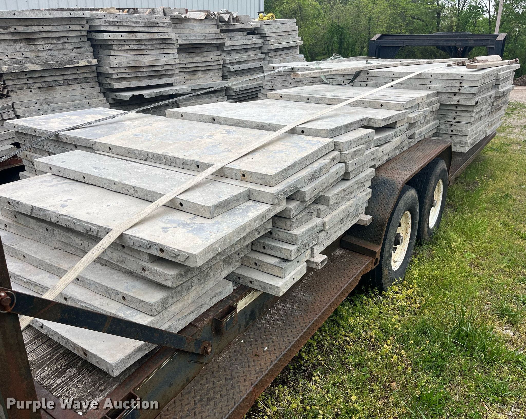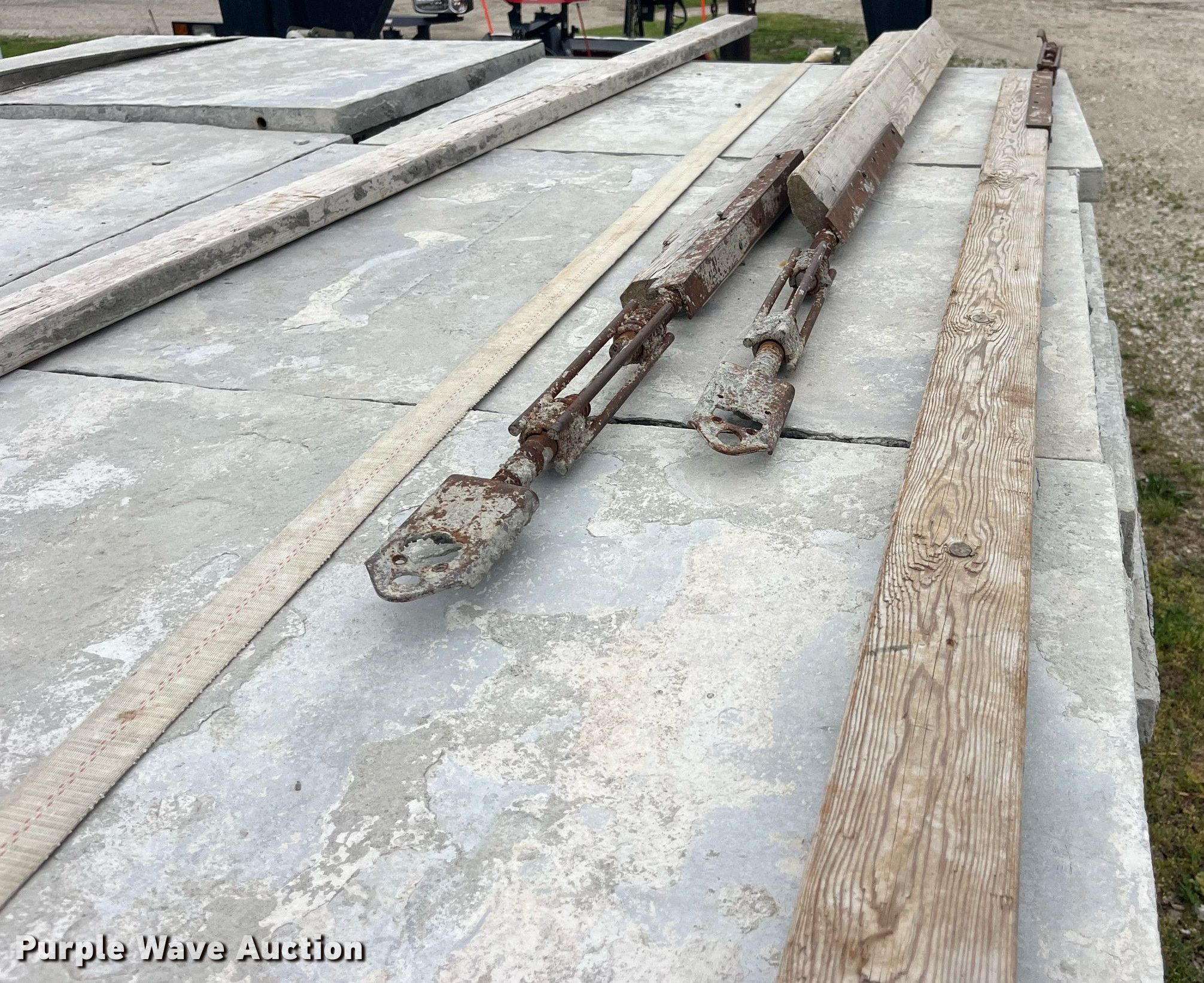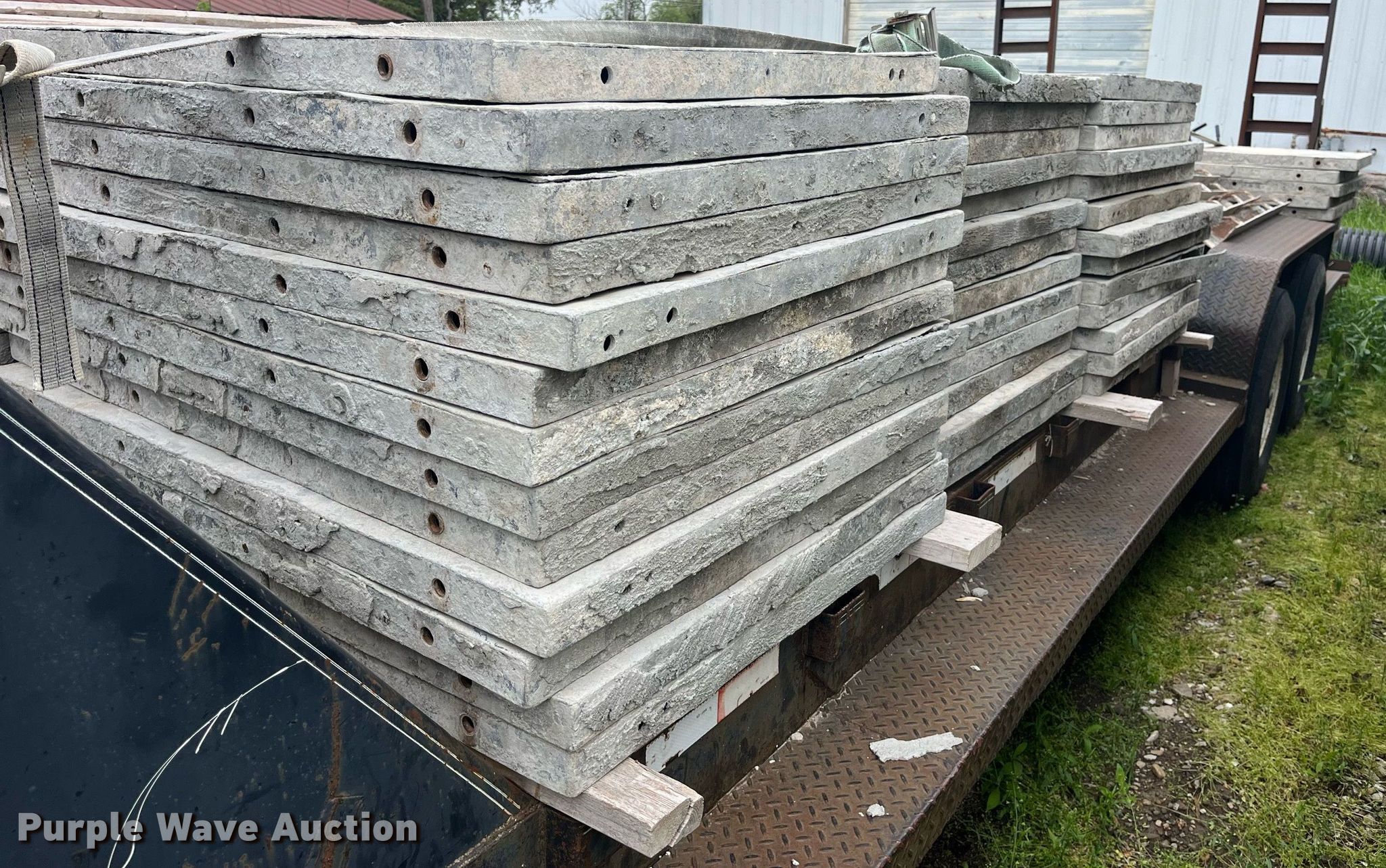Approximately 114 concrete forms. Approx. 77 4' x 3', Approx. 8 4' x 2' 8", Approx. 14 4' x 2', Approx. 15 4' x 10", Approx. 15 brackets, Hardware. Notes Trailer not included, Straps not included. Anderson & Walk Construction. 107 N Allen St. Macon, MO 63552