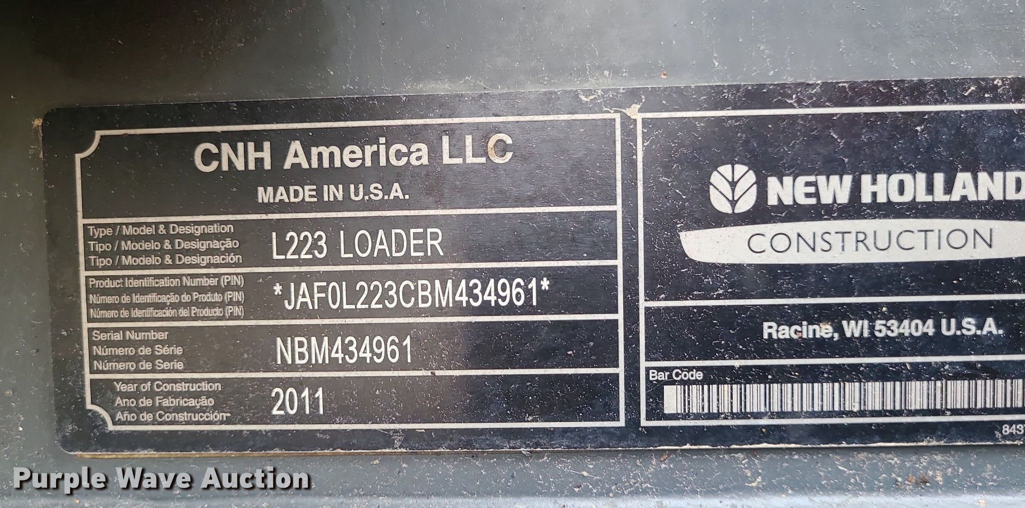 Purple Wave is selling a used Skid Steer Loader in Missouri. This item is a 2011 New Holland L223 skid steer loader with the following: Hours: 936 on meter, Serial: JAF0L223CBM434961