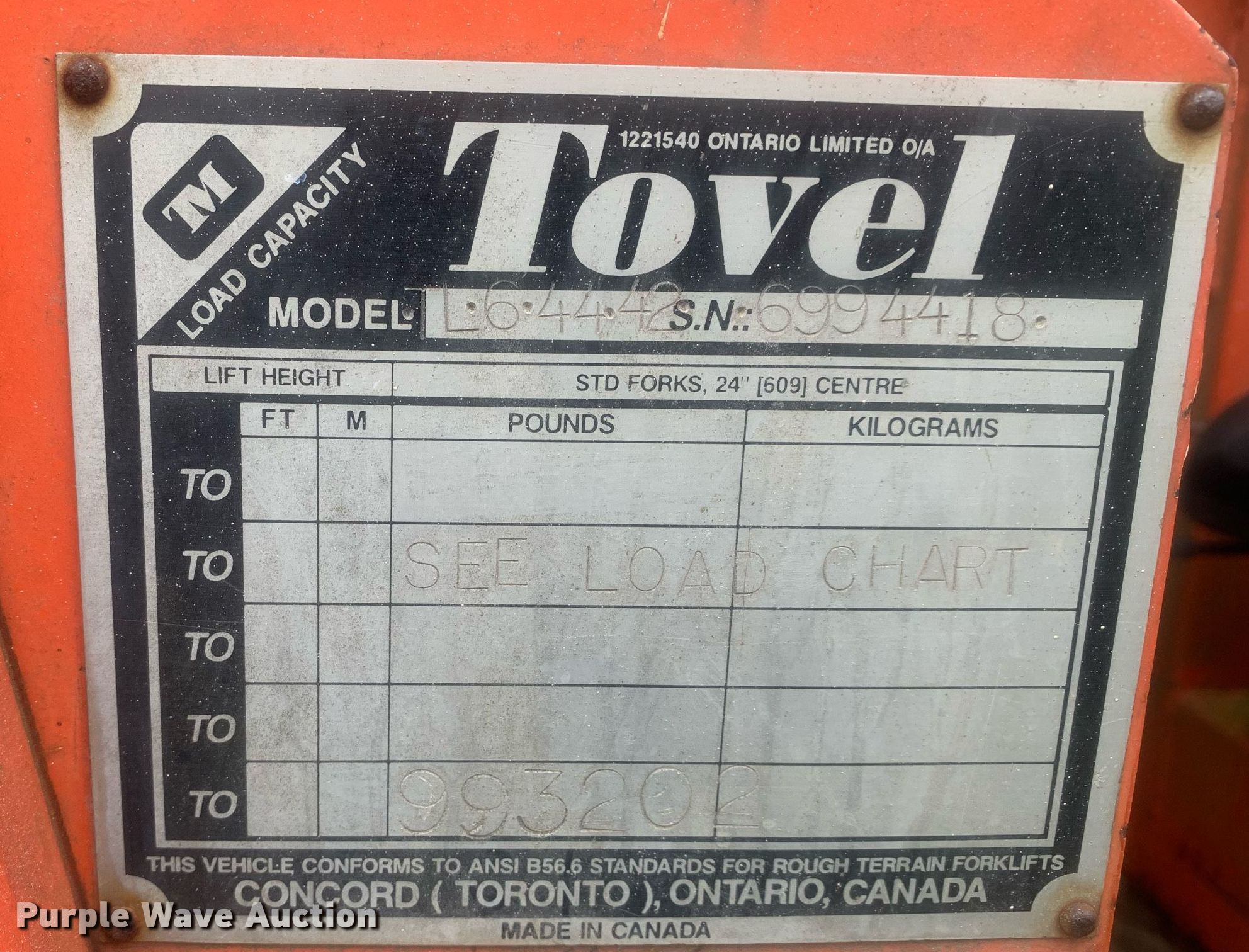 Purple Wave is selling a used Telehandler in Texas. This item is a Tovel TL6-44-42 telehandler with the following: Hours: 3,778 on meter, Serial: 6994418