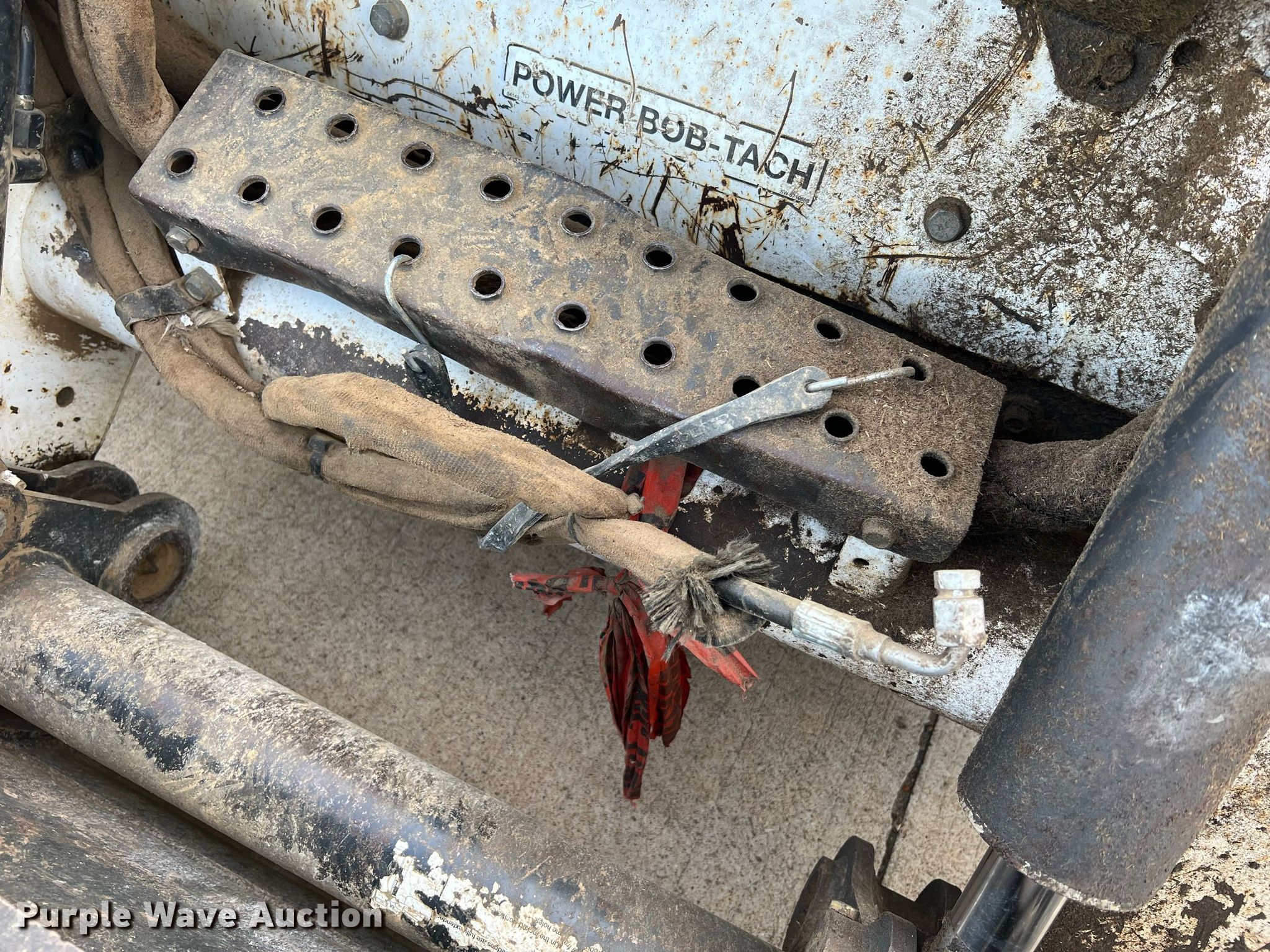 2007 Bobcat S300 skid steer loader. Hours: 1,667 on meter, Serial: 531115570. Engine Kubota V3300, Cylinders: 4, Fuel type: Diesel. Transmission Hydrostatic. Operators station Enclosed cab, AC, Heat, Bucket control: Foot, Electronic Monitoring System panel. Features Auxiliary hydraulics, Auxiliary electrical outlet, Quick coupler: Manual, Bucket Bobcat, Width: 80", Teeth: Bolt-on. Tires Size: 12-16.5. Pate Jones Construction. 2606 Calvert Drive. Columbia, MO 65202