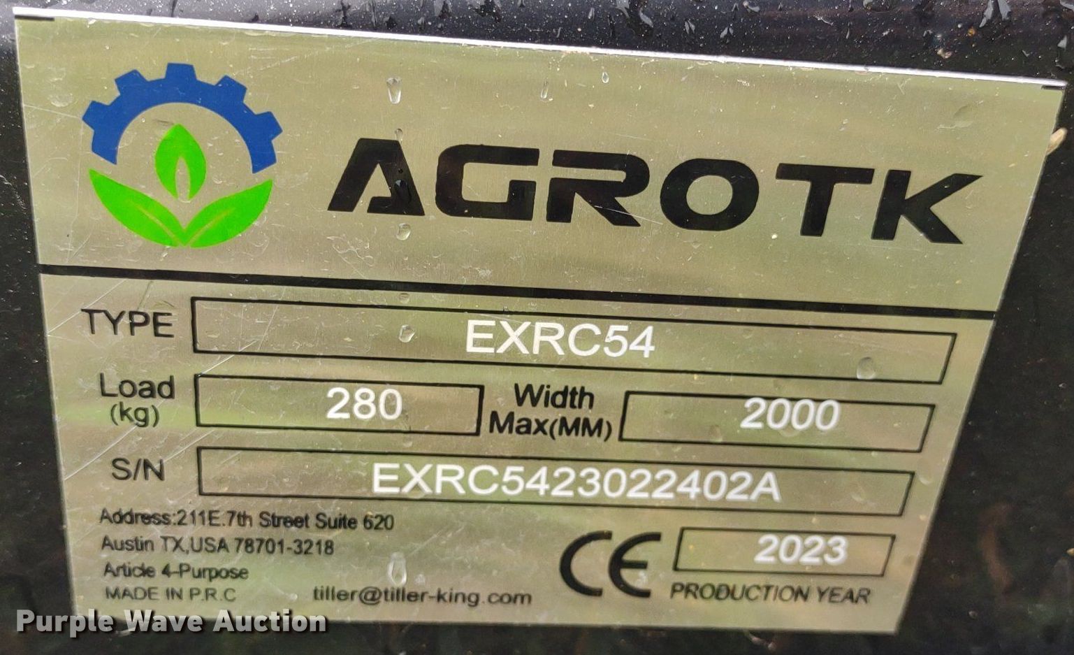 Purple Wave is selling a used Excavator Attach. in Kansas. This item is a 2023 Agrotk EXRC54 excavator brush mower with the following: Serial: EXRC5423022402A, Width: 54", Unused, Fits Caterpillar 308 excavator
