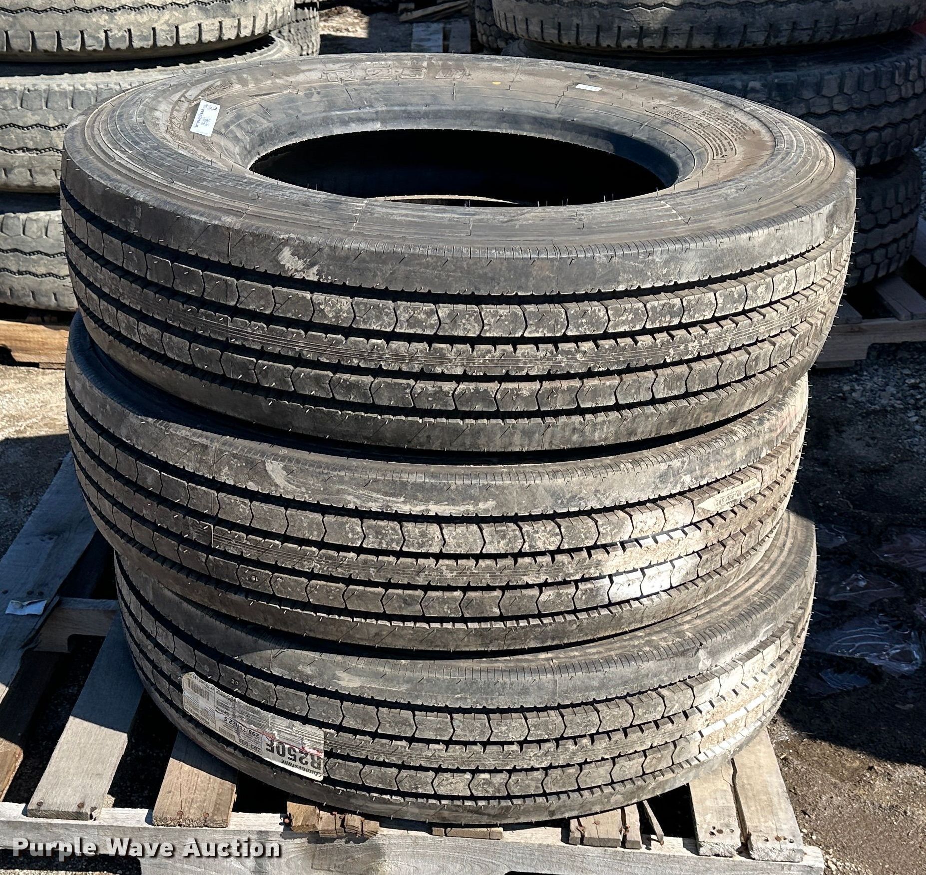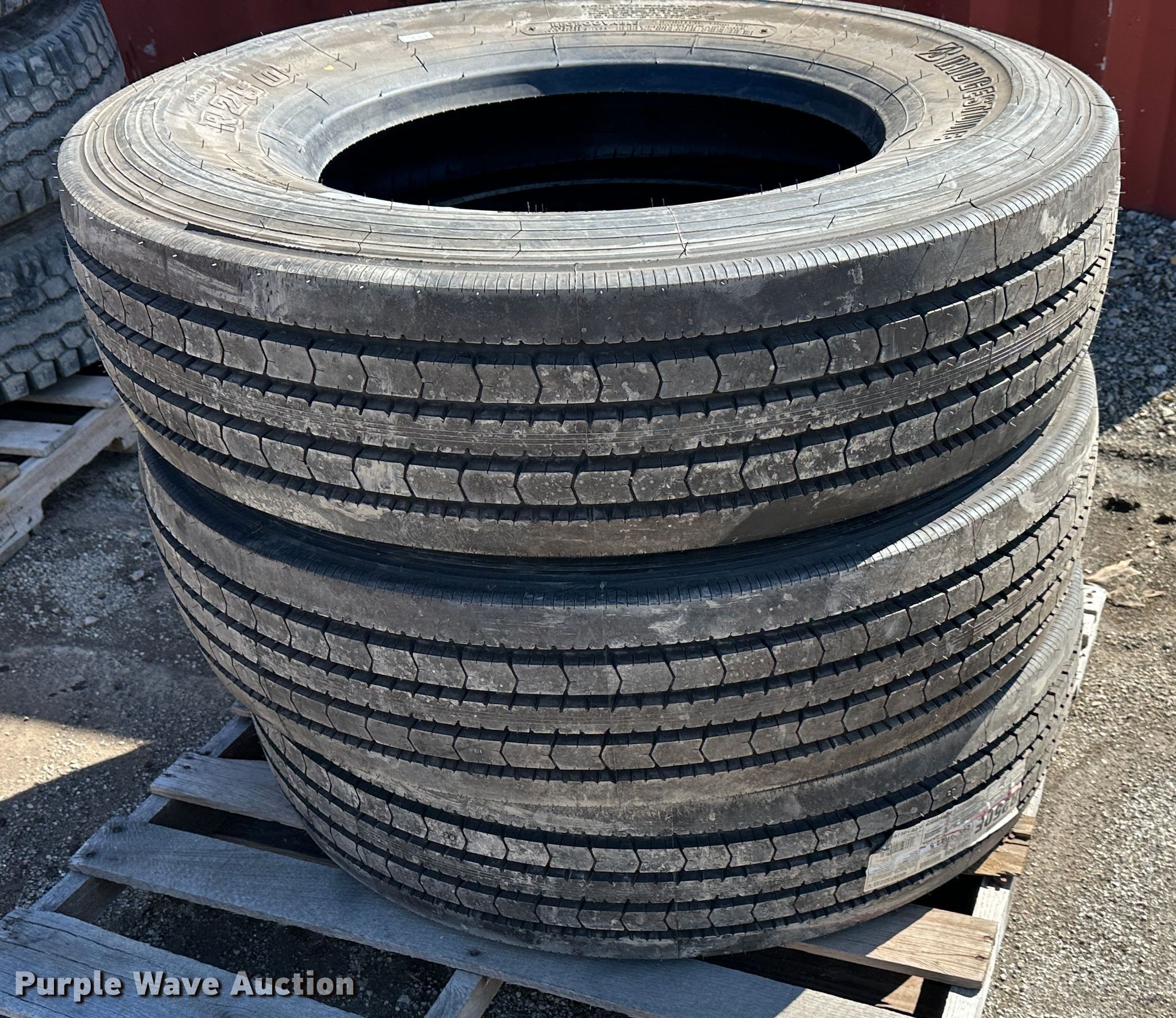 (3) 295/75R22.5 Bridgestone tires | SOLD! June 08 Construction Equipment Auction
