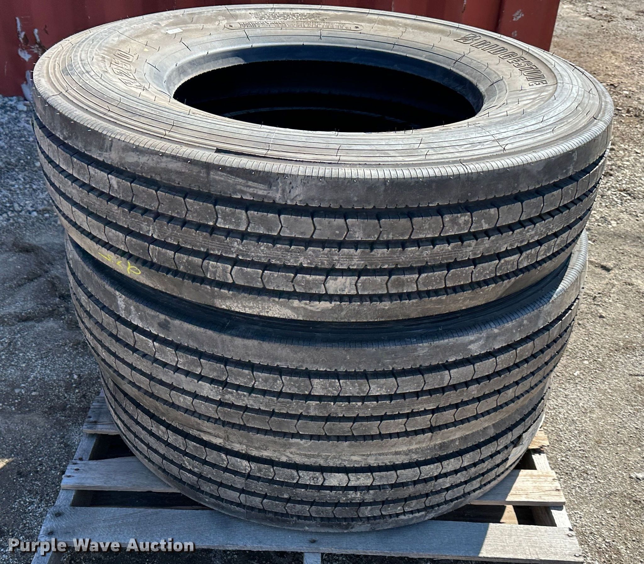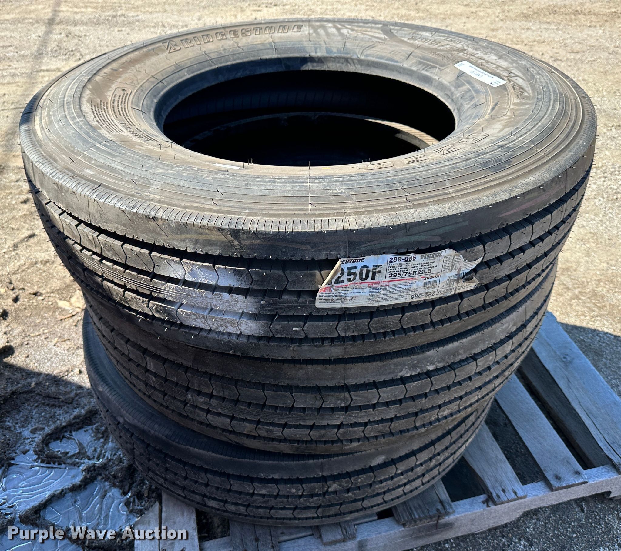 Purple Wave is selling a used Fleet Tires in Kansas. This item is a (3) 295/75R22.5 Bridgestone tires with the following: (3) 295/75R22.5 Bridgestone tires. King's Construction. Oskaloosa, KS 66066
