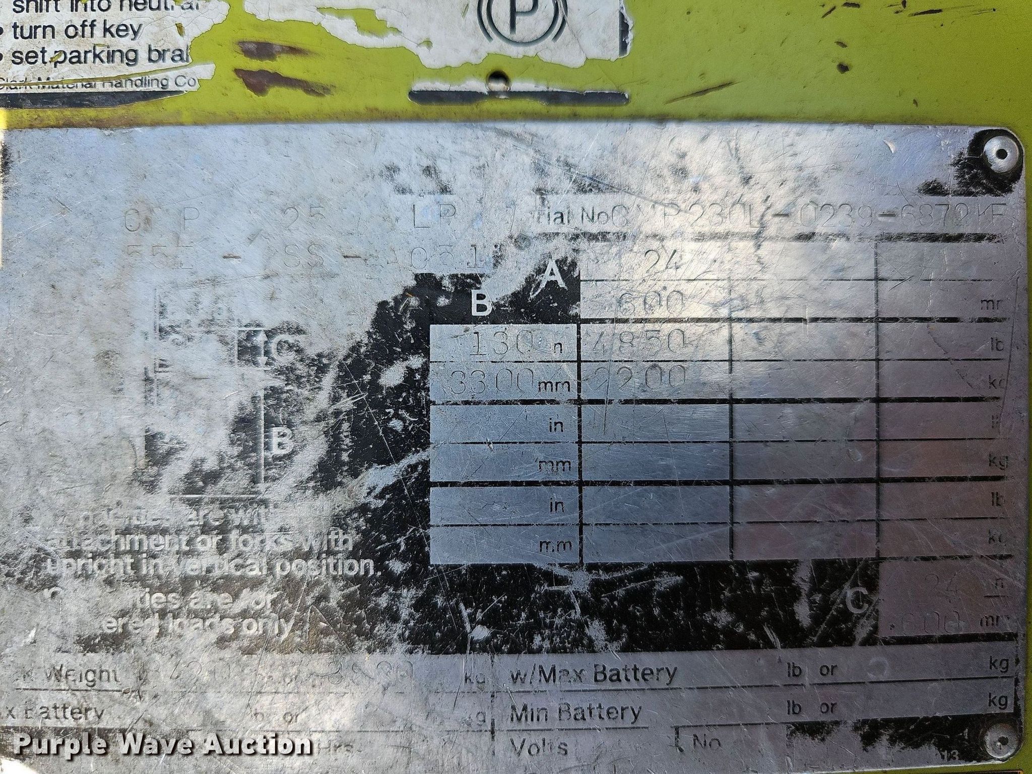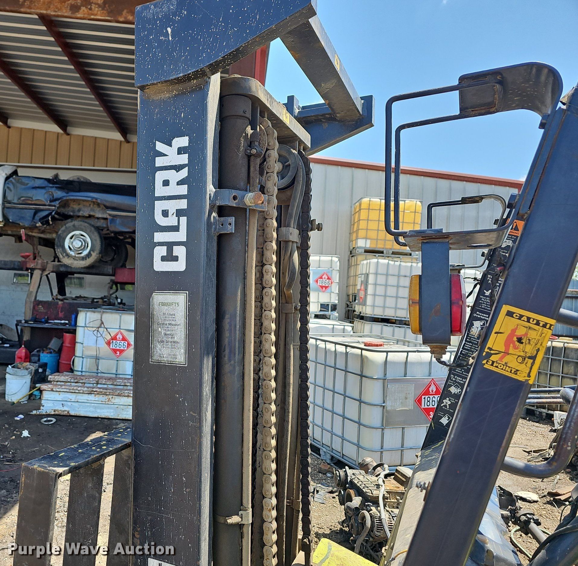Purple Wave is selling a used Cushion Tire or Pneumatic Forklift in Missouri. This item is a Clark CMP25 forklift with the following: Hours: 8,599 on meter, Serial: CMP230L-0239-6872KF