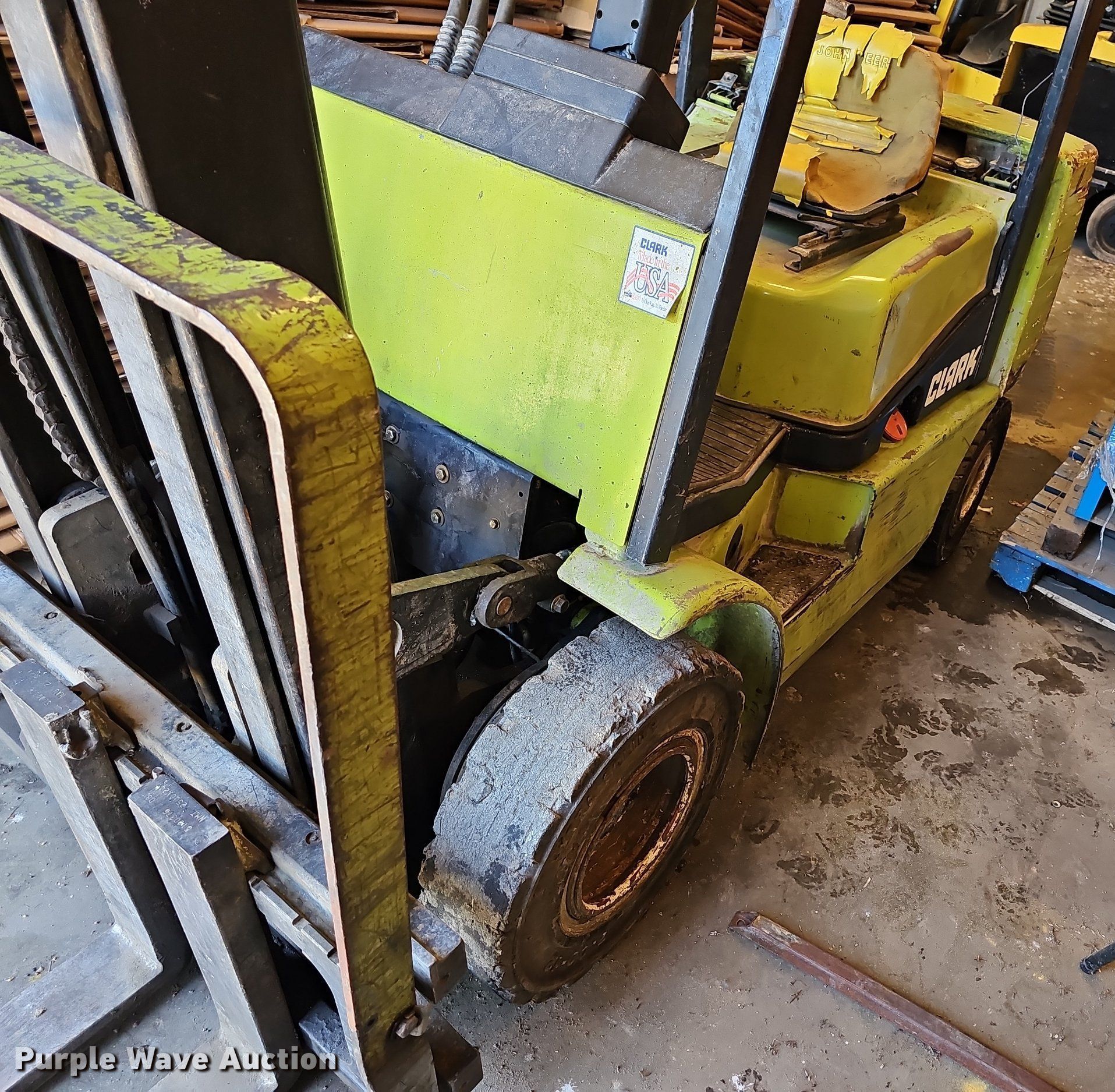 Purple Wave is selling a used Cushion Tire or Pneumatic Forklift in Missouri. This item is a Clark GGP20 forklift with the following: Hours: 6,902 on meter, Serial: P365G-0085-9449FB