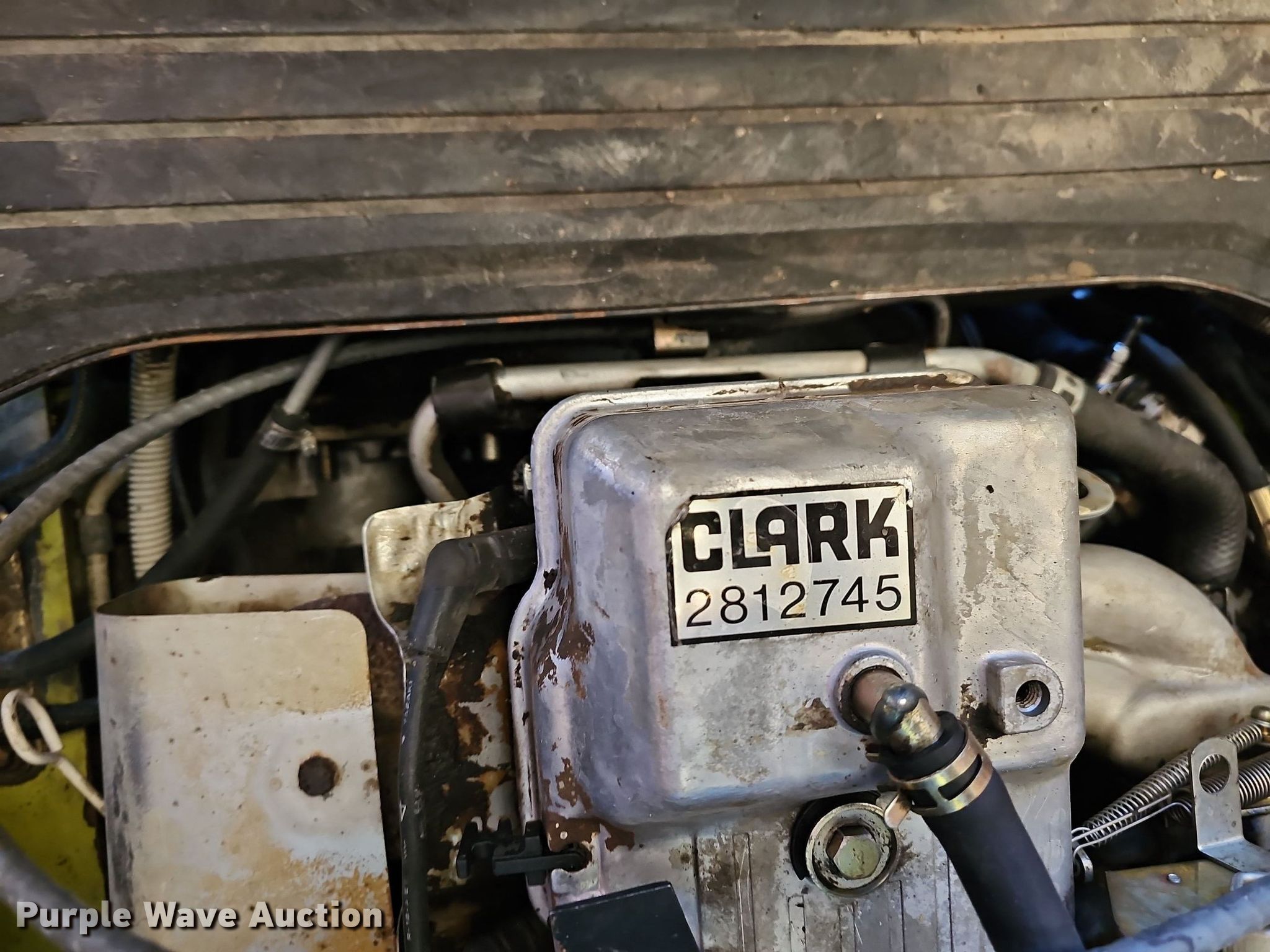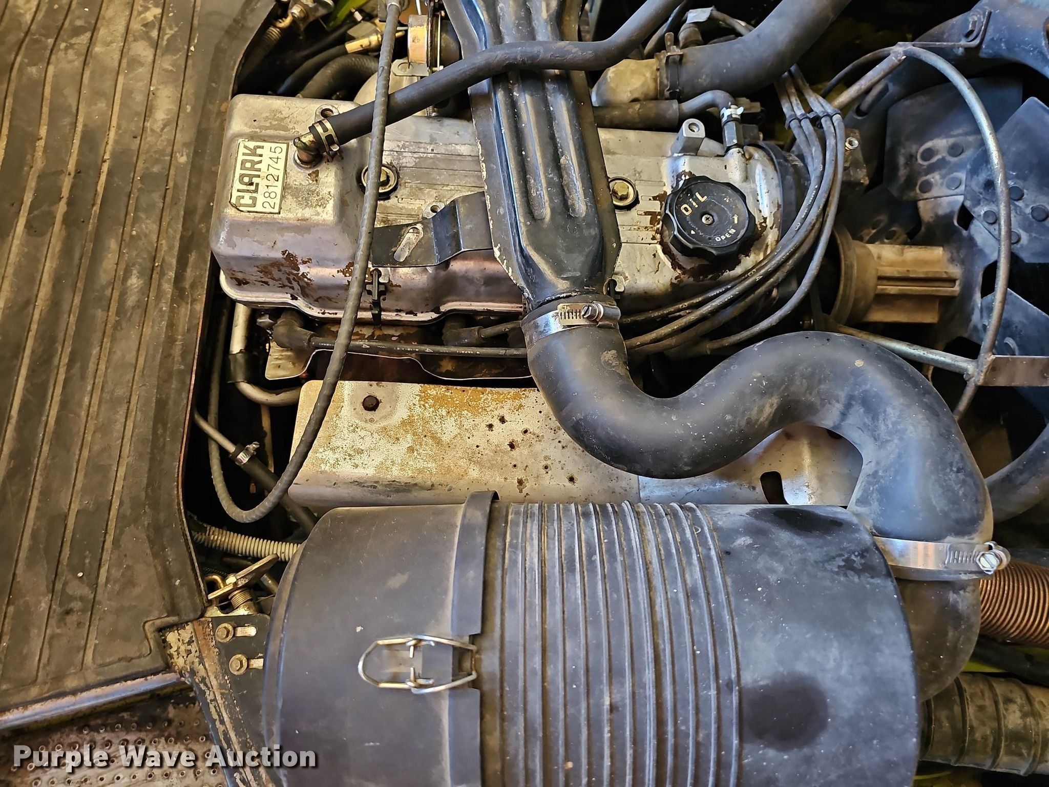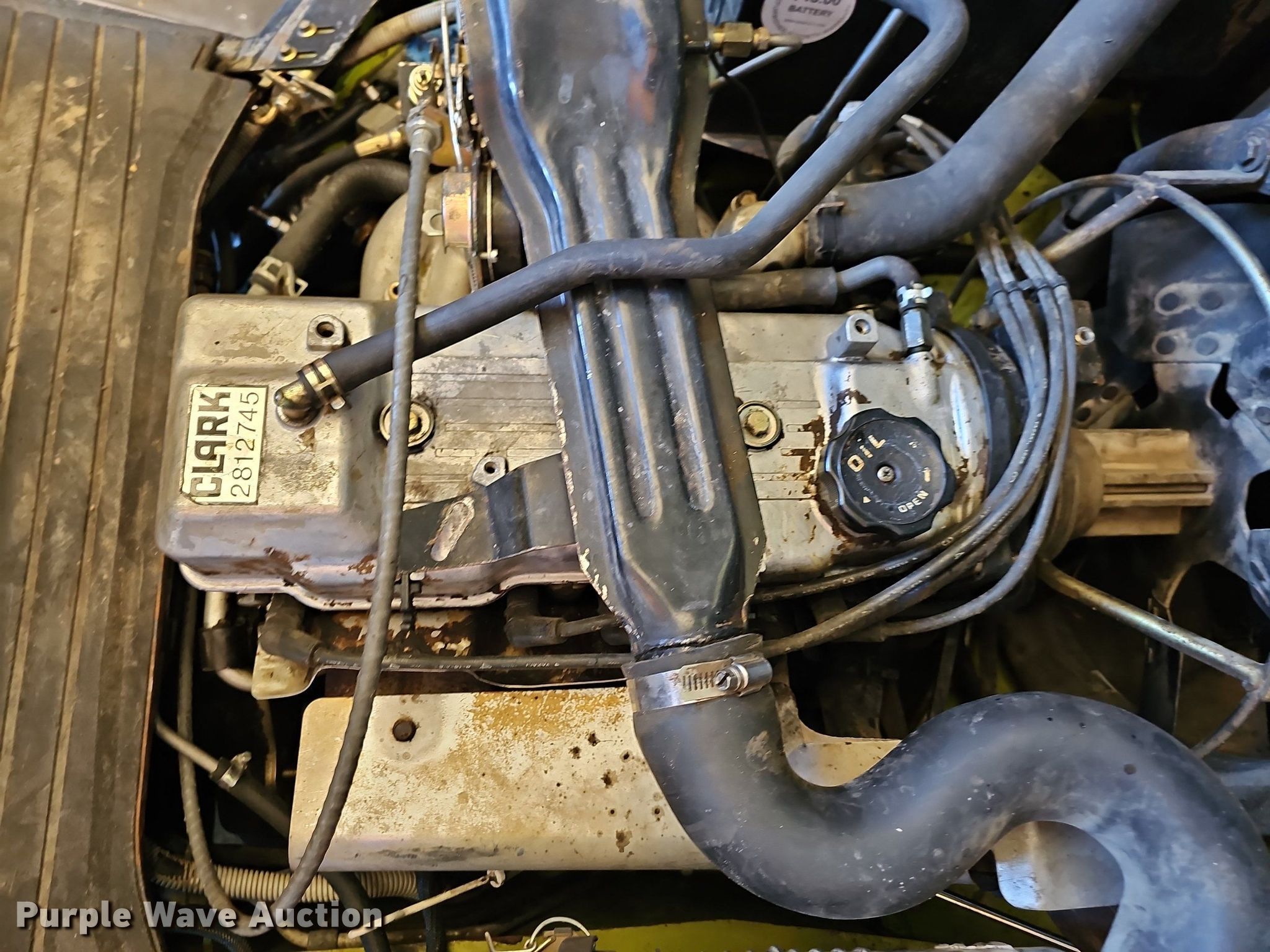 Clark GGP20 forklift. Hours: 6,902 on meter, Serial: P365G-0085-9449FB. Engine Cylinders: 4, Fuel type: Gas. Transmission Shuttle shift. Operators station OROPS. Features Maximum lift capacity: 3,675 lbs, Maximum lift height: 189", Mast stages: 2, Side shift, Mast tilt, Fork length: 40". Tires Front: 7.00-12, Rear: 6.00-9, Solid. Lebanon, MO 65536